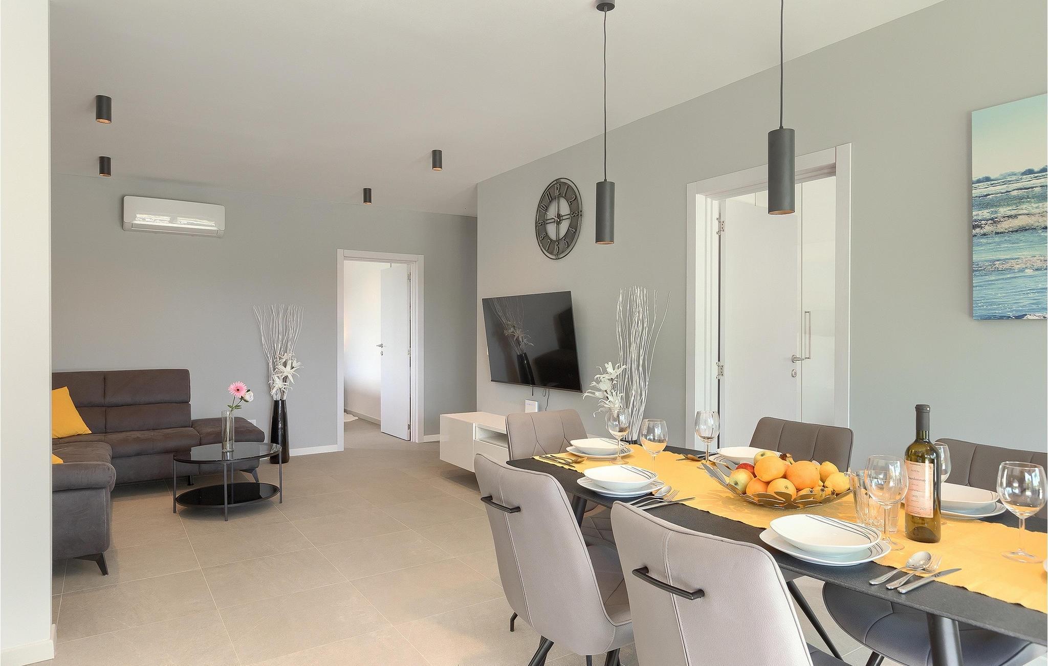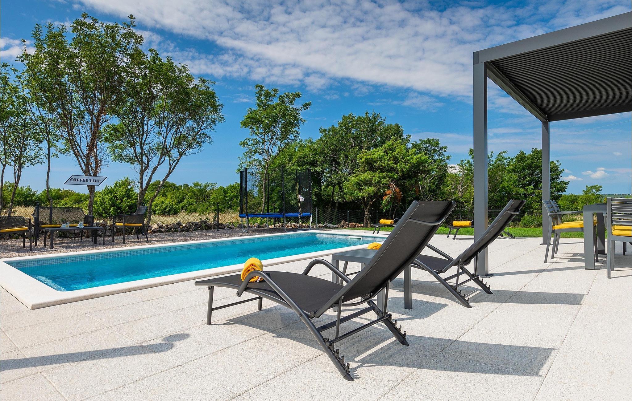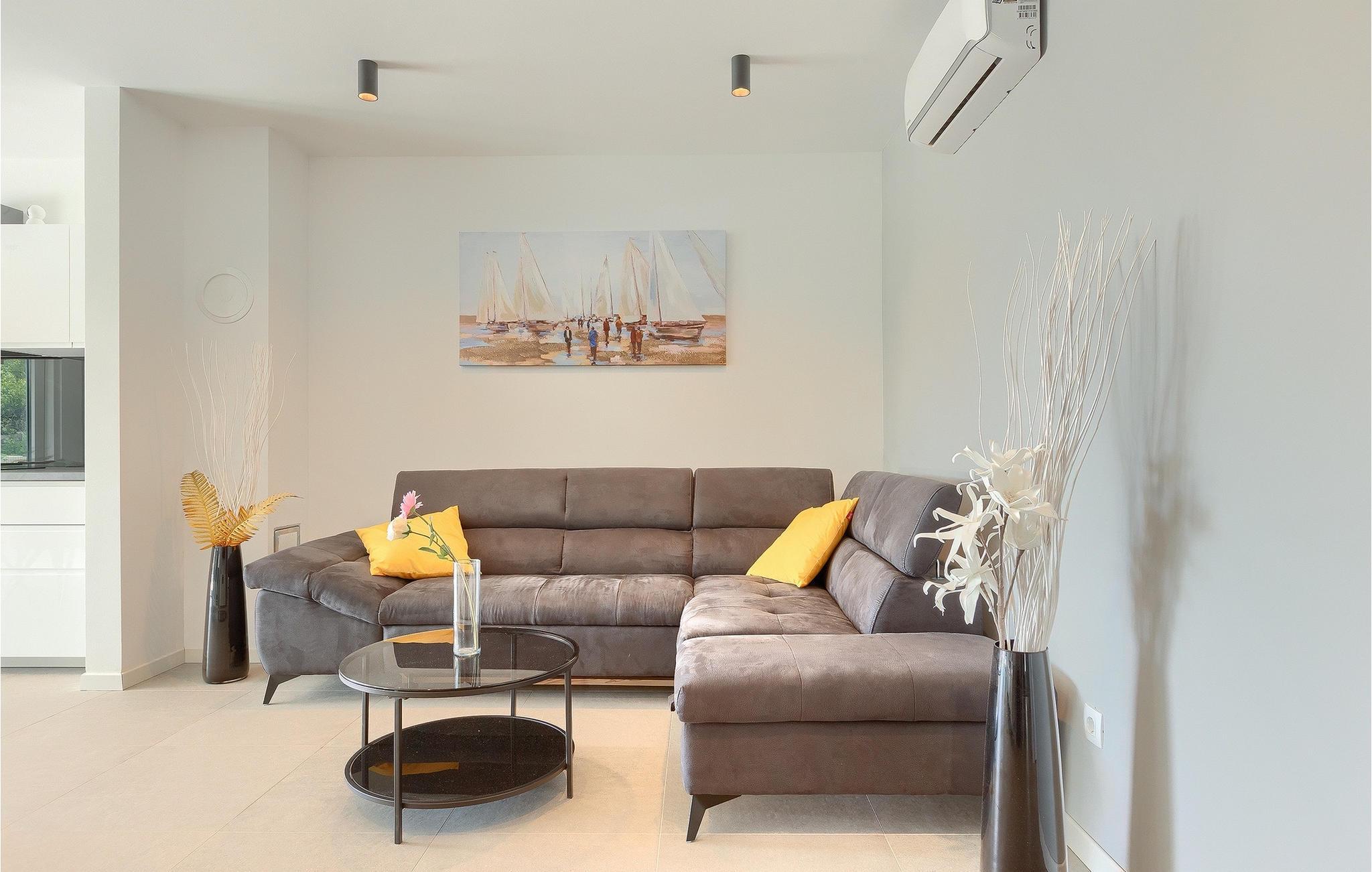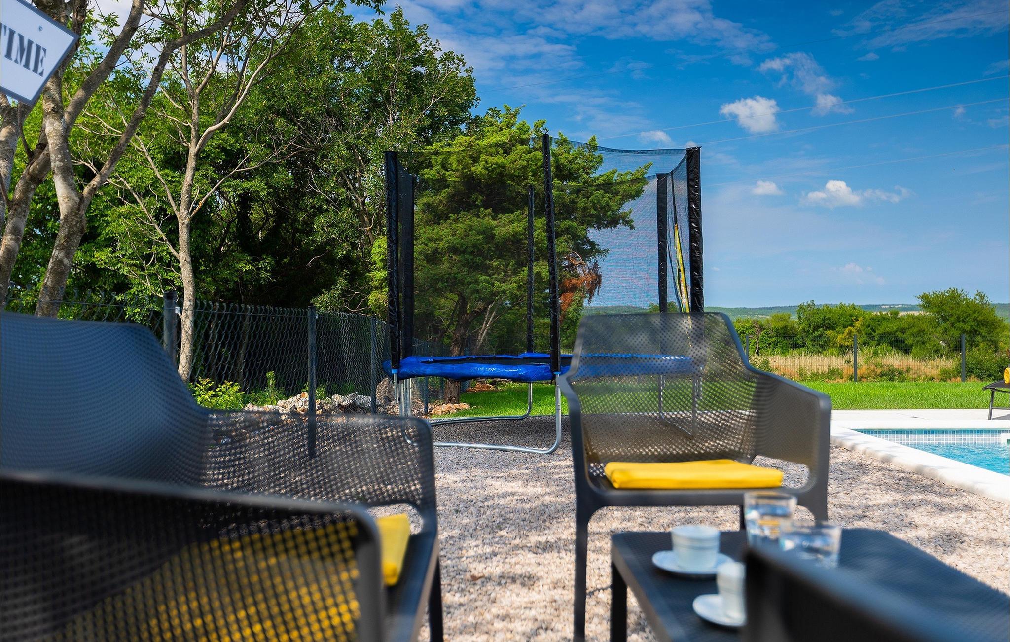 Die moderne Villa Lotta bietet Ihnen einen erholsamen Urlaub inmitten unberührter Natur. Die Villa ist ideal für einen Urlaub mit Familie oder Freunden. Suchen Sie während der Sommerhitze nach Erfrischung im 21 m² großen Swimmingpool. Am Pool gibt es einen überdachten Bereich mit Esstisch und Grill, ideal für unvergessliche Zusammenkünfte und den Genuss zubereiteter traditioneller istrischer Gerichte. Unsere jüngsten Gäste können sich auf dem Kinderspielplatz vergnügen. In der Nähe des Kinderspielplatzes gibt es einen Tisch und Stühle im natürlichen Schatten zum Kaffeetrinken oder für erfrischende Getränke am Nachmittag. Verbringen Sie Zeit im Freien und spielen Badminton oder Volleyball. Das Innere der Villa ist voller Tageslicht und alle Räume befinden sich im Erdgeschoss des Hauses. Im offenen Raum der Villa gibt es ein Wohnzimmer, eine voll ausgestattete Küche in modernem Design und ein Esszimmer, in dem Sie die istrische Atmosphäre genießen können. Das erste Schlafzimmer verfügt über ein Doppelbett und ein eigenes Badezimmer mit Blick auf den Pool und die Landschaft von Brgod. Im zweiten Zimmer stehen zwei Betten. Alle Zimmer verfügen über Fernseher und Klimaanlage. Das zweite Badezimmer und ein separater Waschraum befinden sich ebenfalls im Erdgeschoss des Hauses. Verpassen Sie nicht einen Urlaub in der Villa Lotta in der ruhigen Umgebung der wunderschönen Landschaft von Brgod. Villa Lotta liegt im Südosten der Halbinsel Istrien im Dorf Brgod. Diese friedliche Siedlung liegt oberhalb der Rasa-Bucht und des kleinen Fischerdorfes Trget. Erleben Sie den Zauber der Einheimischen und der unberührten Natur. Die hügelige Landschaft und die zahlreichen nahegelegenen Buchten, die Sie über Wander- und Radwege erreichen, werden Ihnen den Atem rauben. Besuchen Sie die nahe gelegenen berühmten Touristenzentren Rabac und Labin. Rabac war ein ehemaliges Fischerdorf und ist heute für seine natürliche Schönheit, seine wunderschönen Kaps und Strände bekannt. Diese Perle des Kvarners wurde im 19. Jahrhundert auch vom Reiseschriftsteller Richard Francis Burton besucht. Erkunden Sie die mittelalterliche Stadt Labin, die auf einem Hügel oberhalb von Rabac liegt. Die Heimatstadt von Matija Vlacic ist eine Kombination aus reicher Architektur, kulturellen und historischen Denkmälern und Kunstateliers. Entdecken Sie durch die bezaubernden engen Gassen von Labin das reiche Angebot lokaler Gastronomiebetriebe.