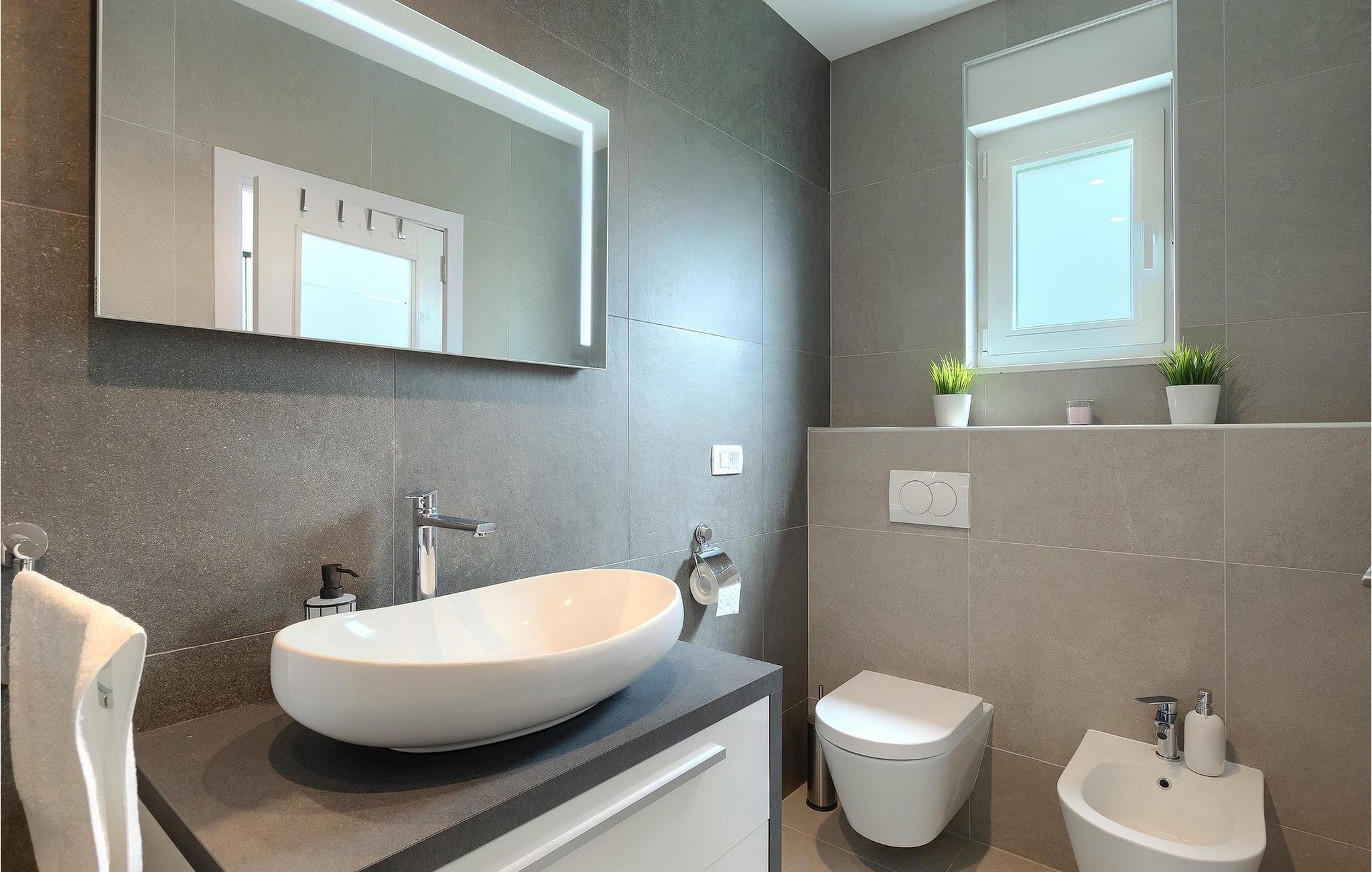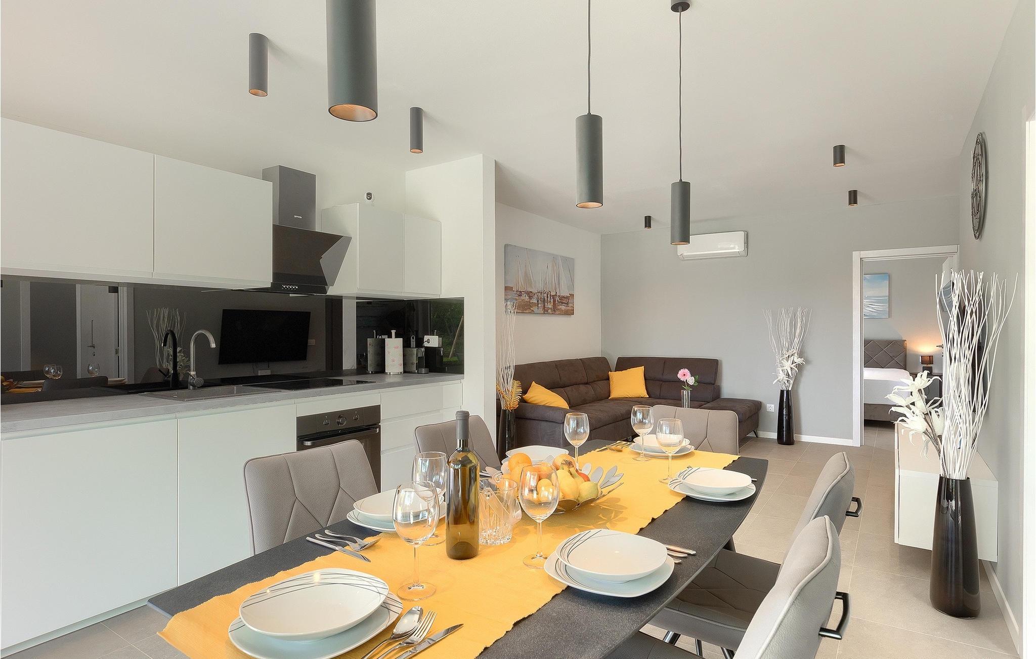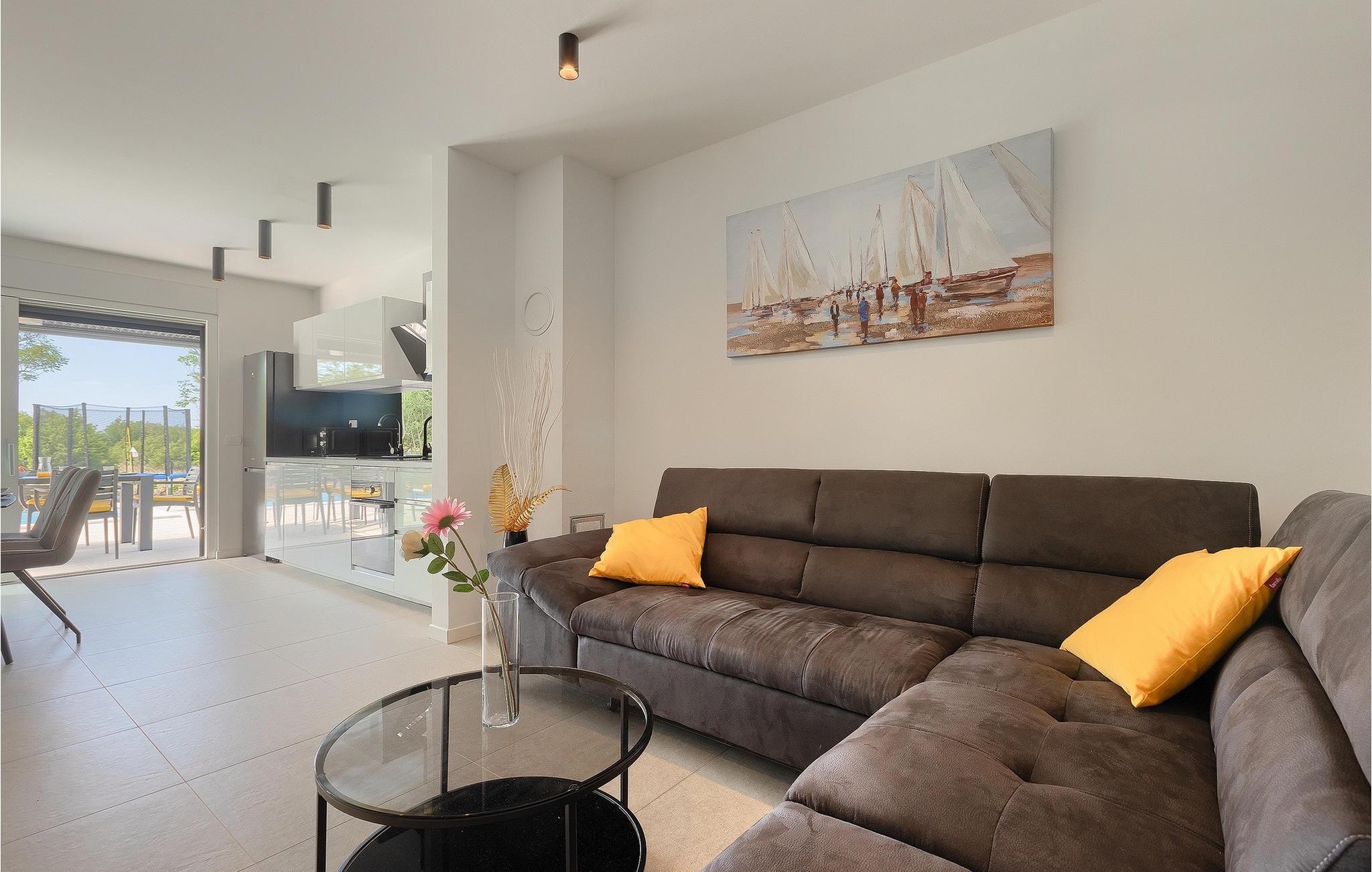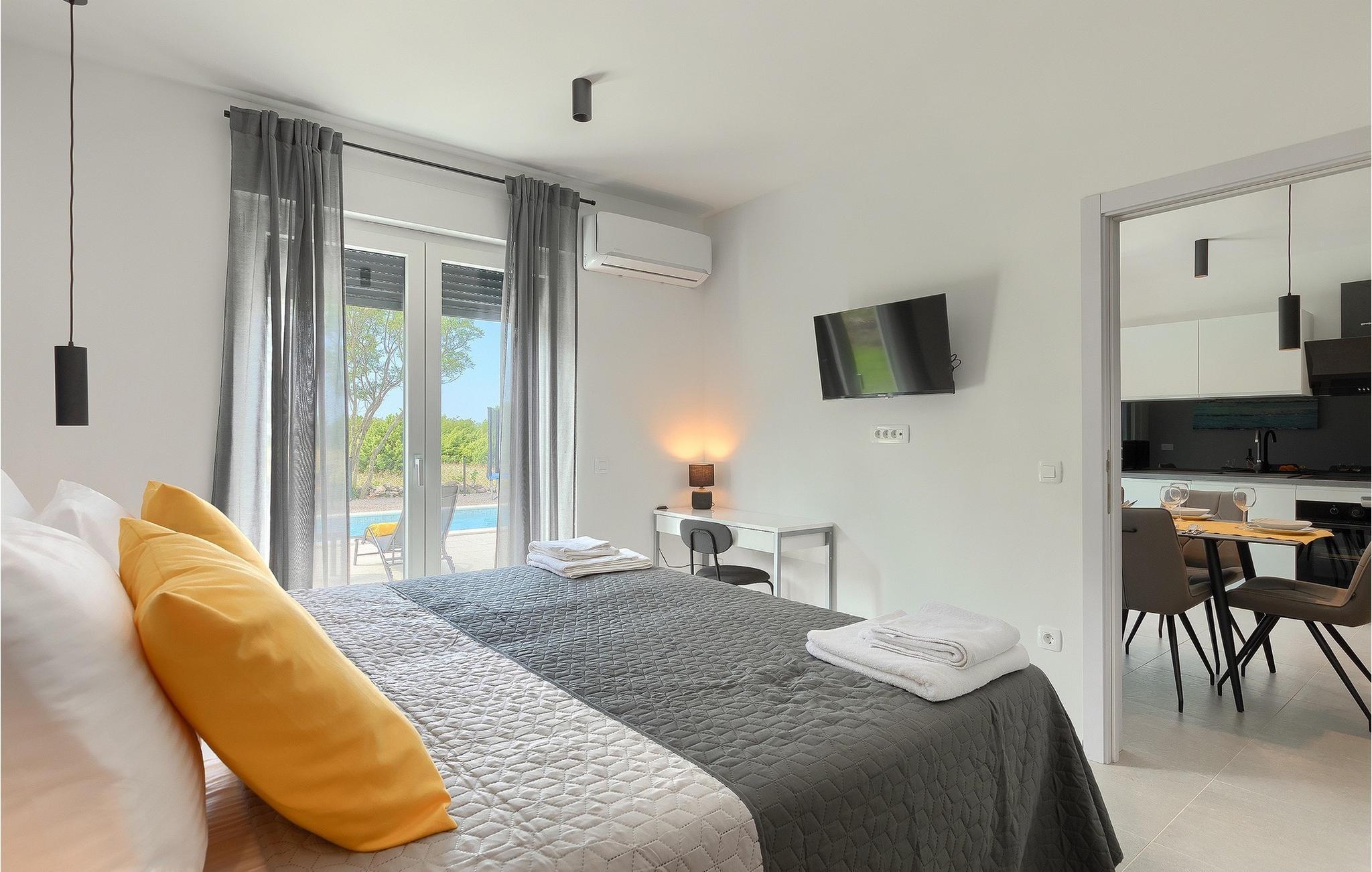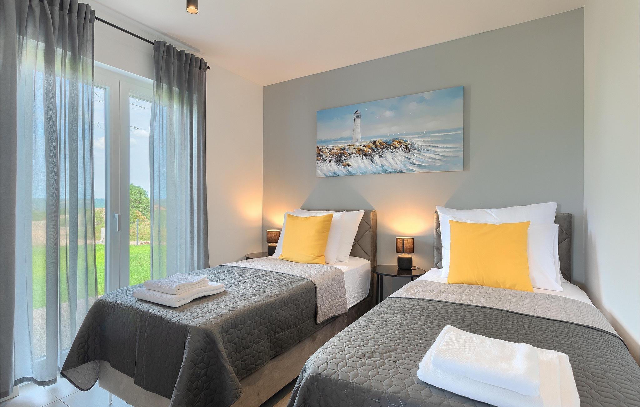 Die moderne Villa Lotta bietet Ihnen einen erholsamen Urlaub inmitten unberührter Natur. Die Villa ist ideal für einen Urlaub mit Familie oder Freunden. Suchen Sie während der Sommerhitze nach Erfrischung im 21 m² großen Swimmingpool. Am Pool gibt es einen überdachten Bereich mit Esstisch und Grill, ideal für unvergessliche Zusammenkünfte und den Genuss zubereiteter traditioneller istrischer Gerichte. Unsere jüngsten Gäste können sich auf dem Kinderspielplatz vergnügen. In der Nähe des Kinderspielplatzes gibt es einen Tisch und Stühle im natürlichen Schatten zum Kaffeetrinken oder für erfrischende Getränke am Nachmittag. Verbringen Sie Zeit im Freien und spielen Badminton oder Volleyball. Das Innere der Villa ist voller Tageslicht und alle Räume befinden sich im Erdgeschoss des Hauses. Im offenen Raum der Villa gibt es ein Wohnzimmer, eine voll ausgestattete Küche in modernem Design und ein Esszimmer, in dem Sie die istrische Atmosphäre genießen können. Das erste Schlafzimmer verfügt über ein Doppelbett und ein eigenes Badezimmer mit Blick auf den Pool und die Landschaft von Brgod. Im zweiten Zimmer stehen zwei Betten. Alle Zimmer verfügen über Fernseher und Klimaanlage. Das zweite Badezimmer und ein separater Waschraum befinden sich ebenfalls im Erdgeschoss des Hauses. Verpassen Sie nicht einen Urlaub in der Villa Lotta in der ruhigen Umgebung der wunderschönen Landschaft von Brgod. Villa Lotta liegt im Südosten der Halbinsel Istrien im Dorf Brgod. Diese friedliche Siedlung liegt oberhalb der Rasa-Bucht und des kleinen Fischerdorfes Trget. Erleben Sie den Zauber der Einheimischen und der unberührten Natur. Die hügelige Landschaft und die zahlreichen nahegelegenen Buchten, die Sie über Wander- und Radwege erreichen, werden Ihnen den Atem rauben. Besuchen Sie die nahe gelegenen berühmten Touristenzentren Rabac und Labin. Rabac war ein ehemaliges Fischerdorf und ist heute für seine natürliche Schönheit, seine wunderschönen Kaps und Strände bekannt. Diese Perle des Kvarners wurde im 19. Jahrhundert auch vom Reiseschriftsteller Richard Francis Burton besucht. Erkunden Sie die mittelalterliche Stadt Labin, die auf einem Hügel oberhalb von Rabac liegt. Die Heimatstadt von Matija Vlacic ist eine Kombination aus reicher Architektur, kulturellen und historischen Denkmälern und Kunstateliers. Entdecken Sie durch die bezaubernden engen Gassen von Labin das reiche Angebot lokaler Gastronomiebetriebe.