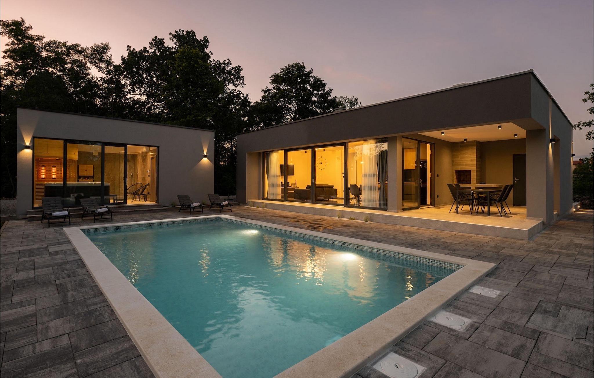 Villa Alison ist eine Oase der Entspannung, Ruhe und eines perfekten Urlaubs mit Familie oder Freunden. Verbringen Sie einen unvergesslichen Urlaub in traditioneller Umgebung abseits der Hektik des Alltags und gönnen Sie sich einen ruhigen Urlaub für die ganze Familie. Diese komplett umzäunte Villa bietet Ihnen einen intimen Urlaub ohne unerwünschte Blicke. Ausgangspunkt für einen erholsamen Urlaub ist ein wunderschöner Pool von 32 m2, der sich vor der Villa befindet. Spaß für Jung und Alt ist das Trampolin neben dem Pool. Dieses einstöckige Haus verfügt über einen offenen Raum mit einer voll ausgestatteten, modernen Küche und einem Esszimmer für 4 Personen. Verbringen Sie nach dem Mittagessen Zeit im klimatisierten Wohnzimmer mit interessanten Fernsehinhalten. Zusätzlich zum Esszimmer im Innenbereich verfügt die Villa auch über ein Esszimmer im Freien mit 4 Sitzplätzen. Neben der Sitzecke gibt es auch einen Holzkohlegrill, auf dem Sie sich an der Zubereitung istrischer Gerichte versuchen können, die Ihre Lieben mit Sicherheit in Erstaunen versetzen werden. Die Villa verfügt über 2 Schlafzimmer mit Doppelbetten, Fernseher, Klimaanlage und eigenem Bad. Villa Alison ist perfekt für 4 Gäste, bietet aber auch Platz für zwei Kinder auf der ausziehbaren Couch im Wohnzimmer. Der Höhepunkt der Entspannung in der Villa ist der Wellnessbereich. Genießen Sie den Whirlpool in romantischer Atmosphäre und entspannen Sie sich im Ruhebereich mit Infrarotsauna. Wenn Sie entspannen und dem Alltag entfliehen möchten, gönnen Sie sich und Ihren Lieben einen einzigartigen Urlaub in der Villa Alison im wunderschönen Istrien. Villa Alison liegt in einem kleinen Dorf in der Gemeinde Nedešcine, nur ein paar Kilometre von Labin und Rabac entfernt. Naturliebhaber werden von der wunderschönen Landschaft begeistert sein, die Sie auf zahlreichen Rad- und Wanderwegen erkunden können. Lassen Sie sich von der istrischen Atmosphäre, der lokalen Bevölkerung und dem gastronomischen Angebot von Nedešcina verzaubern. Probieren Sie autochthone istrische Köstlichkeiten wie Olivenöl, Prosciutto, Käse und das unvermeidliche „Fuži“-Gericht mit Trüffeln. Machen Sie neben Nedešcina auch einen Ausflug in die Touristenzentren Labin und Rabac. Abenteurern empfehlen wir den Besuch des Aquaparks in Rabac oder die Erkundung der Bucht von Raša. Rabac und die gesamte Ostküste Istriens verbergen wunderschöne Buchten, Kaps und Strände, die Sie unweit der Villa Alison genießen können. Die mittelalterliche, charmante Stadt Labin ist ideal für Liebhaber von Geschichte und Kultur. Verpassen Sie nicht, den Rest des wunderschönen Istriens zu erkunden. Wir empfehlen Ziele für Tagesausflüge in Zentralistrien: Svetvincenat, Motovun, während Sie an der Westküste Rovinj, Porec und schließlich Medulin und Pula besuchen. Die Temperatur des beheizten Schwimmbades hängt von äußeren Faktoren, einschließlich der Wetterbedingungen, ab und daher kann die Wassertemperatur nicht garantiert werden.