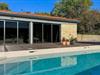 Öffnen Sie die großen Glasschiebetüren und treten Sie direkt auf die weitläufige Poolterrasse. Ziehen Sie im klaren Wasser des Pools Ihre Bahnen oder entspannen Sie am Beckenrand. Nutzen Sie den separaten Grillbereich für gesellige Abende und bereiten Sie regionale Spezialitäten unter freiem Himmel zu. Das Haus bietet Ihnen viel Privatsphäre.