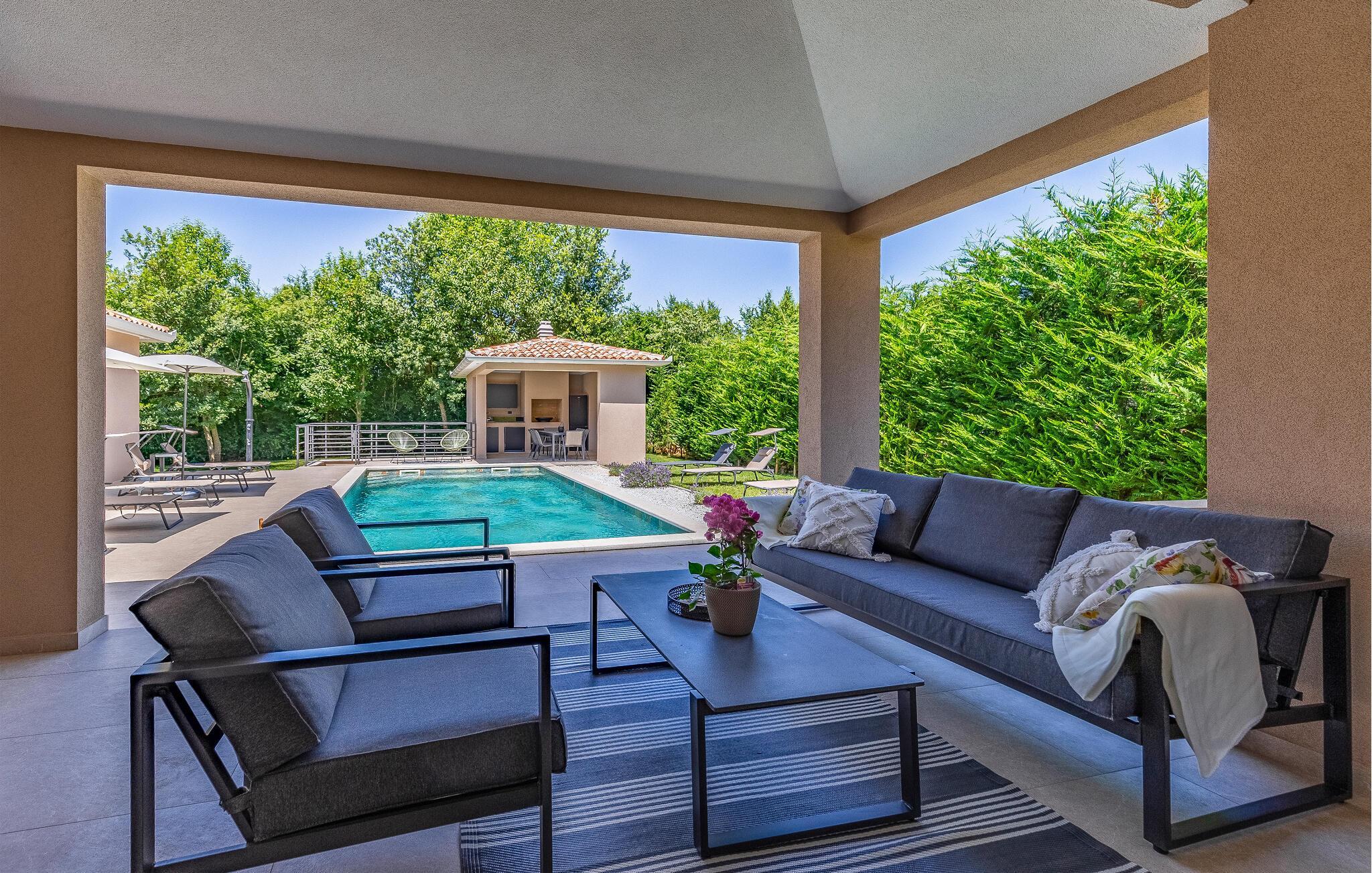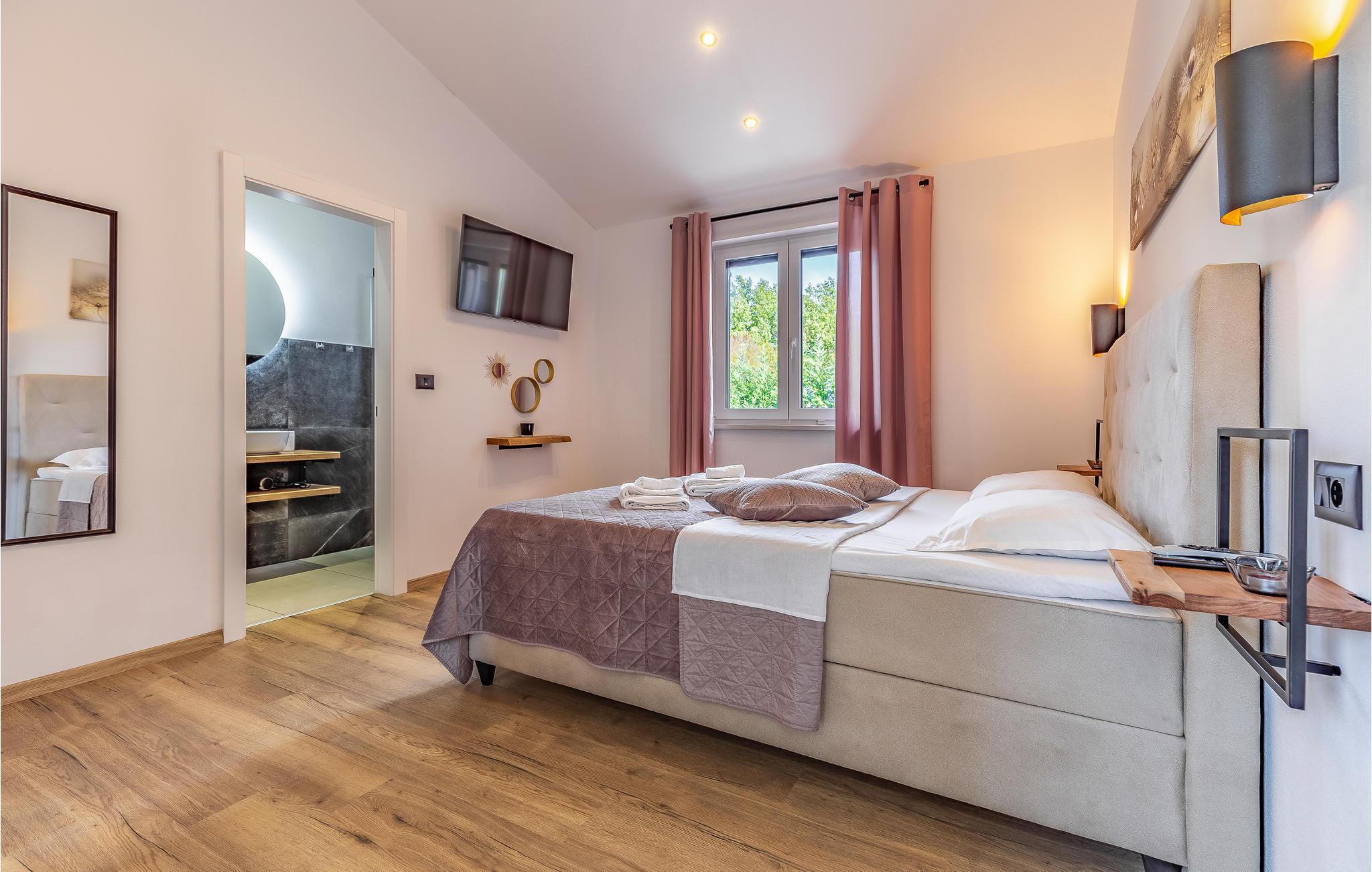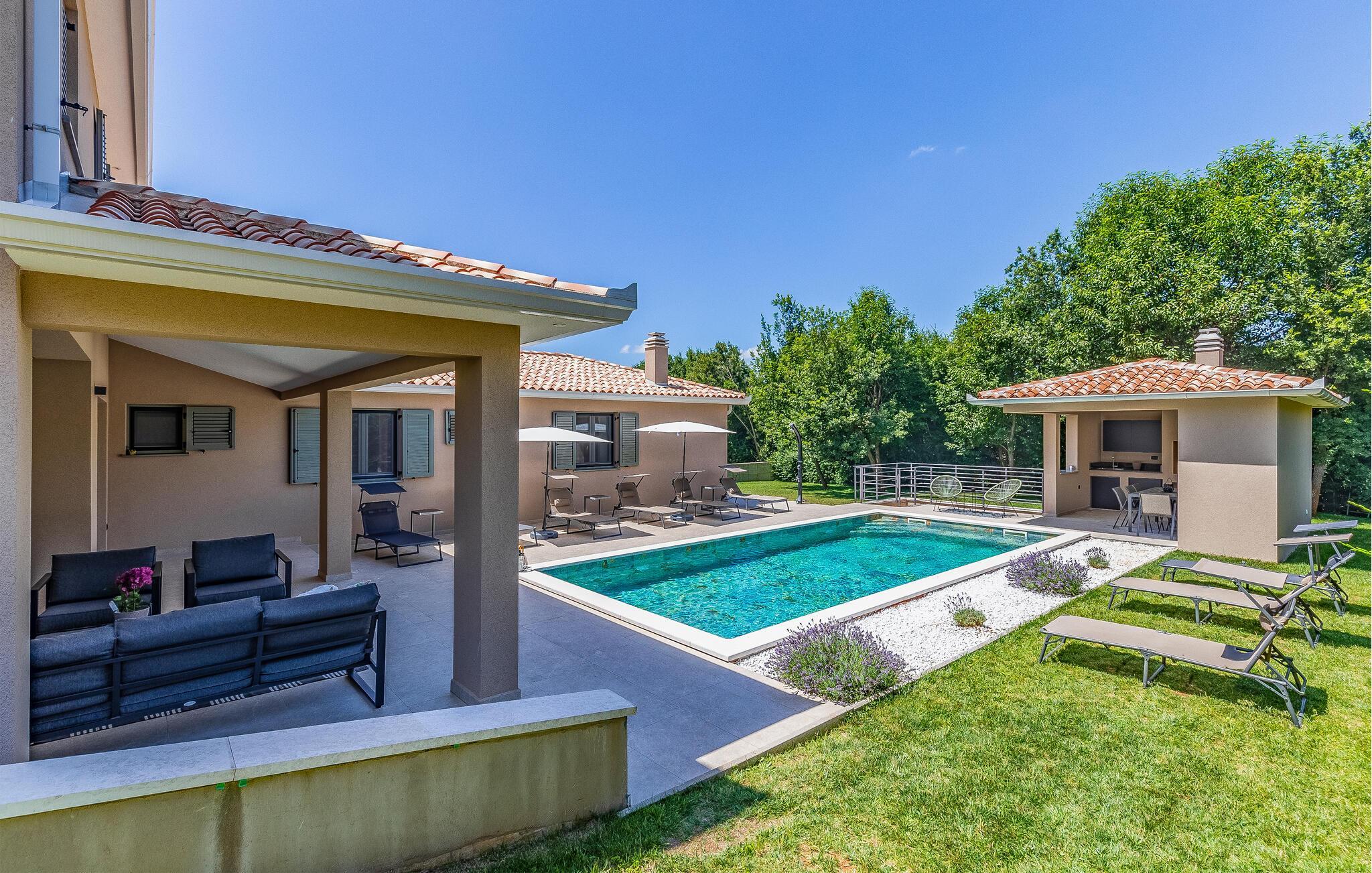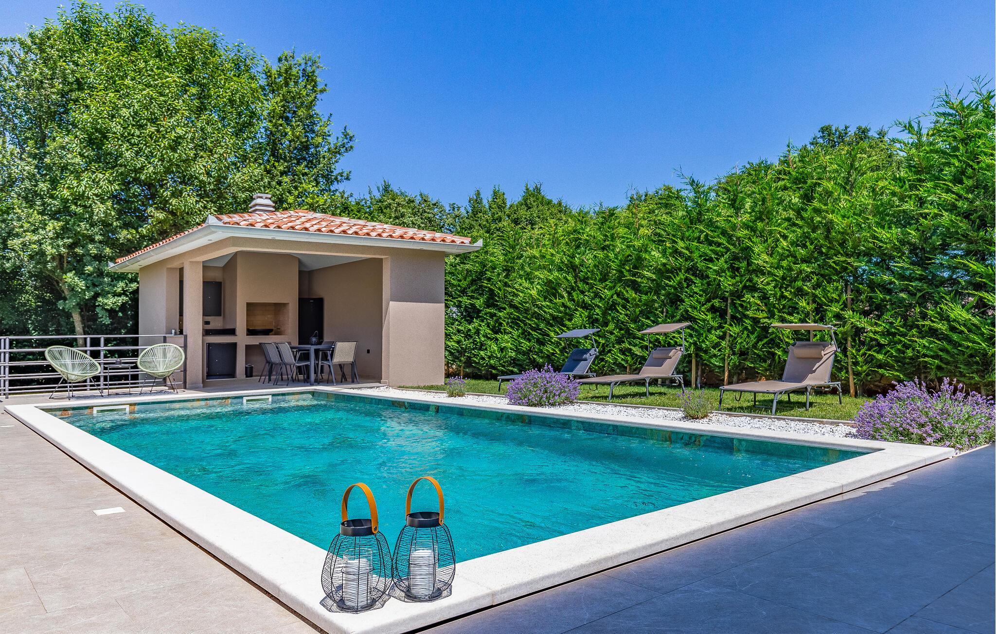 Reisen Sie mit Ihrer Großfamilie nach Snasici und verbringen einen erholsamen Urlaub in dieser komfortablen Unterkunft. Freuen Sie sich auf Privatsphäre sowie viel Zeit miteinander. Die Schlafzimmer mit Badezimmer en Suite bieten Ihnen Ruhe und Entspannung in den Nächten und der große Wohnraum, der das Kochen, Spielen und Relaxen miteinander verbindet, den geselligen Teil des Tages. Hier fehlt es Ihnen an nichts, was sich auch auf den Terrassen und im Garten mit Swimmingpool fortführt. Baden und spielen Sie viele Stunden im Freien und schmieden bei Abendessen, unter dem Pavillon, Ihre Ausflüge und Aktivitäten.