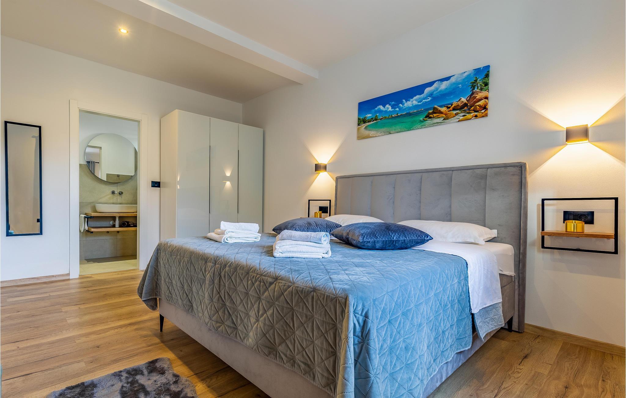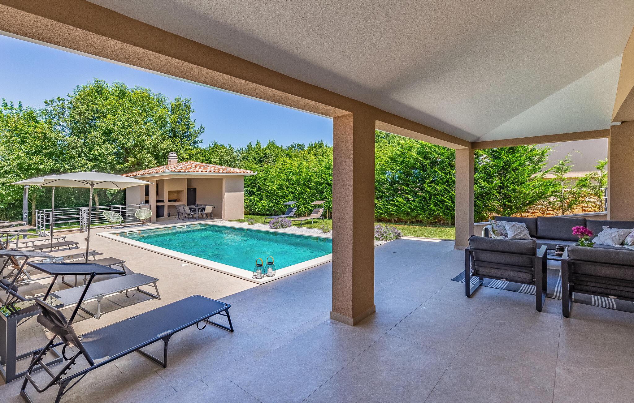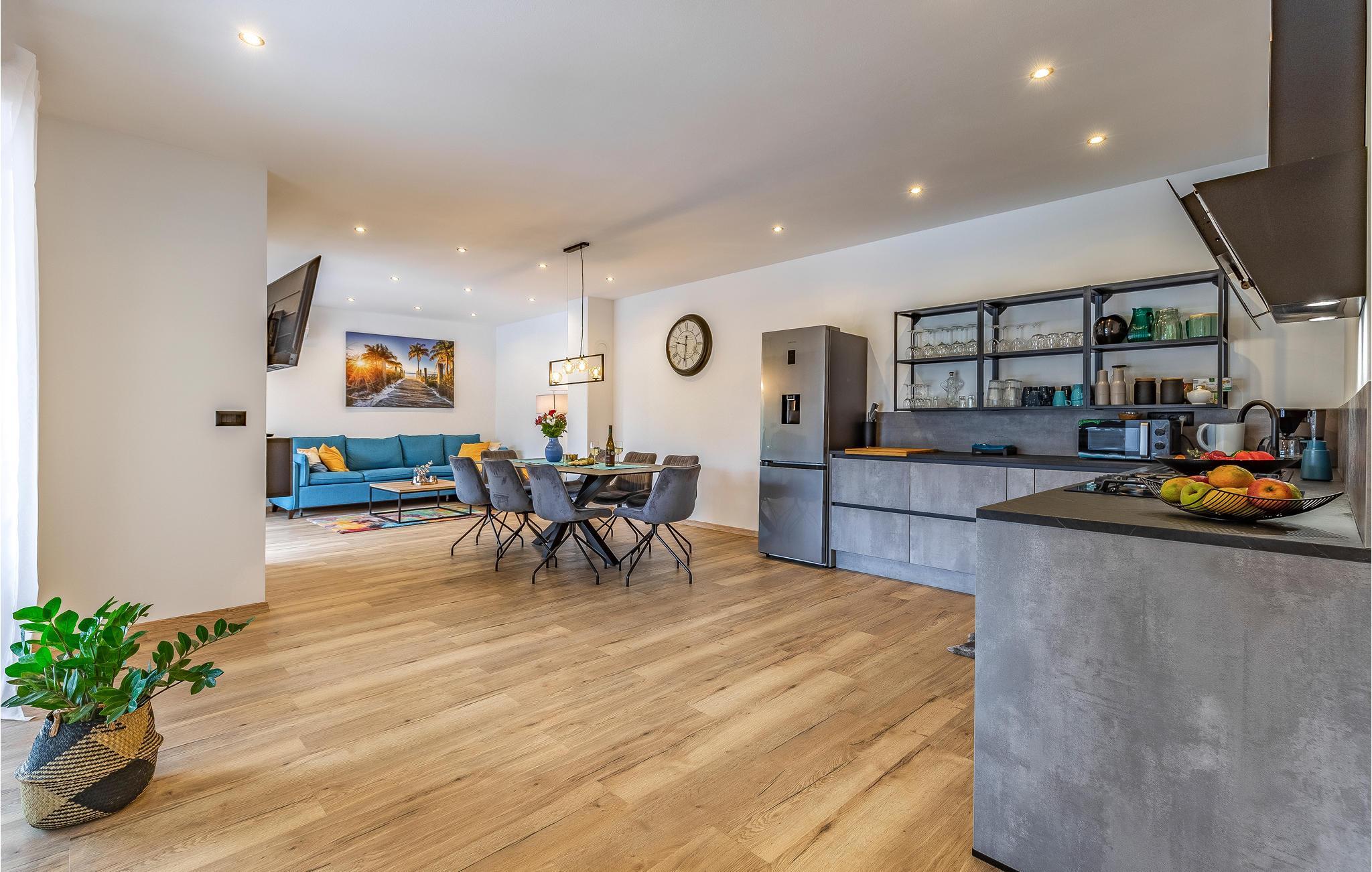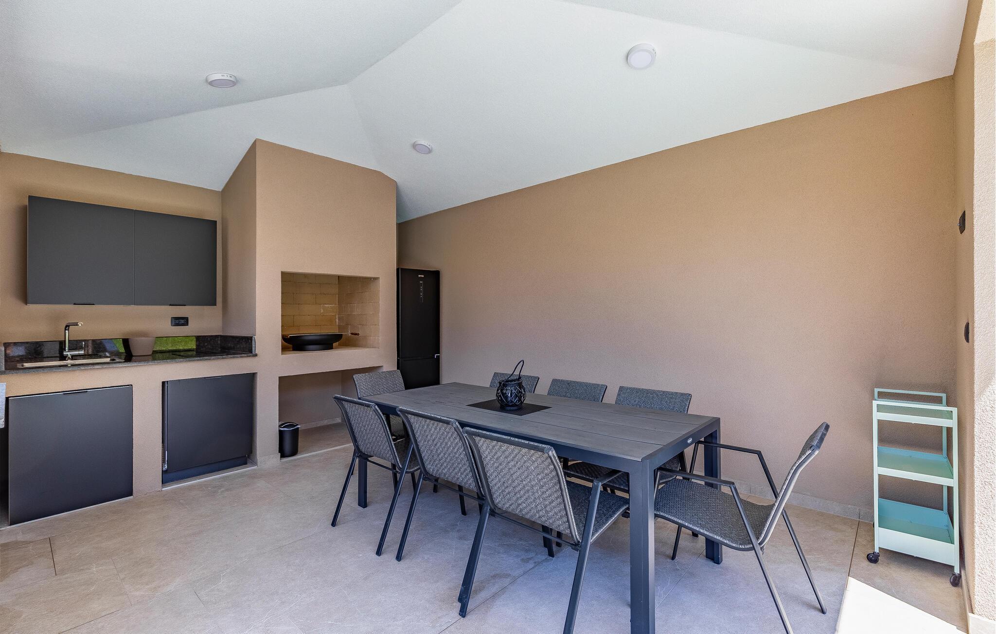 Reisen Sie mit Ihrer Großfamilie nach Snasici und verbringen einen erholsamen Urlaub in dieser komfortablen Unterkunft. Freuen Sie sich auf Privatsphäre sowie viel Zeit miteinander. Die Schlafzimmer mit Badezimmer en Suite bieten Ihnen Ruhe und Entspannung in den Nächten und der große Wohnraum, der das Kochen, Spielen und Relaxen miteinander verbindet, den geselligen Teil des Tages. Hier fehlt es Ihnen an nichts, was sich auch auf den Terrassen und im Garten mit Swimmingpool fortführt. Baden und spielen Sie viele Stunden im Freien und schmieden bei Abendessen, unter dem Pavillon, Ihre Ausflüge und Aktivitäten.