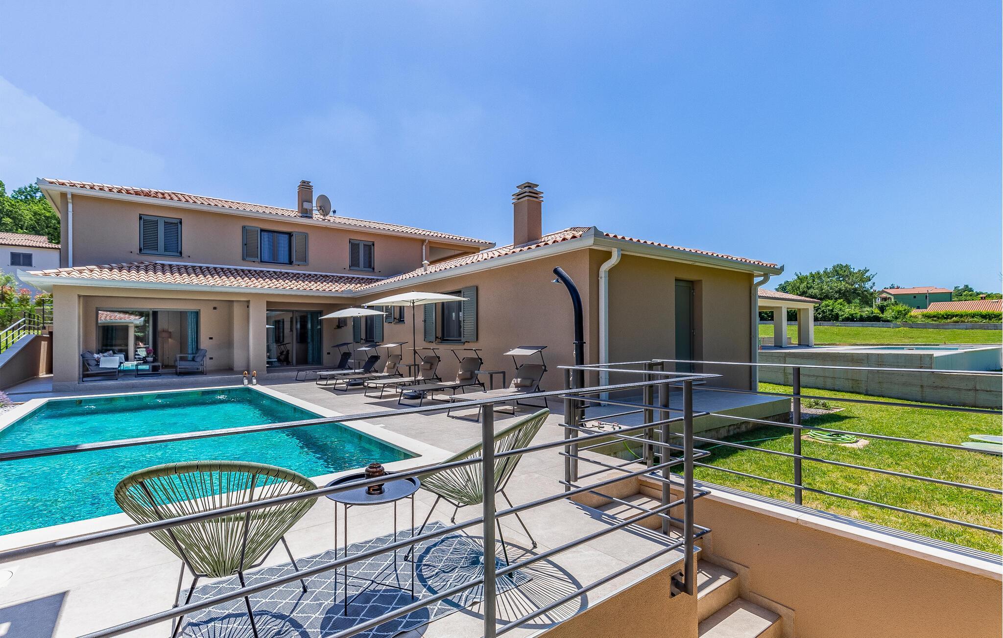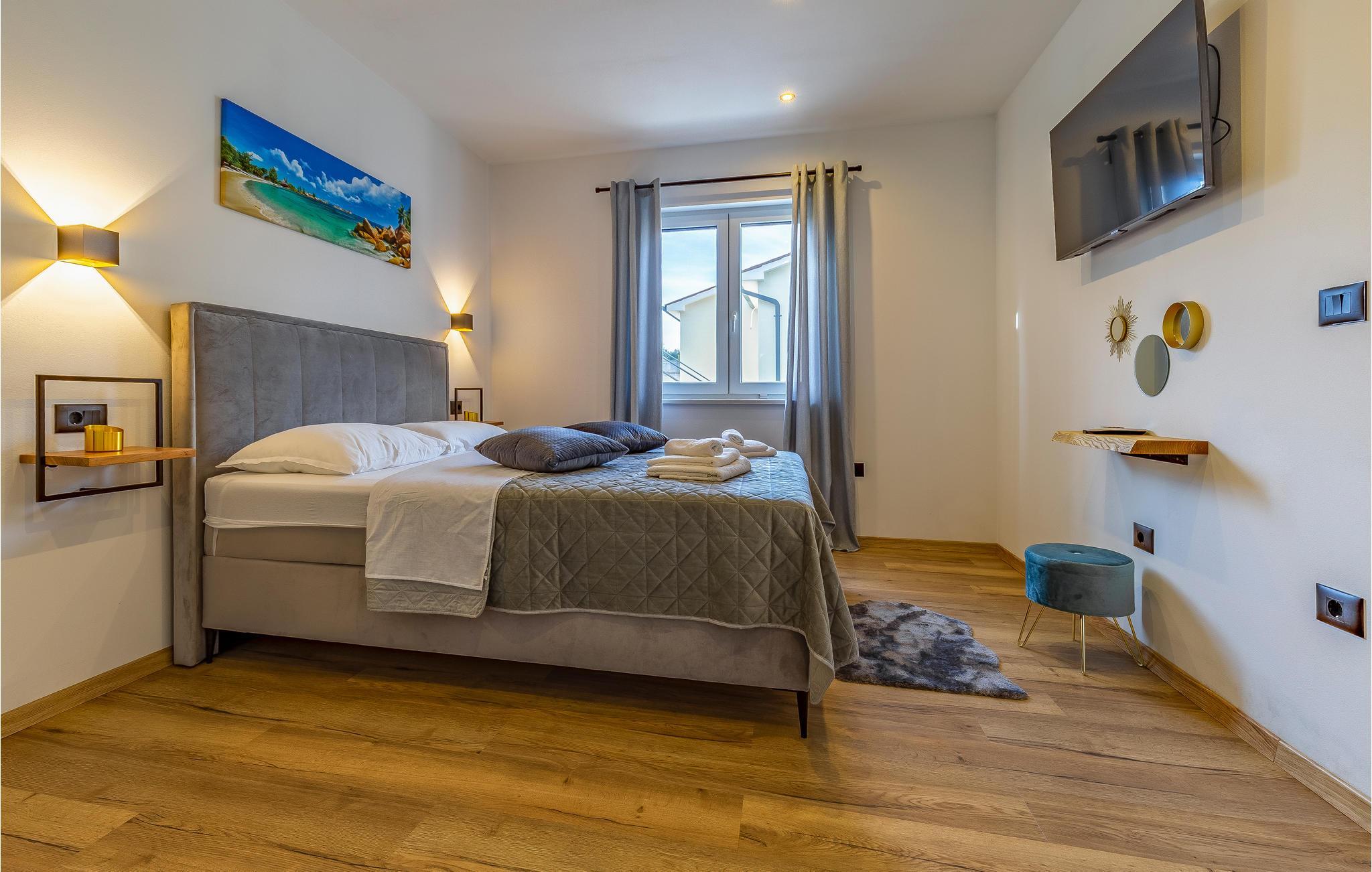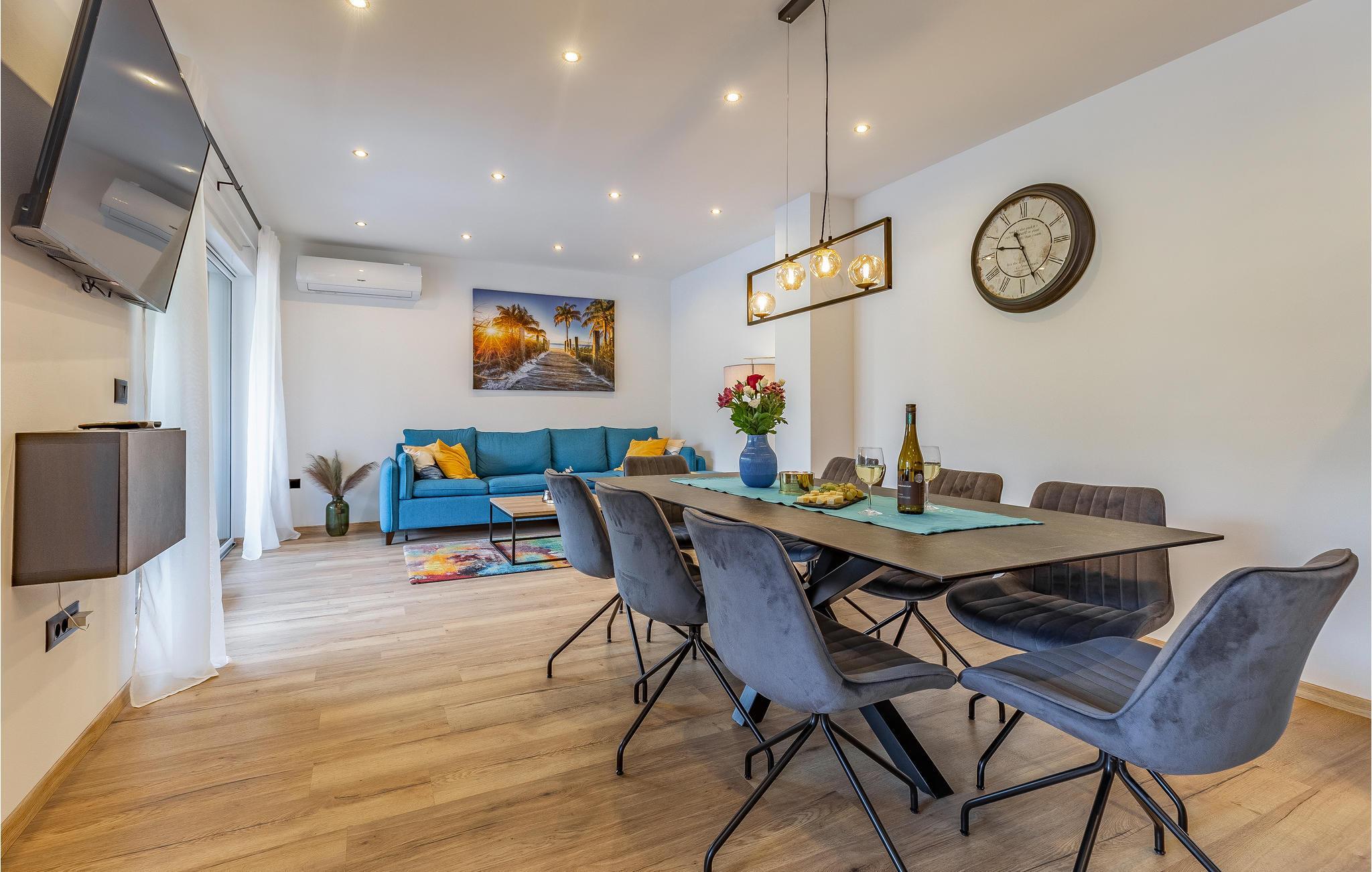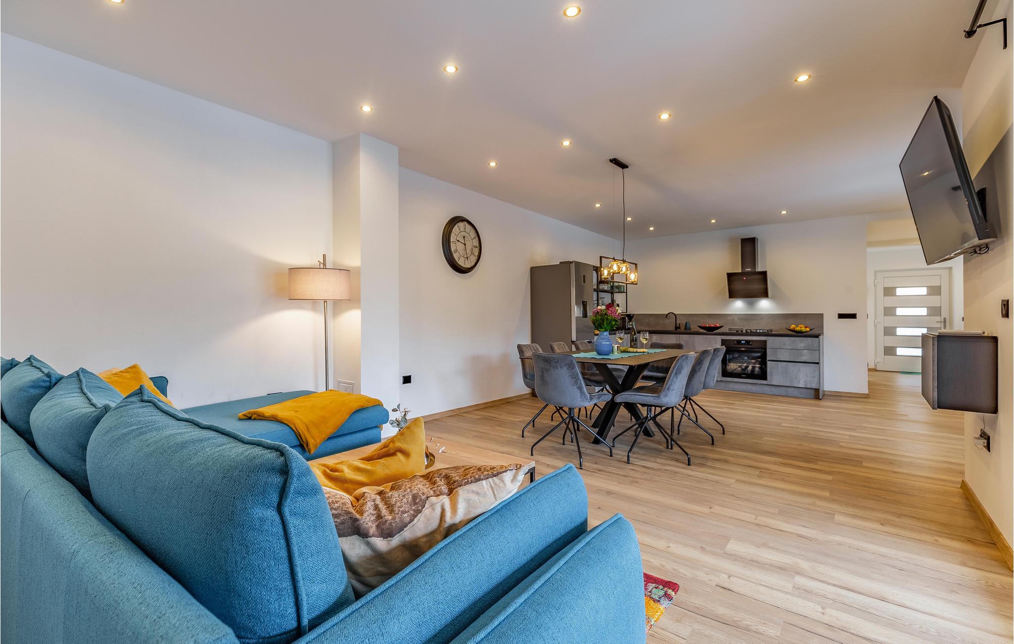 Reisen Sie mit Ihrer Großfamilie nach Snasici und verbringen einen erholsamen Urlaub in dieser komfortablen Unterkunft. Freuen Sie sich auf Privatsphäre sowie viel Zeit miteinander. Die Schlafzimmer mit Badezimmer en Suite bieten Ihnen Ruhe und Entspannung in den Nächten und der große Wohnraum, der das Kochen, Spielen und Relaxen miteinander verbindet, den geselligen Teil des Tages. Hier fehlt es Ihnen an nichts, was sich auch auf den Terrassen und im Garten mit Swimmingpool fortführt. Baden und spielen Sie viele Stunden im Freien und schmieden bei Abendessen, unter dem Pavillon, Ihre Ausflüge und Aktivitäten.
