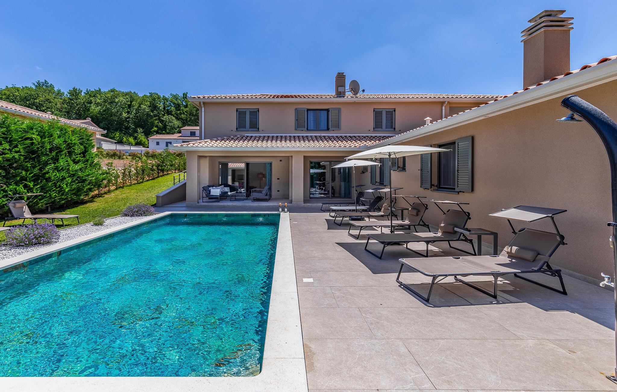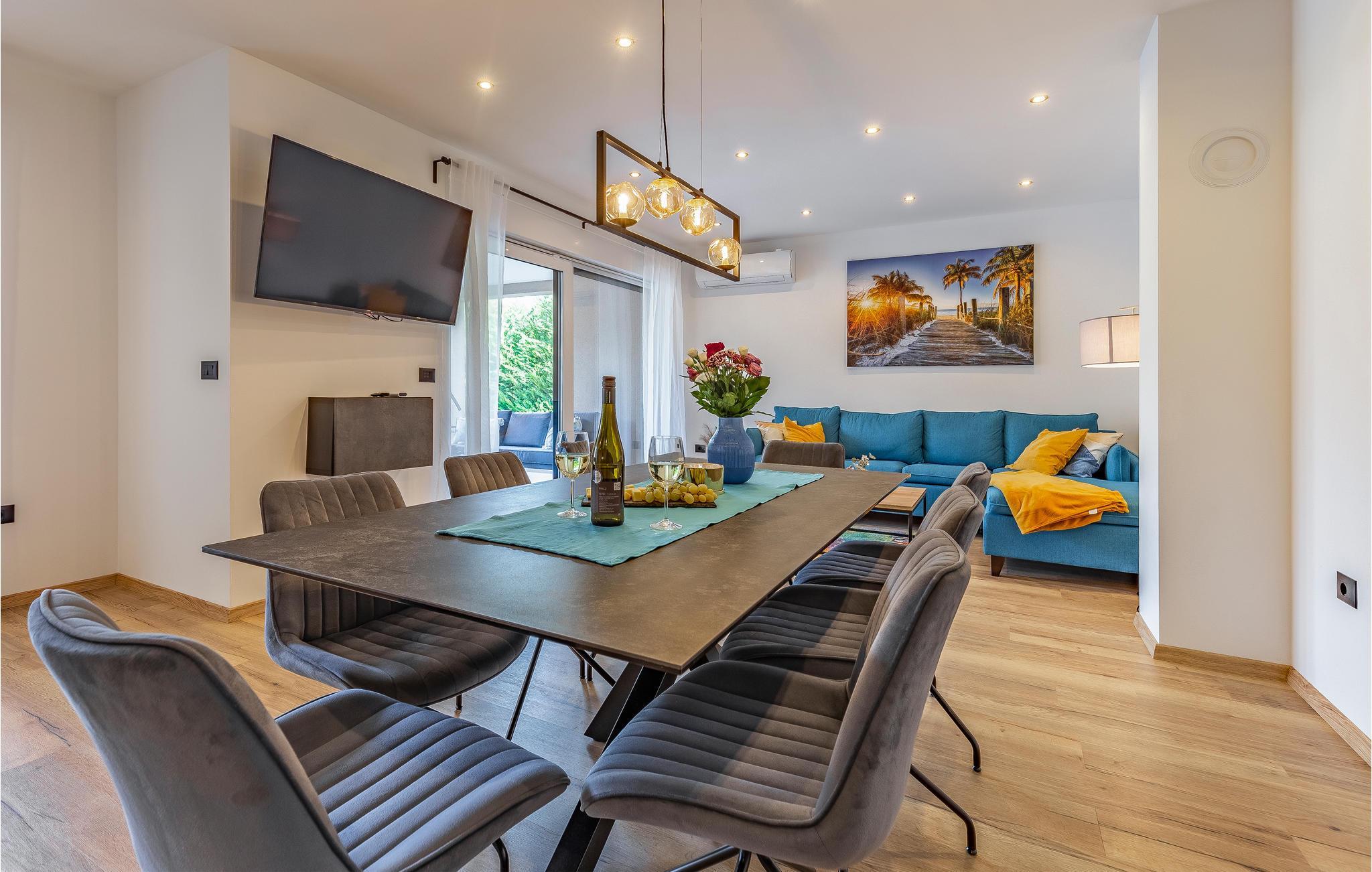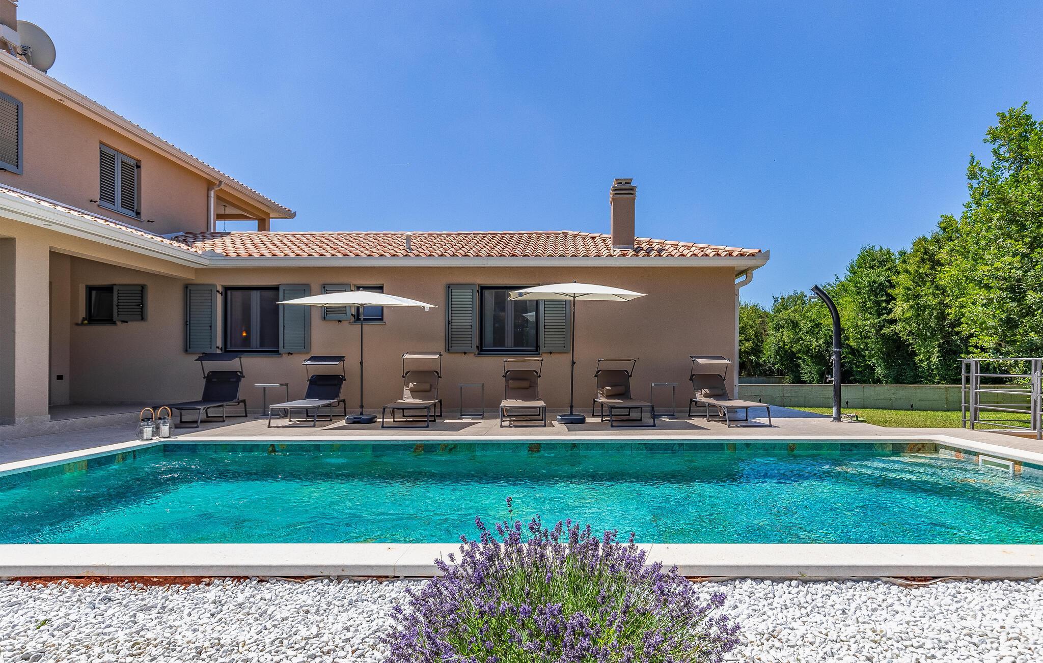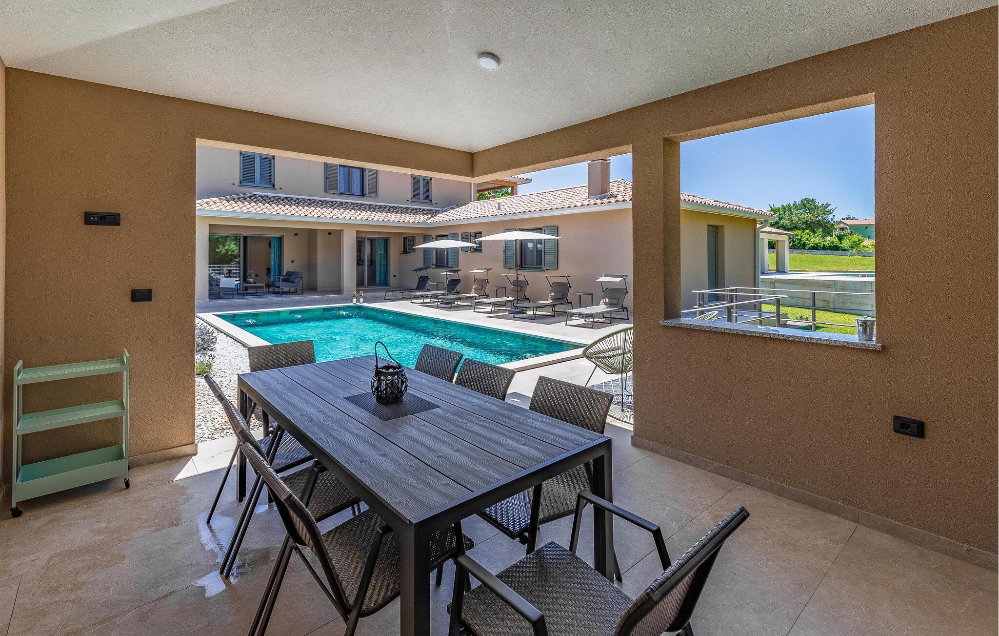Reisen Sie mit Ihrer Großfamilie nach Snasici und verbringen einen erholsamen Urlaub in dieser komfortablen Unterkunft. Freuen Sie sich auf Privatsphäre sowie viel Zeit miteinander. Die Schlafzimmer mit Badezimmer en Suite bieten Ihnen Ruhe und Entspannung in den Nächten und der große Wohnraum, der das Kochen, Spielen und Relaxen miteinander verbindet, den geselligen Teil des Tages. Hier fehlt es Ihnen an nichts, was sich auch auf den Terrassen und im Garten mit Swimmingpool fortführt. Baden und spielen Sie viele Stunden im Freien und schmieden bei Abendessen, unter dem Pavillon, Ihre Ausflüge und Aktivitäten.