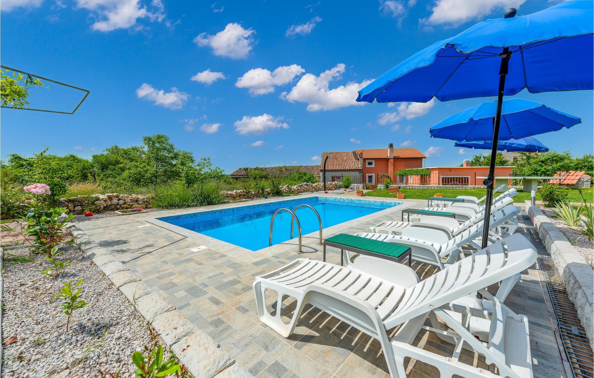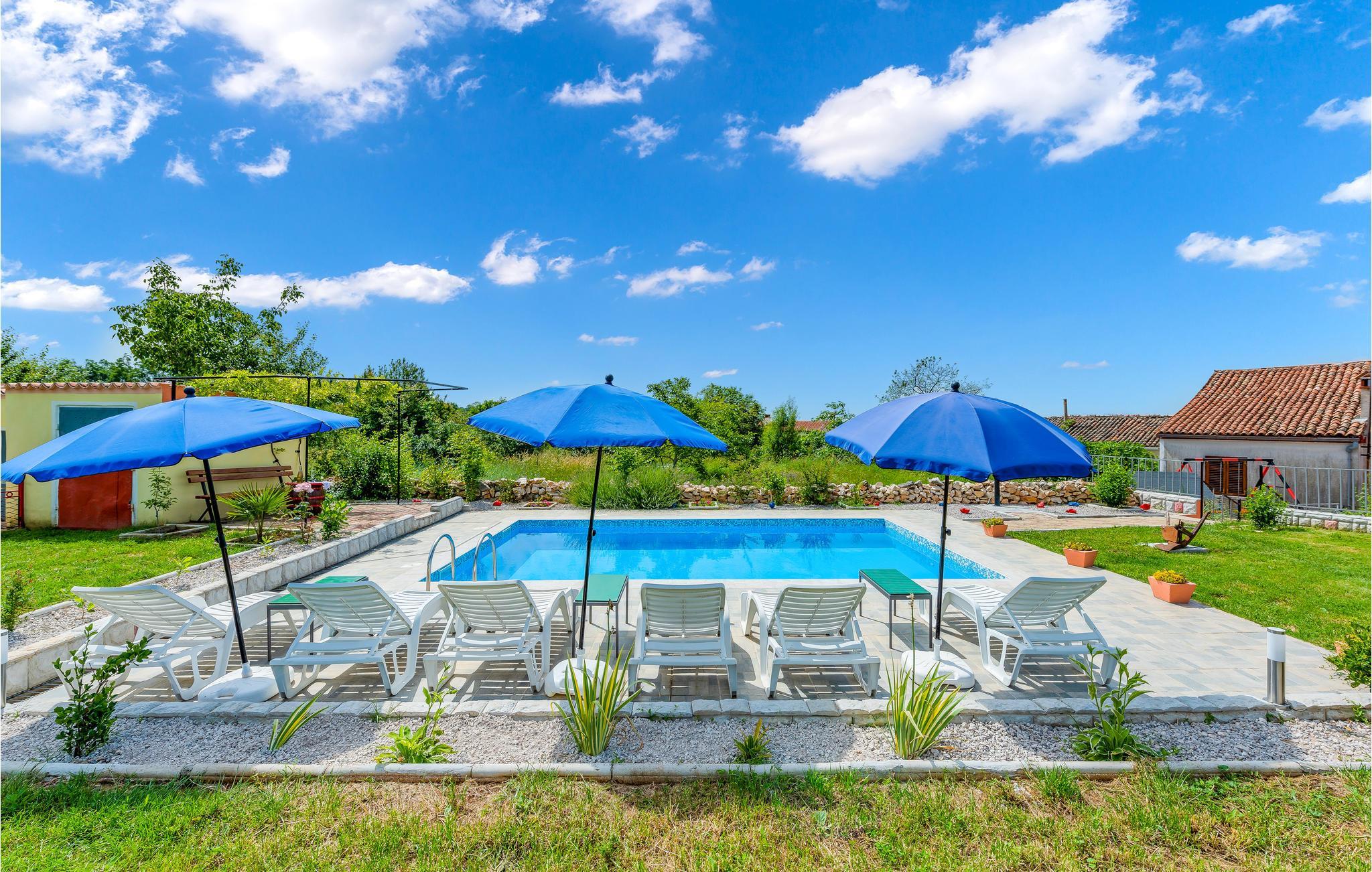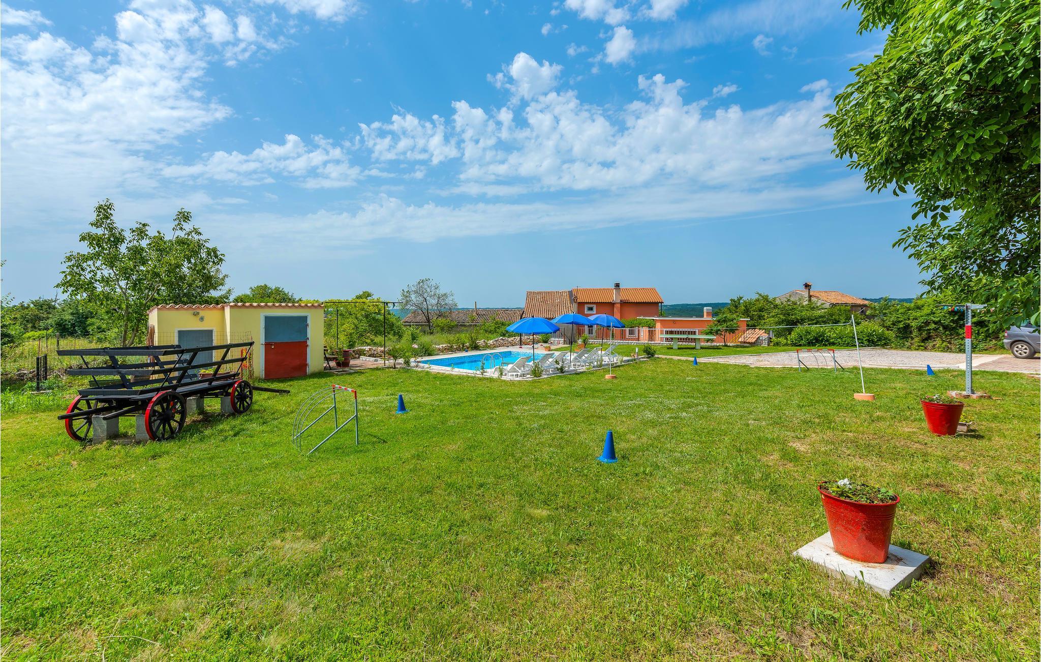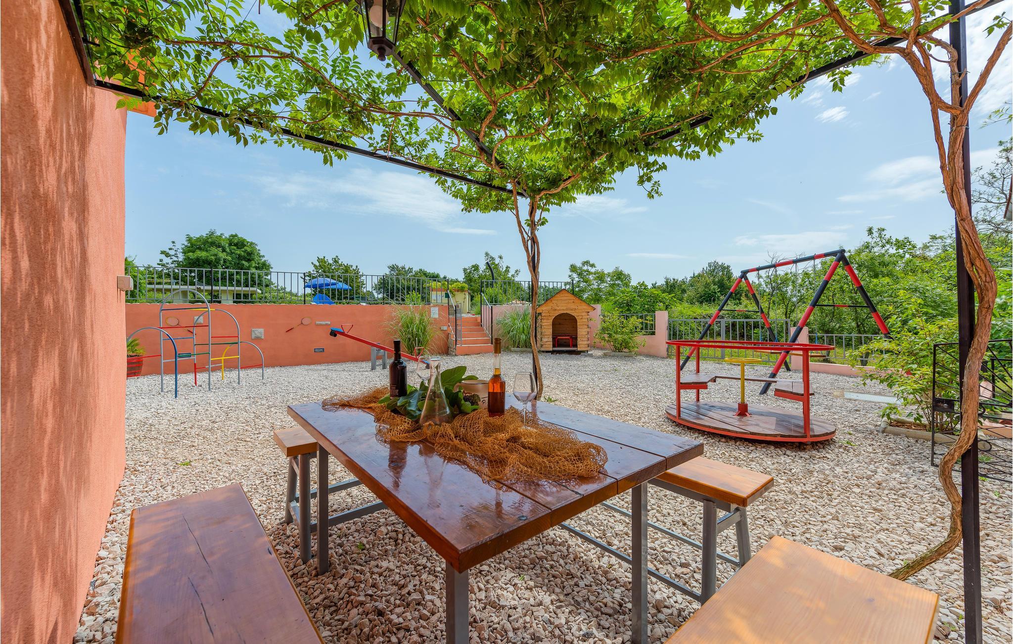 Die funktionell eingerichtete Doppelhaushälfte, mit dazugerhörendem Pool, ist umgeben von viel Grün und Weinbergen. Der Wohnbereich im Erdgeschoss ist durch Innentreppen mit dem Obergeschoss, in dem sich die Schlafzimmer befinden, verbunden. Die ruhige Lage bietet einen unbeschwerten Familienurlaub, während die zusätzliche Ausstattung, wie der Außenpool sicherlich die Aufmerksamkeit der Kinder erlangen wird. Die Dachschräge des Schlafzimmers im Dachgeschoss reicht auf 170 cm. Der Obstgarten und das Gemüse der Saison werden Groß und Klein gefallen. Kosten Sie die hausgemachten lokalen Weine in einem der Weinkeller in der Nähe. In etwa 20 Minuten Autofahrt erreichen Sie die schönen Badestrände von Rabac und die sehenswerte Altstadt von Labin.