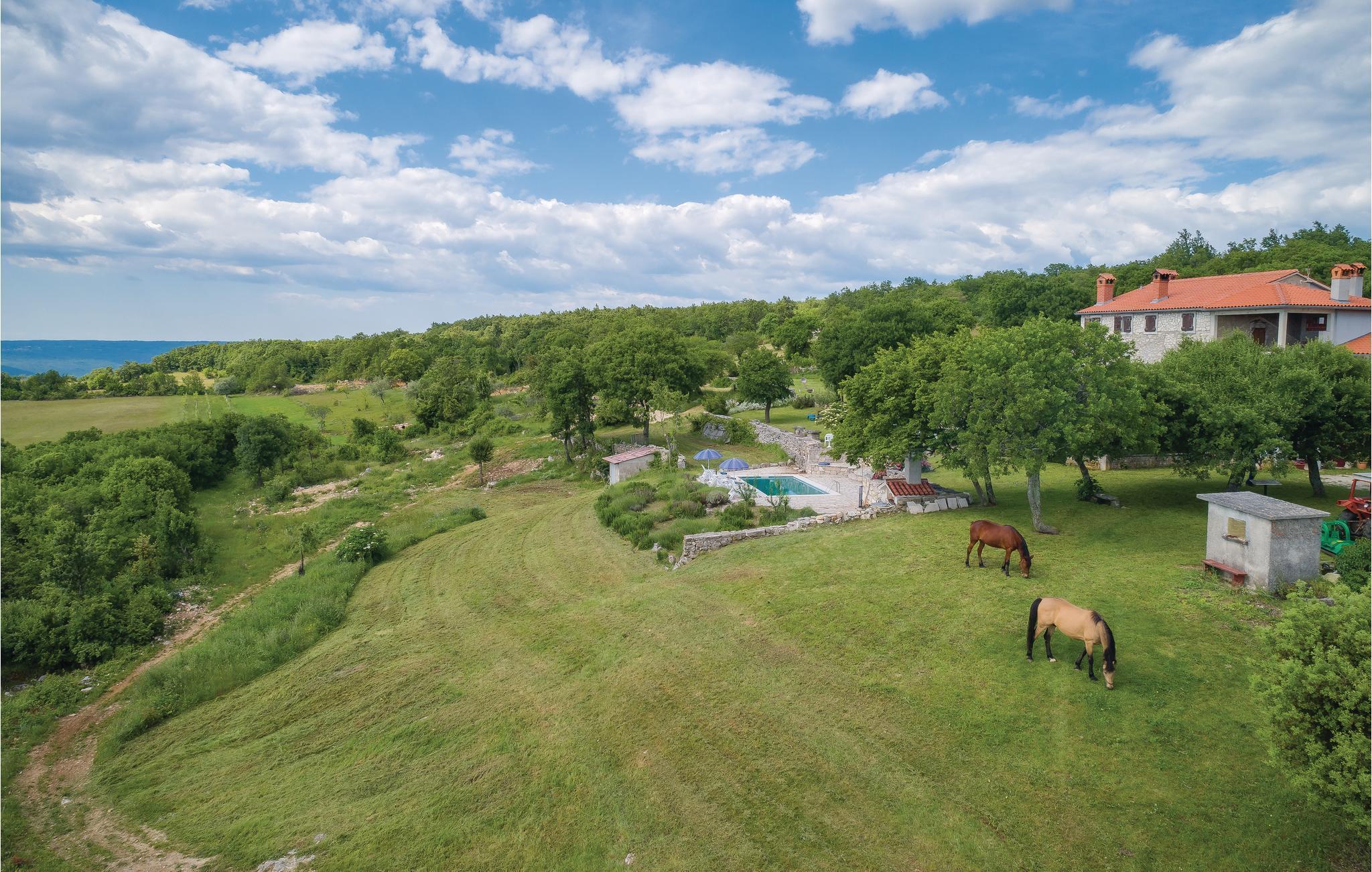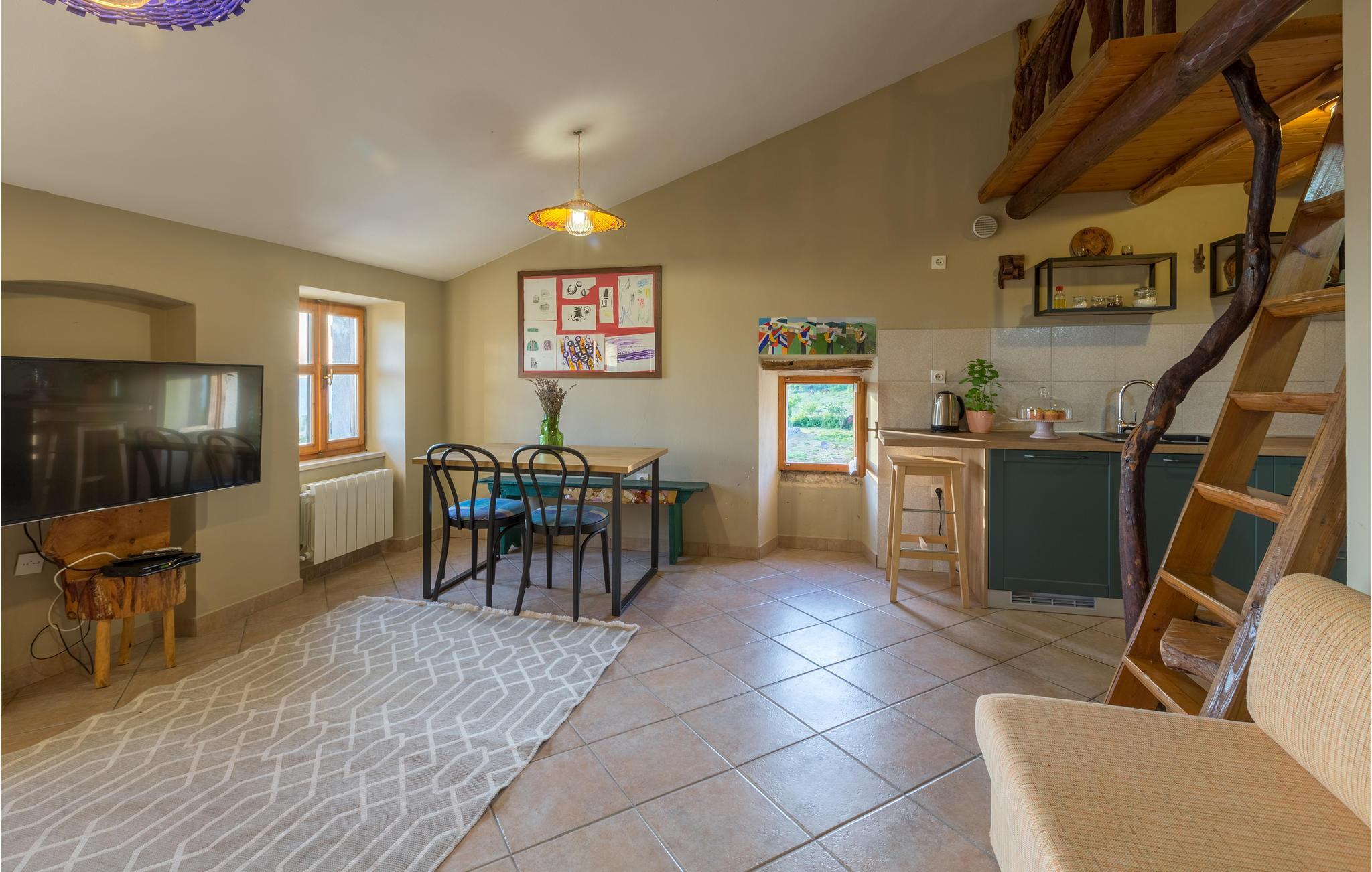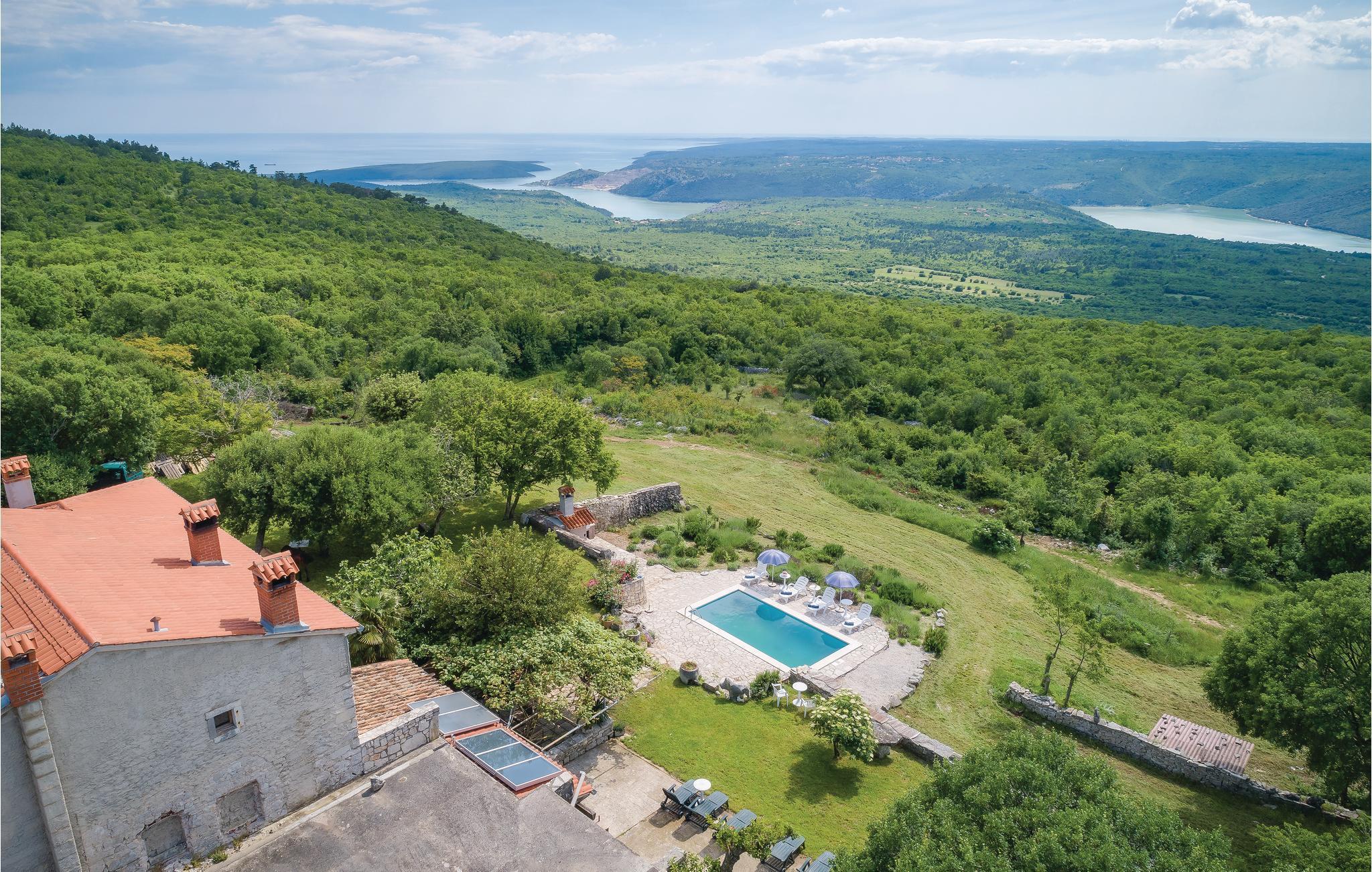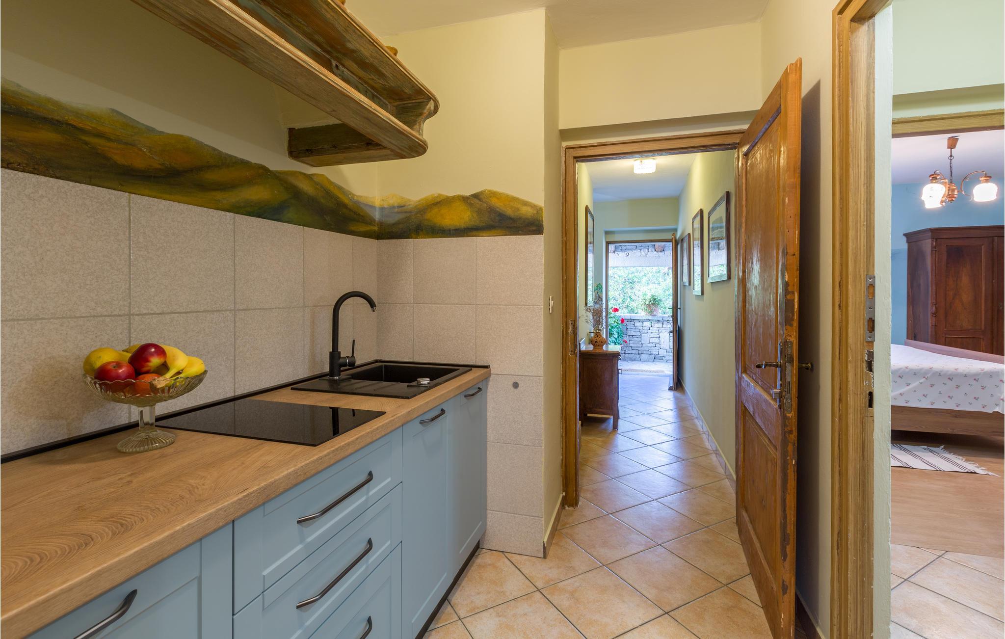 Das Haus ist im traditionellen istrischen Stil erbaut und rustikal sowie authentisch eingerichtet. Im Erdgeschoss befindet sich eine gemütliche Konoba (Taverne) mit offenem Kamin und Küche. Im ersten Stock gibt es zwei Schlafzimmer, eine Küche und ein Badezimmer. Der zweite Stock umfasst einen Wohnbereich mit Küche, ein Schlafzimmer und ein Badezimmer sowie einen Schlafboden, der über eine steile Treppe erreichbar ist – nicht geeignet für kleine Kinder. Die niedrigste Deckenhöhe auf dem Schlafboden beträgt 1,3 m.