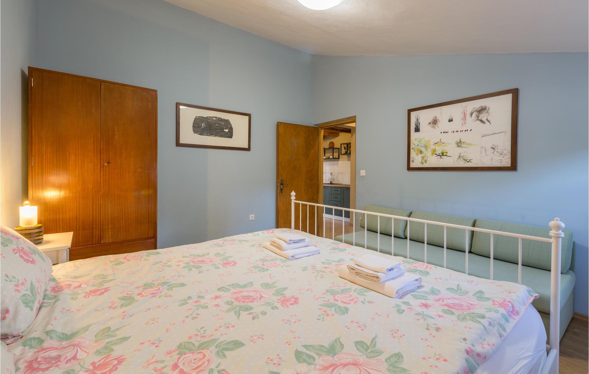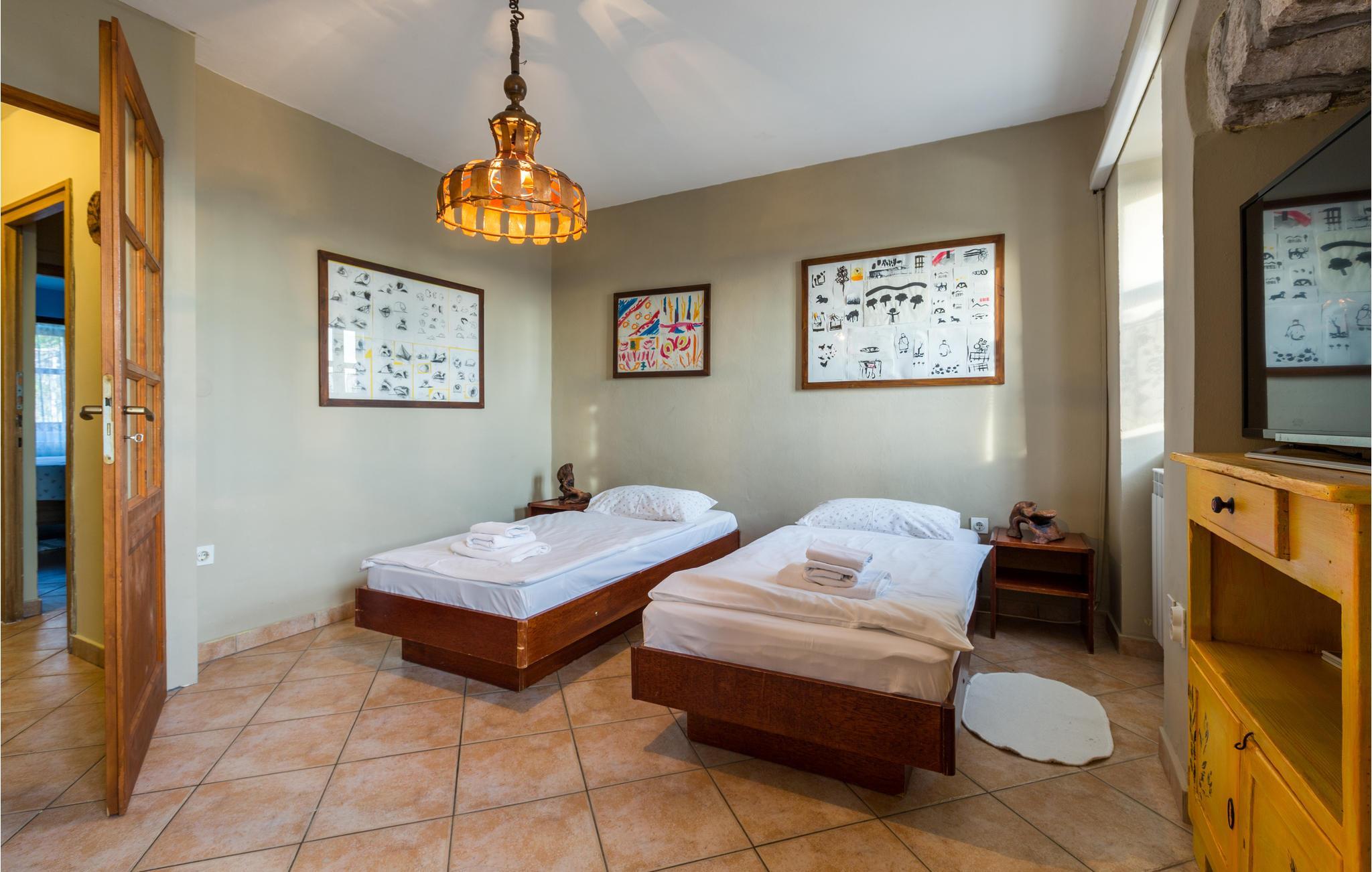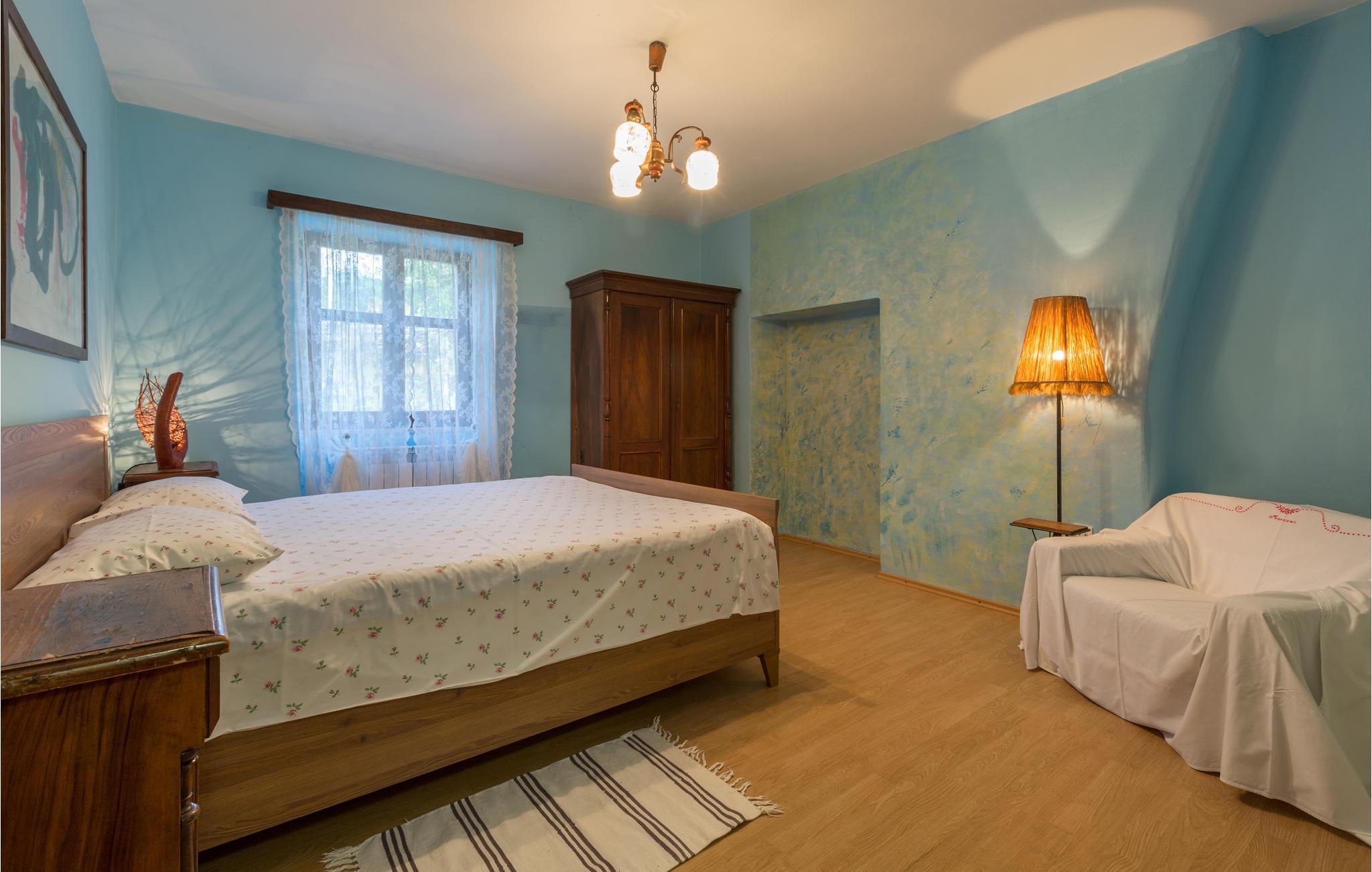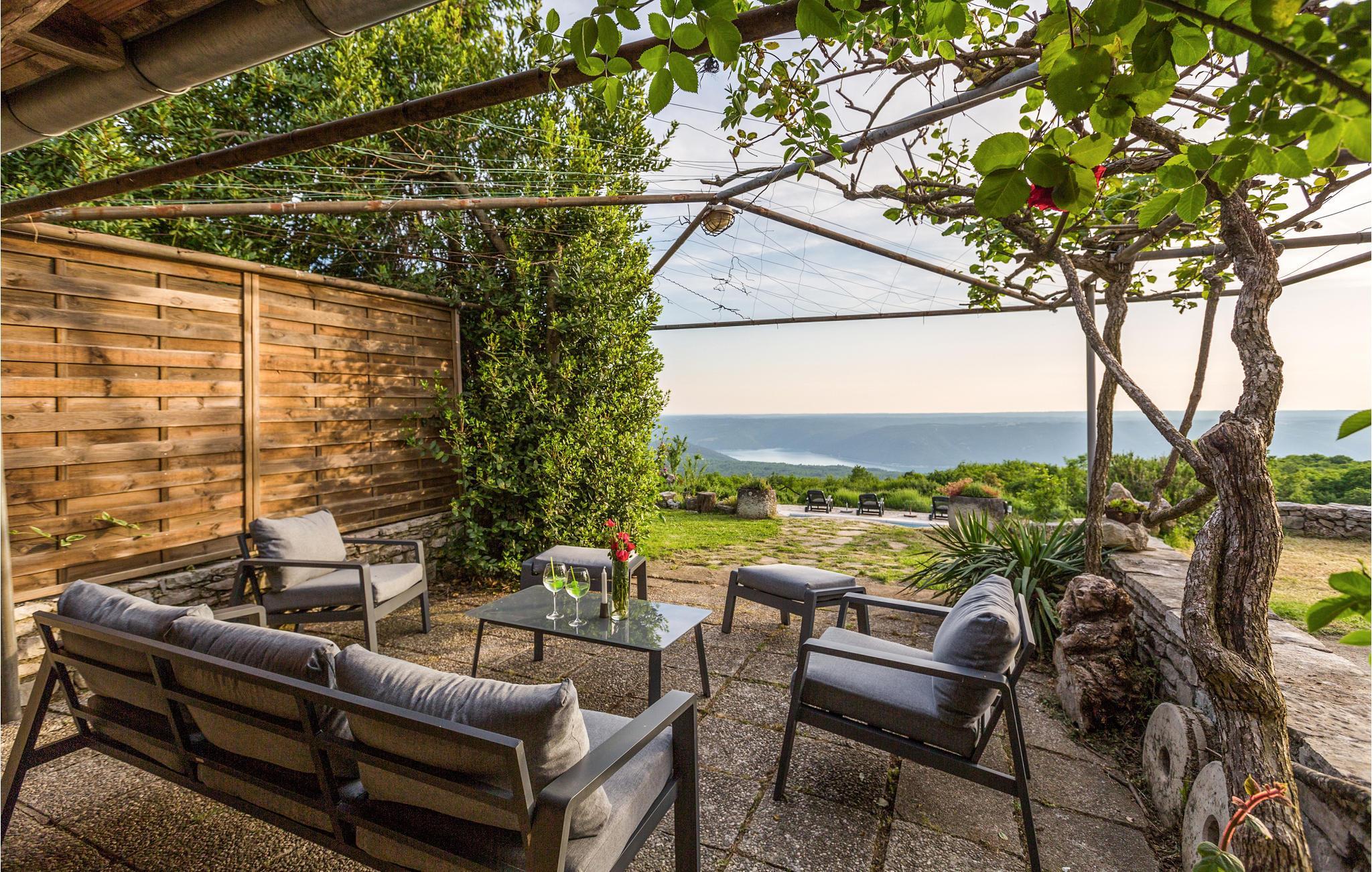 Das Haus ist im traditionellen istrischen Stil erbaut und rustikal sowie authentisch eingerichtet. Im Erdgeschoss befindet sich eine gemütliche Konoba (Taverne) mit offenem Kamin und Küche. Im ersten Stock gibt es zwei Schlafzimmer, eine Küche und ein Badezimmer. Der zweite Stock umfasst einen Wohnbereich mit Küche, ein Schlafzimmer und ein Badezimmer sowie einen Schlafboden, der über eine steile Treppe erreichbar ist – nicht geeignet für kleine Kinder. Die niedrigste Deckenhöhe auf dem Schlafboden beträgt 1,3 m.