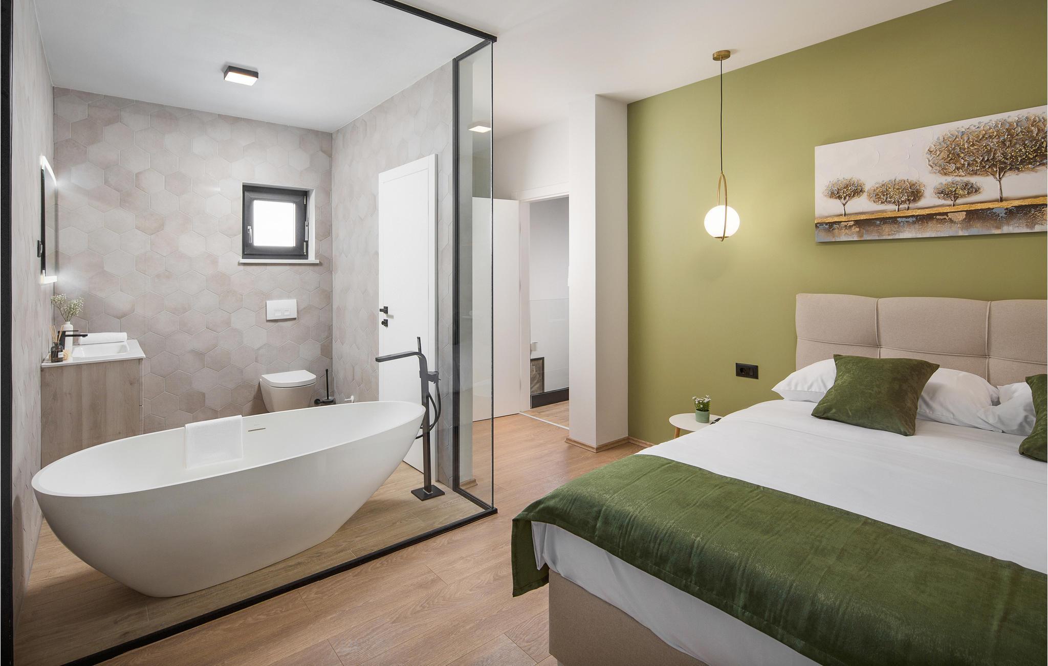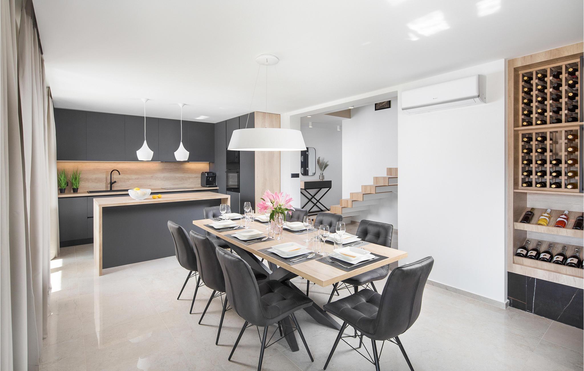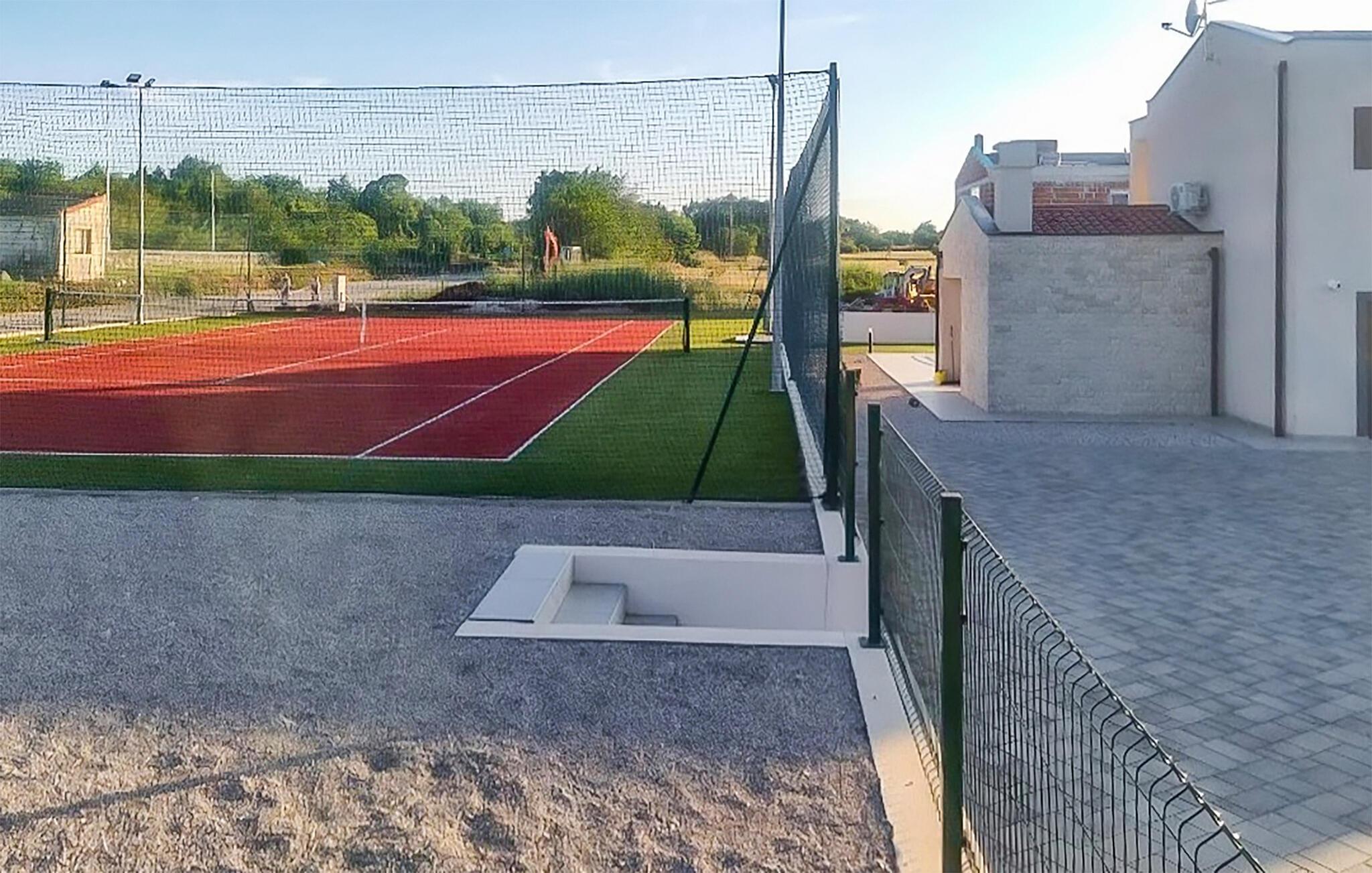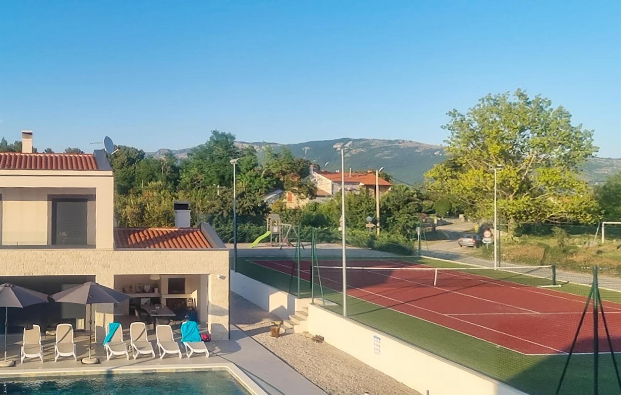Diese wunderschöne Villa befindet sich in Istrien, in der kleinen Stadt Nedescina, wo Sie sich entspannen und in Ruhe die unberührte Natur genießen können. Das großartige Haus, in modernem Baustil, ist ideal für Familien mit Kindern geeignet und bietet jedem einen luxuriösen Traumurlaub. Im Erdgeschoss befindet sich ein Wellness-Bereich, der all diejenigen begeistern wird, die in der Sauna entspannen möchten. Eine besondere Atmosphäre bietet die Decke im Wellness-Bereich, die so beleuchtet ist, dass sie dem Firmament ähnelt, sodass Sie das Gefühl haben sich irgendwo unter den Sternen zu entspannen. Trainieren Sie außerdem im Fitnessraum. Aber nicht nur die Wohlfühlatmosphäre, mit hochwertiger Einrichtung, Design und Komfort werden Sie entzücken lassen, sondern auch der schöne Garten mit Swimmingpool, Sonneneck und vielen Annehmlichkeiten. Die Kinder können den Spielplatz nutzen, samt Rutsche, Schaukeln und Klettergerüst. Eine Besonderheit der Villa ist der Tennisplatz mit Kunstrasen und Flutlicht und bietet eine großartige Gelegenheit für Aktivurlauber.