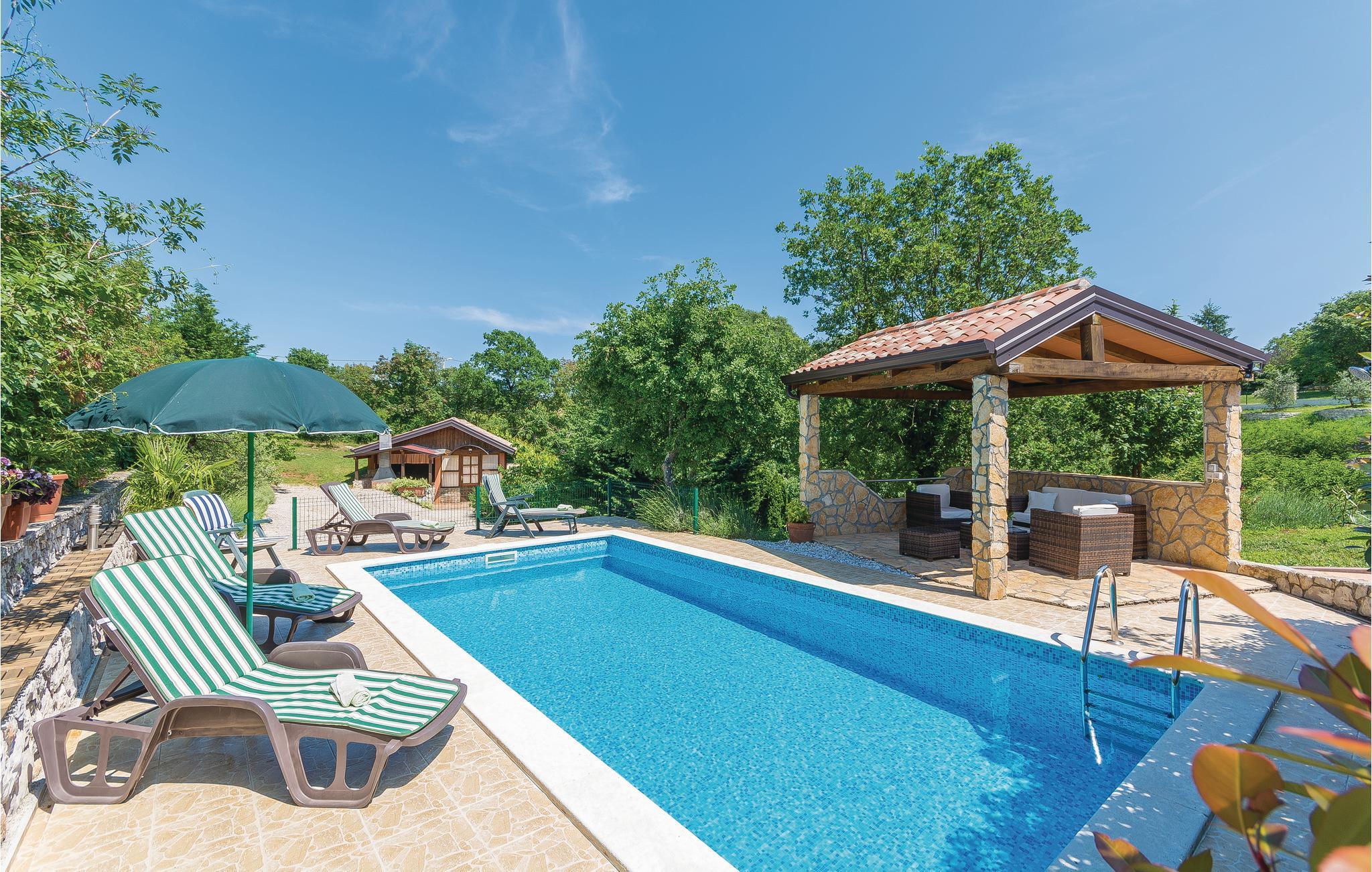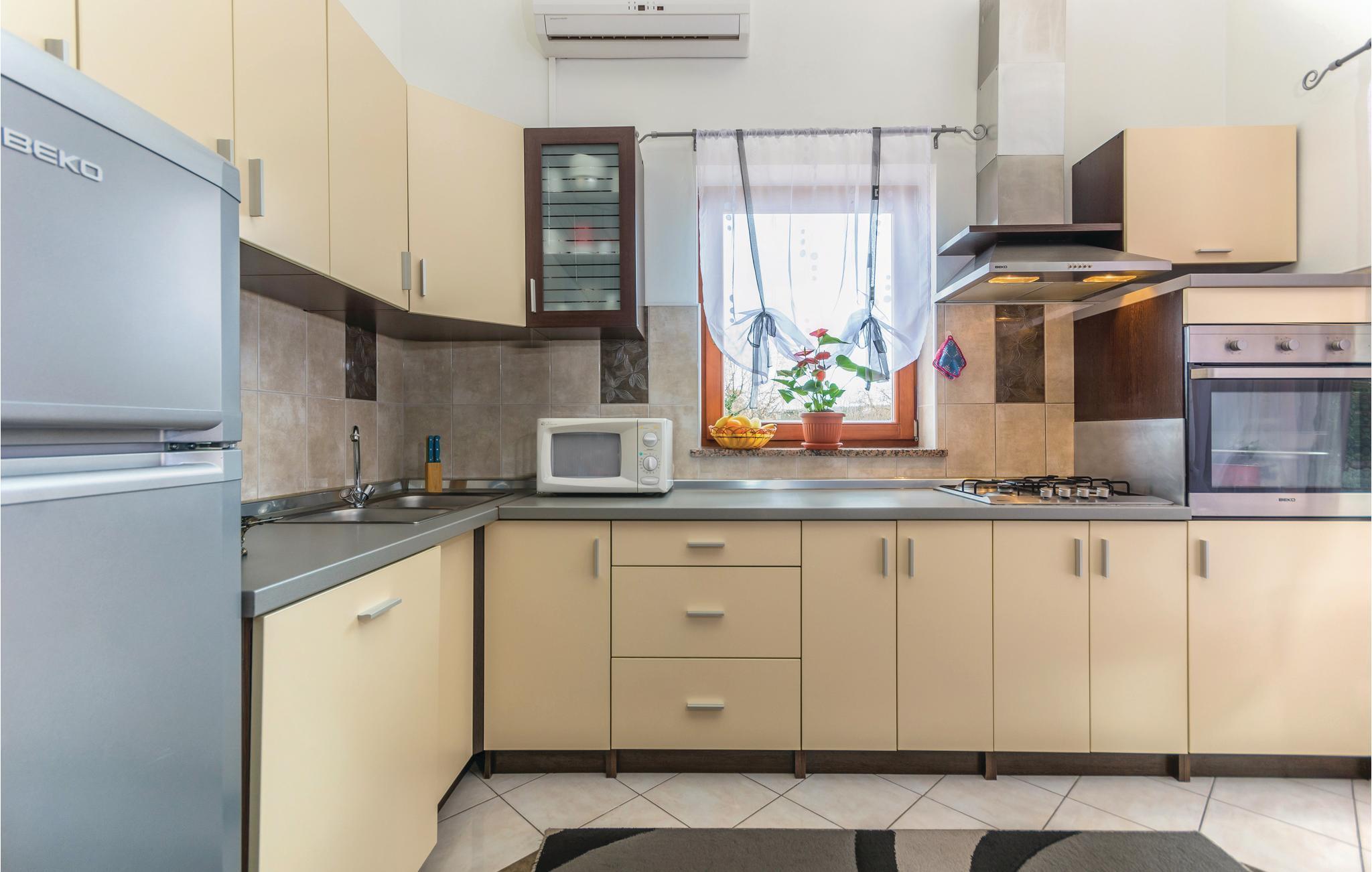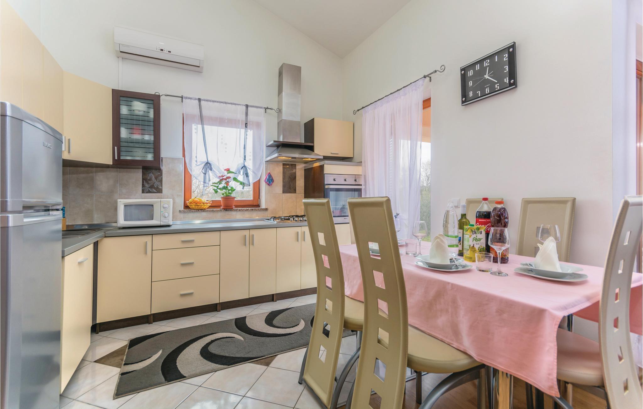Verbringen Sie einen erholsamen Urlaub in diesem schönen Ferienhaus mit Pool, das auf einem großen Grundstück umgeben von Weinbergen, Olivenhainen und mediterranen Pflanzen liegt. Im Inneren stehen Ihnen zwei Schlafzimmer, ein Badezimmer, eine Toilette sowie eine kleiner Galerie, die sich über der Wohnküche befindet. Neben den Pool erwartet Sie eine Außenküche, in der Sie viele gesellige Stunden mit Familie und Freuden verbringen können. Für das unbeschwerte Spielen Ihrer Kinder sorgt ein Kinderspielbereich, der sich ebenfalls auf dem Grundstück befindet. Der Ort Kapelica liegt nahe der Altstadt von Labin und ist etwa 15 Autominuten vom beliebten Touristenort Rabac entfernt. Dort gibt es wunderschöne Strände, Bars und Restaurants, sowie die Möglichkeit Bootsfahrten zu den umliegenden Kvarner-Inseln zu unternehmen.