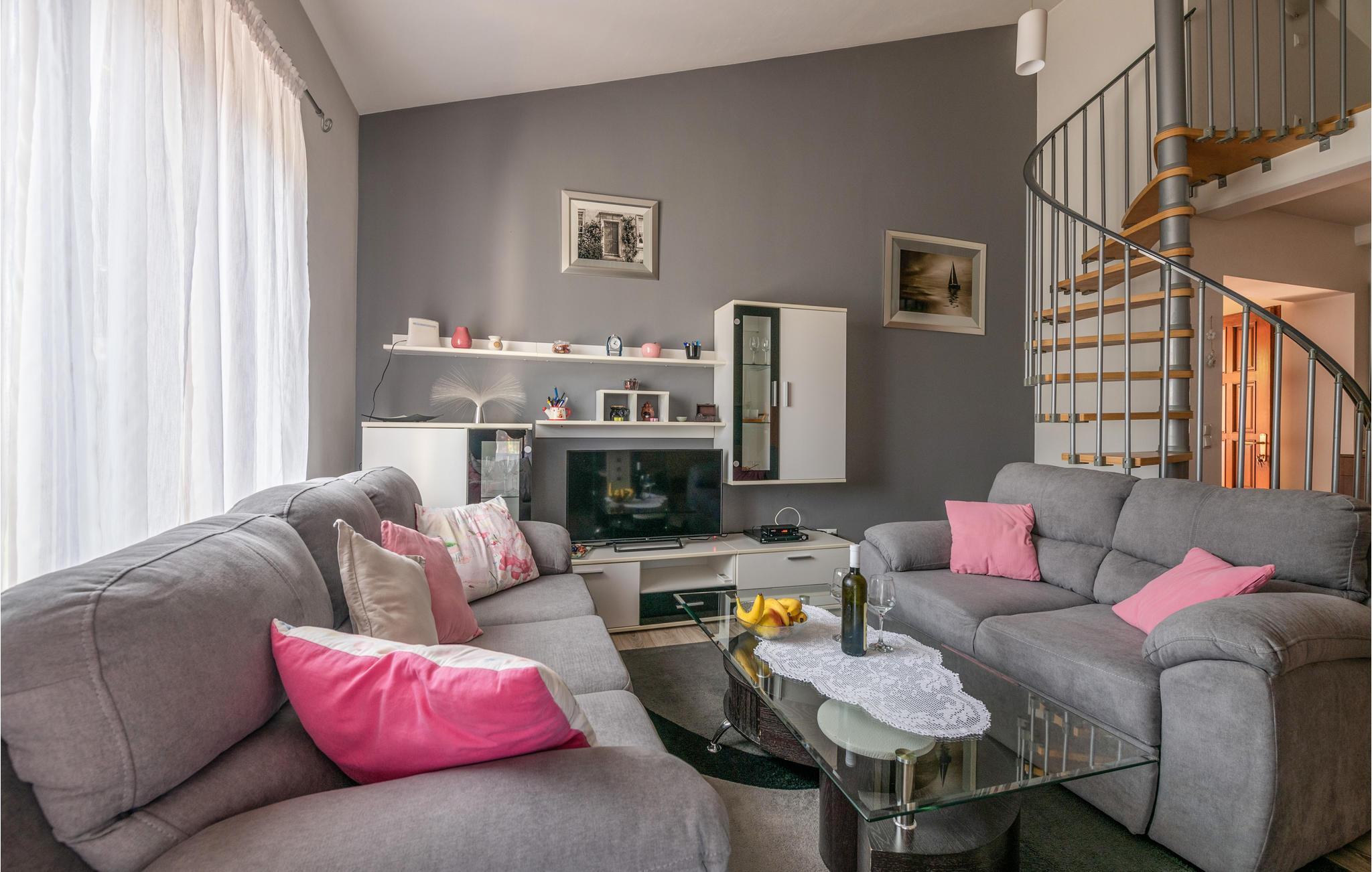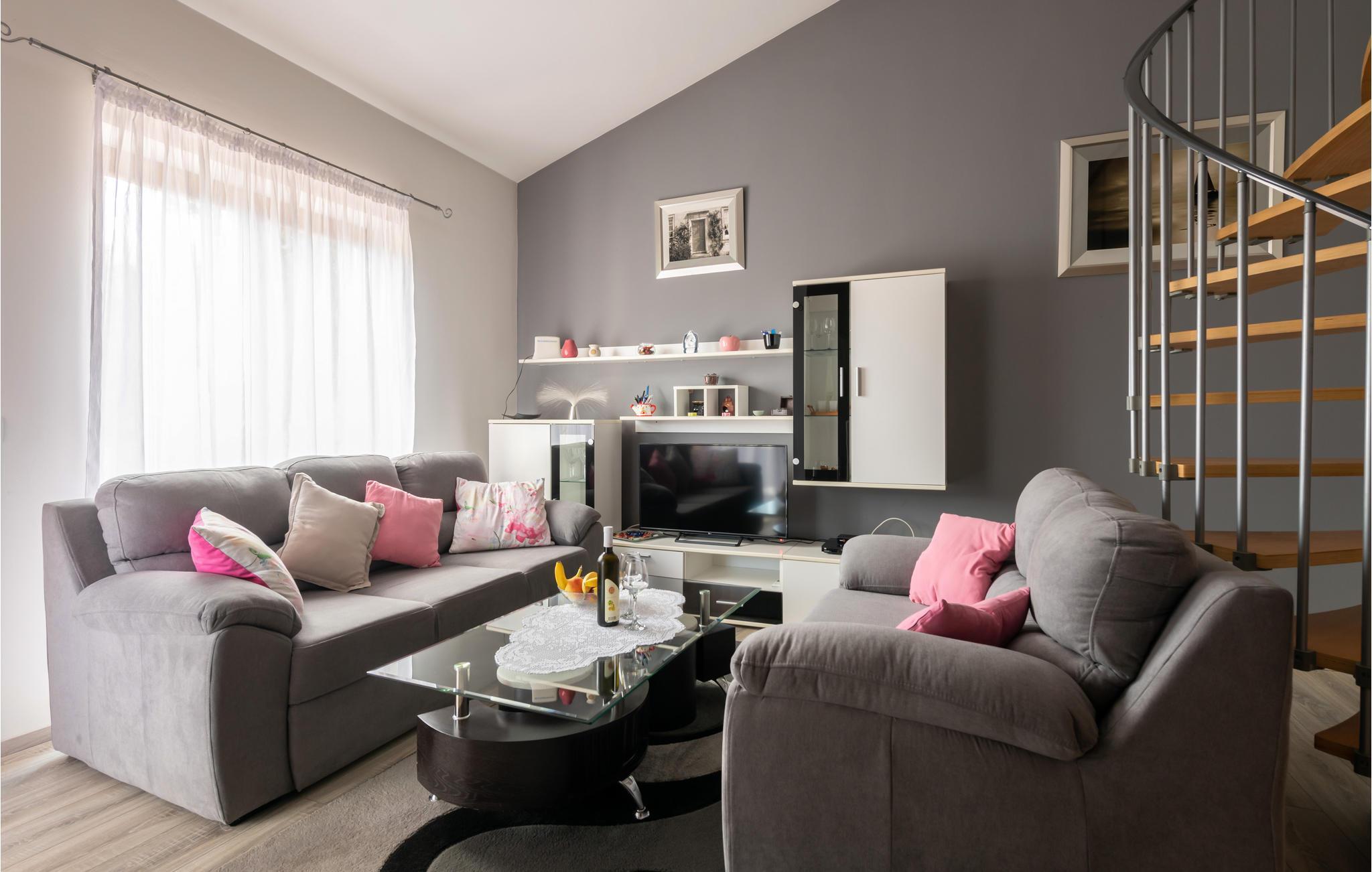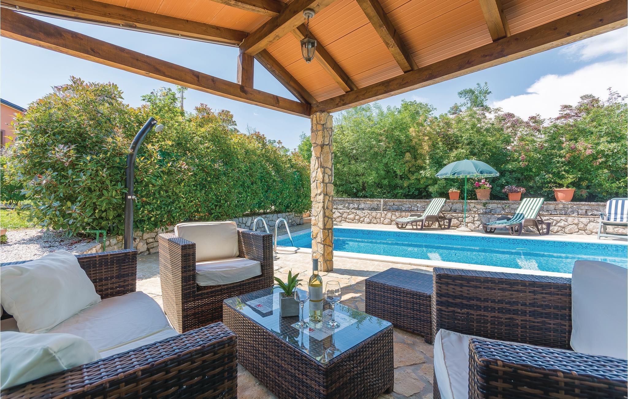 Verbringen Sie einen erholsamen Urlaub in diesem schönen Ferienhaus mit Pool, das auf einem großen Grundstück umgeben von Weinbergen, Olivenhainen und mediterranen Pflanzen liegt. Im Inneren stehen Ihnen zwei Schlafzimmer, ein Badezimmer, eine Toilette sowie eine kleiner Galerie, die sich über der Wohnküche befindet. Neben den Pool erwartet Sie eine Außenküche, in der Sie viele gesellige Stunden mit Familie und Freuden verbringen können. Für das unbeschwerte Spielen Ihrer Kinder sorgt ein Kinderspielbereich, der sich ebenfalls auf dem Grundstück befindet. Der Ort Kapelica liegt nahe der Altstadt von Labin und ist etwa 15 Autominuten vom beliebten Touristenort Rabac entfernt. Dort gibt es wunderschöne Strände, Bars und Restaurants, sowie die Möglichkeit Bootsfahrten zu den umliegenden Kvarner-Inseln zu unternehmen.