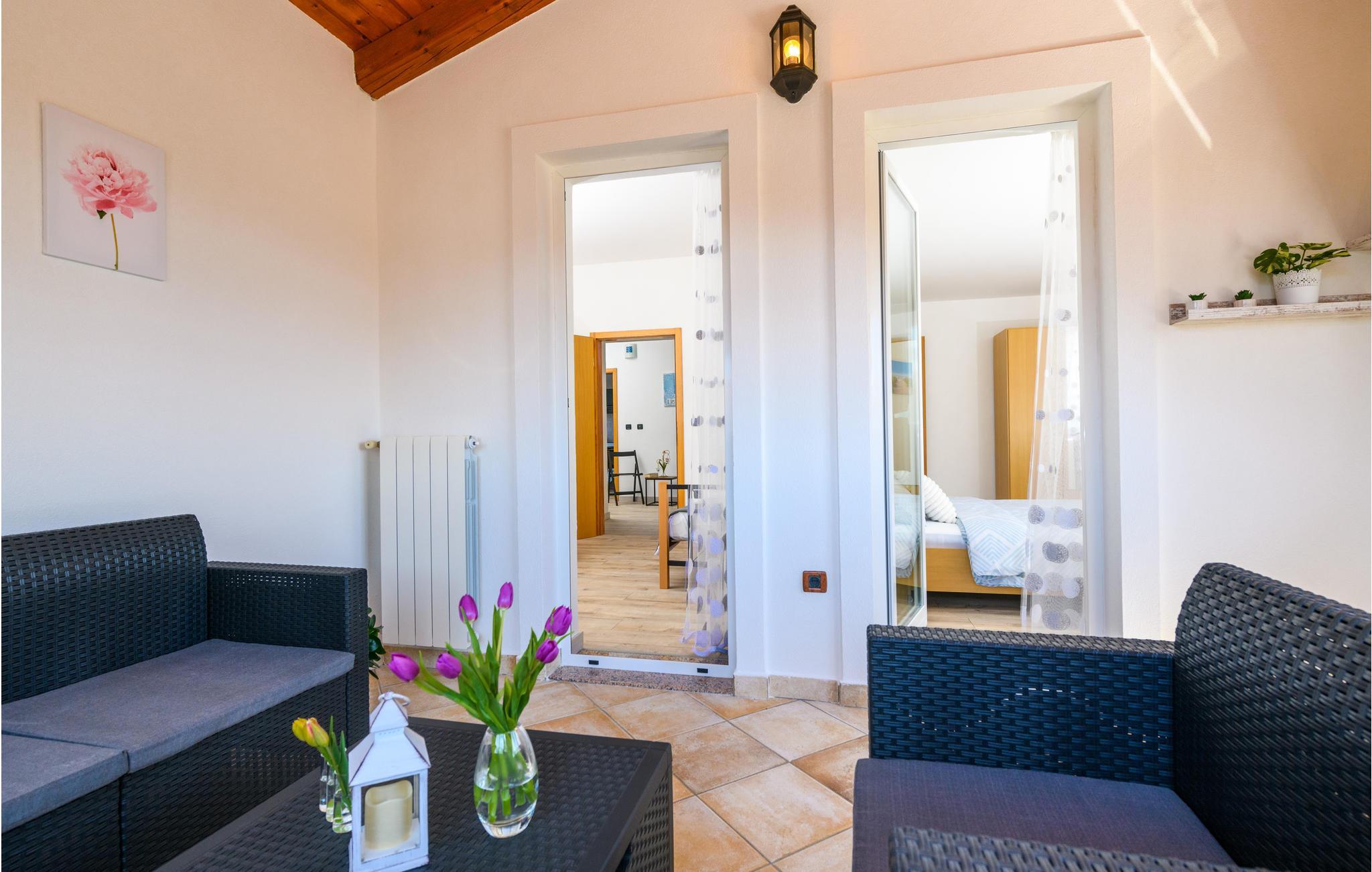Dieses schöne, komfortable Ferienhaus mit Swimmingpool und einem Garten mit Palmen liegt im kleinen Ort Kapelica, welcher in der Nähe von Labin liegt. Im Erdgeschoss sind eine kleine Küche und ein geräumiges Wohnzimmer mit offenem Kamin vorhanden. Abgetrennt durch eine Schiebetür findet sich außerdem noch ein Schlafzimmer. Im oberen Stockwerk sind 4 Schlafzimmer, Küche, Ess- und Wohnzimmer. Zwei Schlafzimmer haben einen Ausgang auf die Veranda. Seitlich vom Haus liegt ein kleineres Haus, das der Eigentümer zeitweise benutzt. Der nächste Strand von Rabac liegt 10 Minuten Autofahrt entfernt. Zusätzliche Einrichtungen bereichern den Aufenthalt für Jung und Alt. Von Rabac aus können Sie Bootsausflüge zu den Kvarner Insel unternehmen oder die Altstadt von Labin erkunden.