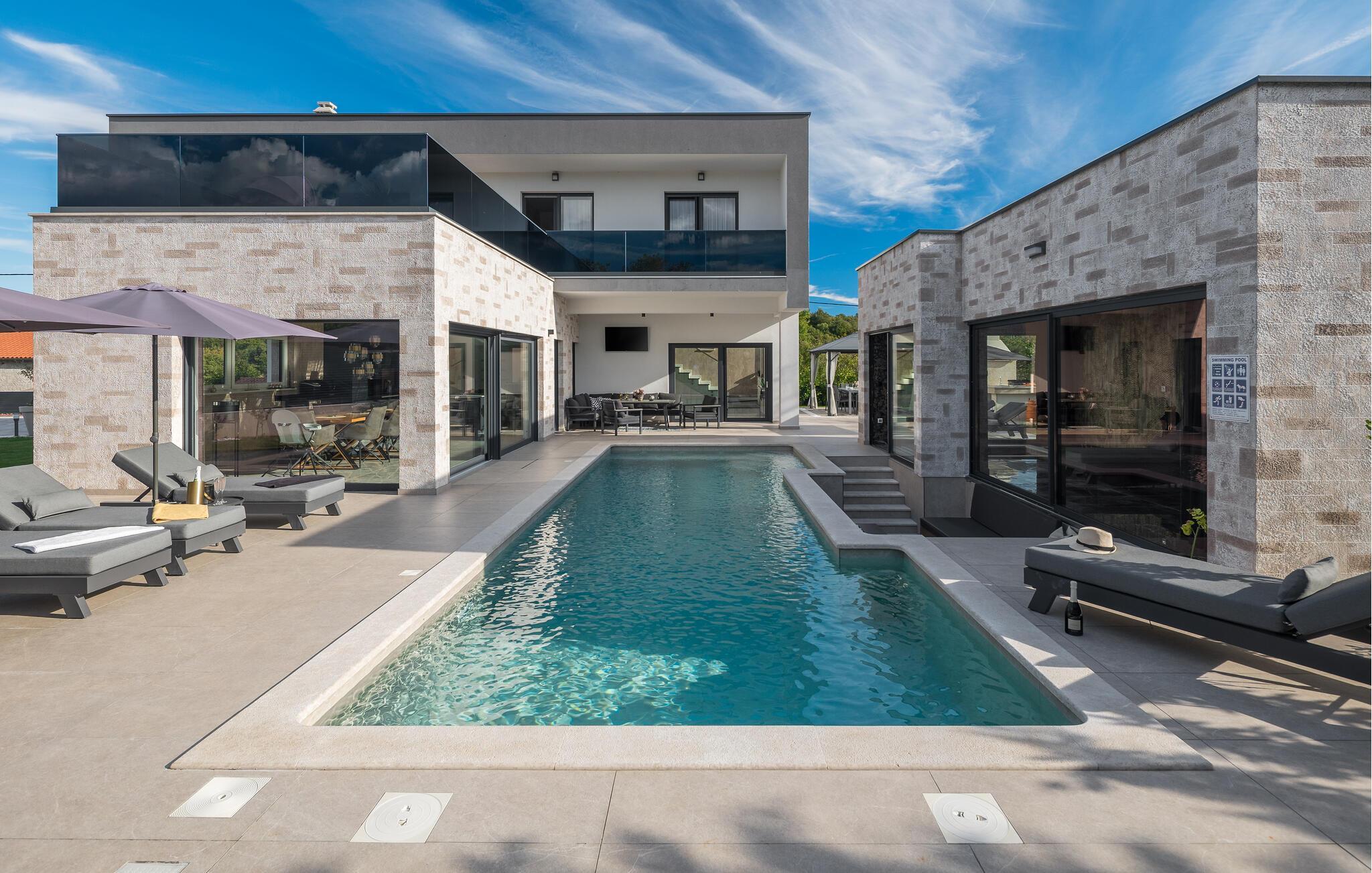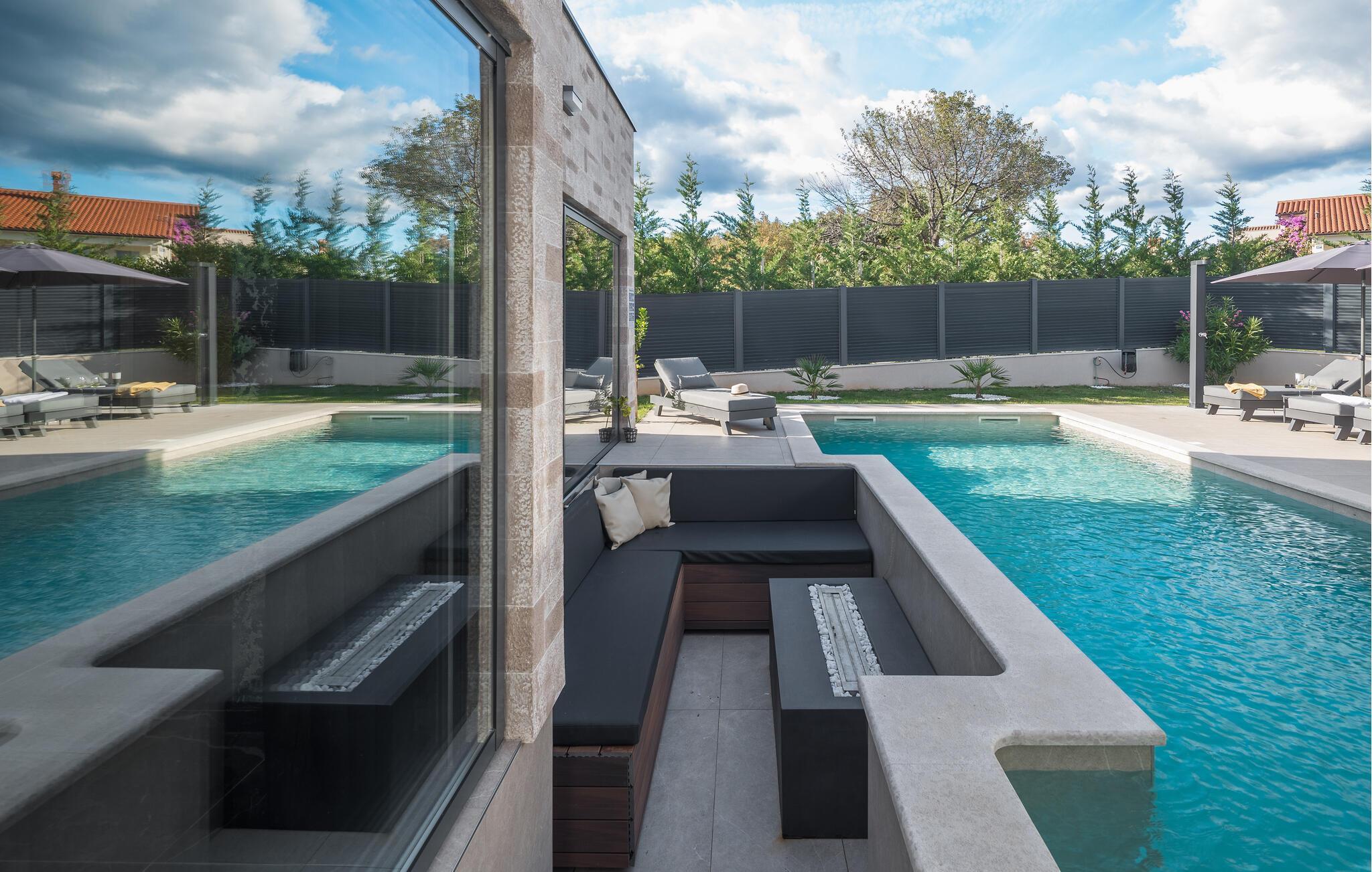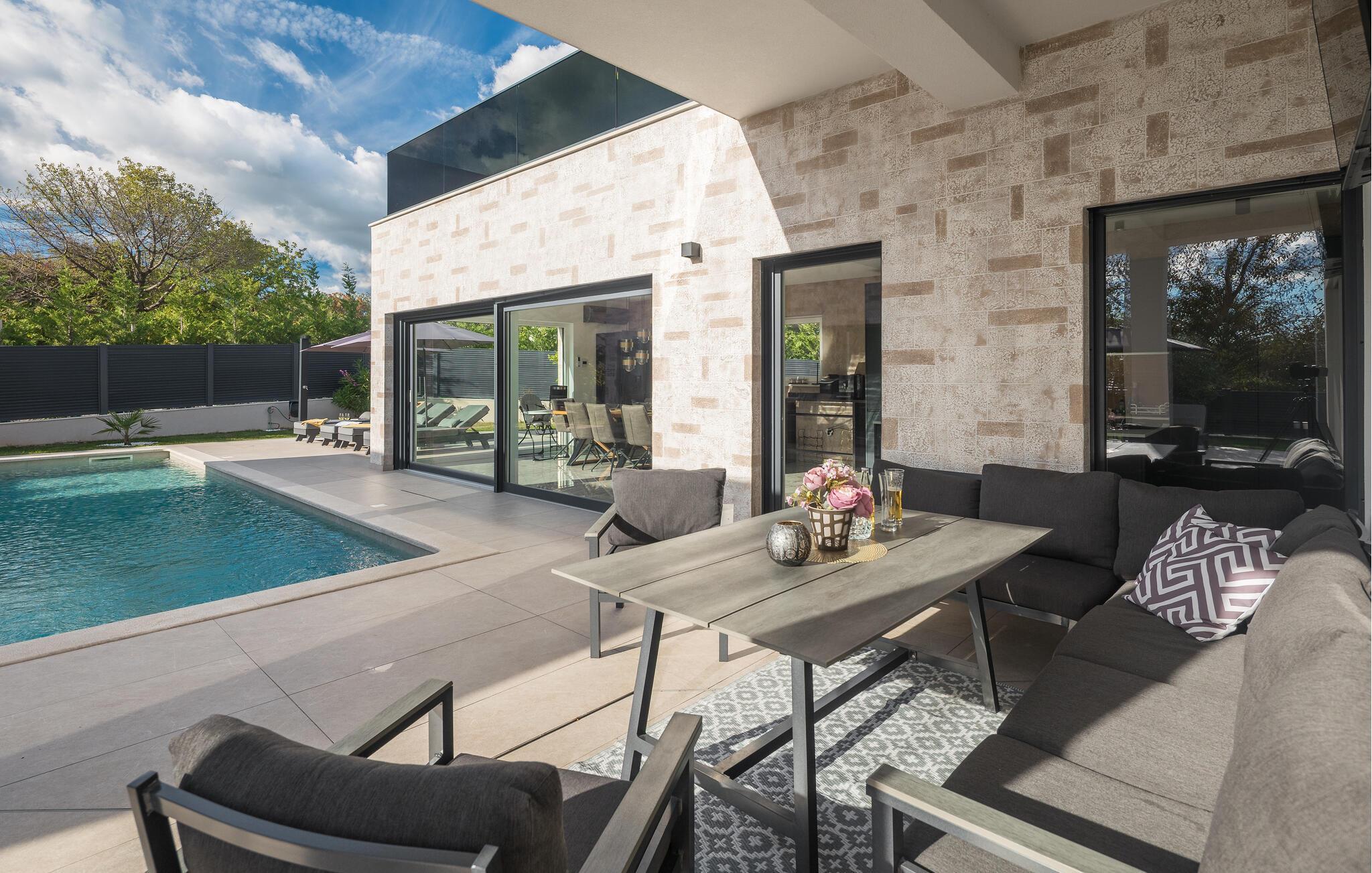 Treten Sie hinaus und lassen Sie sich von den vielen Annehmlichkeiten des stilvollen Außenbereichs begeistern. Tauchen Sie in den erfrischenden Pool ein oder entspannen Sie auf den Sonnenliegen, genießen Sie einen Sundowner im überdachten Lounge-Bereich und veranstalten Sie stimmungsvolle Grillabende.