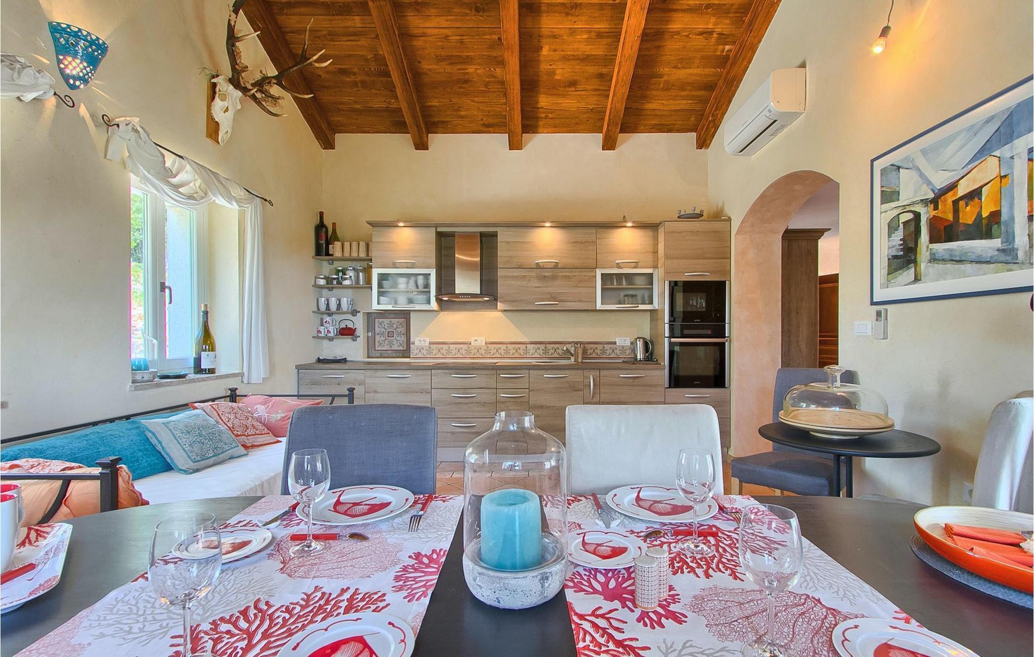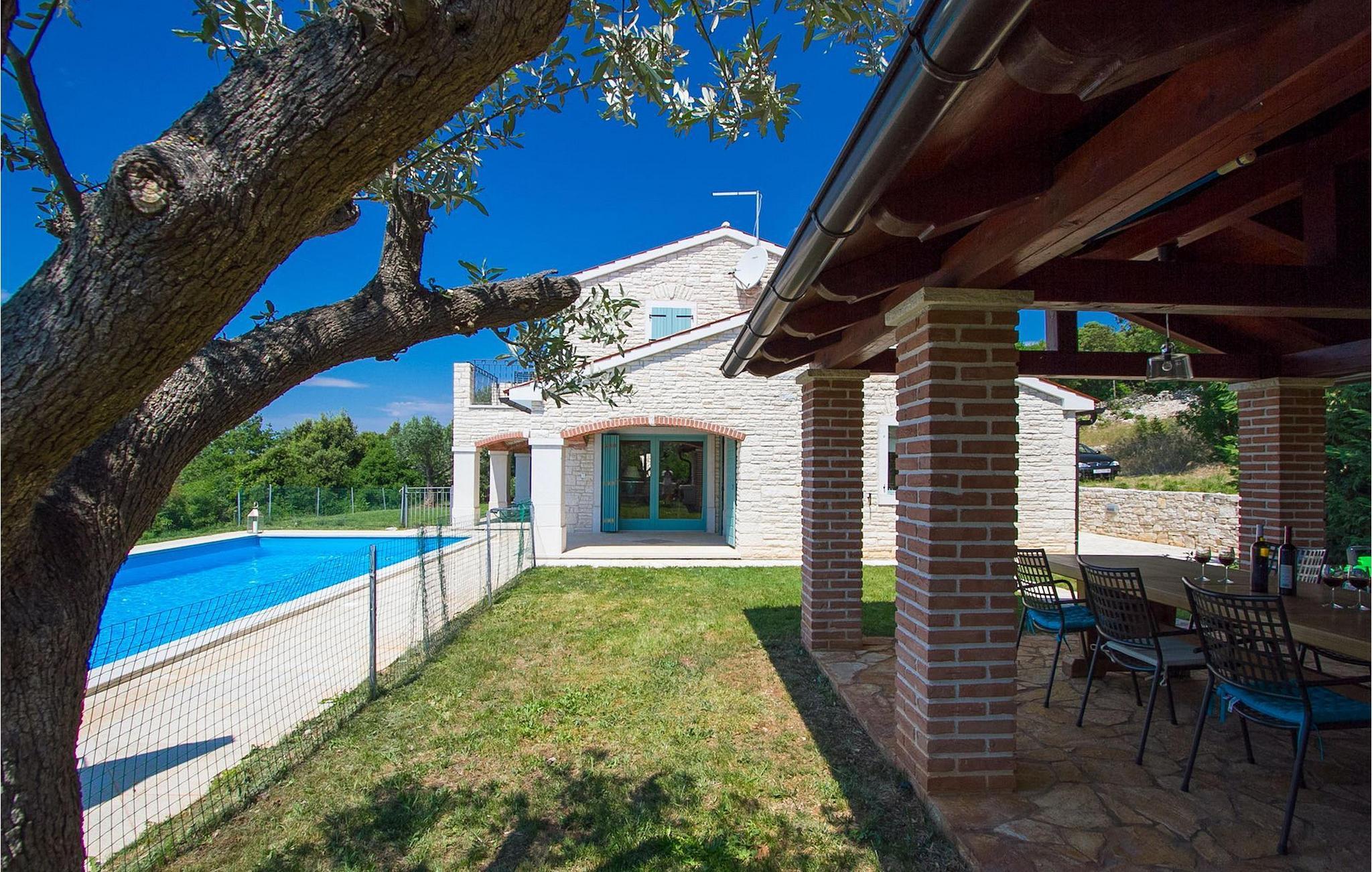 Die Villa Tanais ist eine wunderschöne Steinvilla im grün Ostistriens, und dennoch in der Nähe des Meeres. Die Villa verfügt über einen privaten Pool und einen überdachten Essbereich mit Grill, in dem Sie warme Sommerabende mit Ihrer Familie und Freunden verbringen können. Im Erdgeschoss befinden sich ein wunderschön eingerichtetes Wohnzimmer, eine moderne und voll ausgestattete Küche, ein Esszimmer und ein Badezimmer. Das komfortable und charmant eingerichtetes Doppelbettzimmer mit privatem Badezimmer befindet sich im Erdgeschoss und hat einen direkten Zugang zum Garten der Villa. Im ersten Stock der Villa befinden sich 3 weitere Schlafzimmer, von denen zwei über ein Doppelbett mit eigenem Bad verfügen. Ein Zimmer verfügt über ein Etagenbett das ideal für Kinder ist. Im ersten Stock befindet sich auch eine kleine Terrasse, auf der Sie Ihren Tag mit einer Tasse Kaffee oder Tee beginnen können. Im Garten der Villa können Sie sich entspannen, sich im Pool erfrischen, die Sonne genießen oder vielleicht sogar ein Picknick auf dem Rasen machen können. In jedem Fall ist die Villa Tanais der ideale Ort für Sie und ihre Familie.Viskovici ist ein kleines Dorf im östlichen Teil Istriens, befindet sich nur eine kurze Autofahrt vom Meer entfernt. Es ist der perfekte Ausgangspunkt für Tagesausflüge zu den berühmten Städten Rabac, Pula und Opatija.
