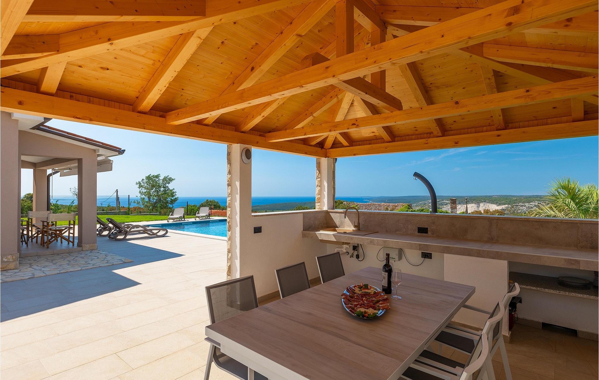 Villa Bay View ist eine moderne Villa, die mit ihren sorgfältig ausgewählten Möbeln und ihrer Geräumigkeit zum Entspannen und Erholen einlädt. Während Sie morgens auf der Terrasse einen Kaffee trinken, können Sie von der Terrasse aus den herrlichen Panoramablick genießen, der bis zum Meer reicht. Während Sie die Aussicht genießen, können Ihre Liebsten der Sommerhitze im Pool entfliehen oder auf den Liegestühlen am Pool ausruhen. Auf dem äußeren Teil der überdachten Terrasse gibt es einen Außentisch und einen Grill, der zur Zubereitung istrischer Köstlichkeiten einlädt. Die Villa ist von einem schönen grünen Rasen umgeben, der zusammen mit dem Panoramablick auf das Meer ein einzigartiges Naturerlebnis bietet. Vom Außenbereich gelangen Sie in das Innere der Villa, wo Sie sofort ein modernes Wohnzimmer mit voll ausgestatteter Küche und Esszimmer, 2 komfortable Schlafzimmer und 2 Badezimmer finden werden. Im Inneren sind die Wohnungen nicht durch ein Treppenhaus verbunden, sondern man betritt die Wohnung von außen, und die Etagen, auf denen sich die Eingänge befinden, sind nur wenige Schritte entfernt.Im ersten Stock der Villa gibt es ein zusätzliches Wohnzimmer, das den Raum mit seinem Design einzigartig macht, ein Esszimmer und eine moderne Küche, 2 Schlafzimmer mit eigenem Bad und eine Toilette. Buchen Sie Bay View Villa und sichern Sie sich Ihren Traumurlaub!