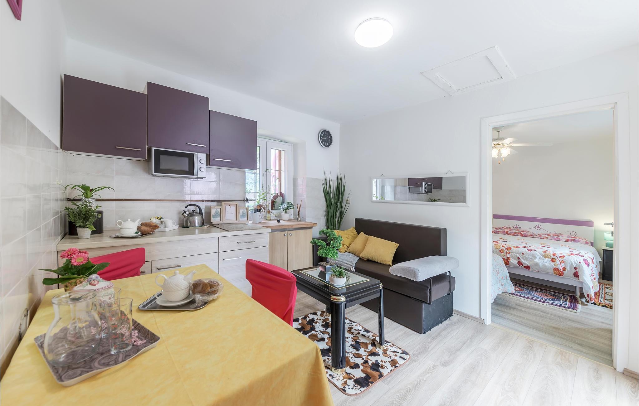 Das Haus ist umgeben von Natur und liegt an einem ruhigen Ort, abseits von Stadtlärm und Stress. Im Inneren des Hauses erwartet Sie eine einfache Einrichtung und die Wohnküche und ein Badezimmer sind über einen separaten Eingang zu erreichen.