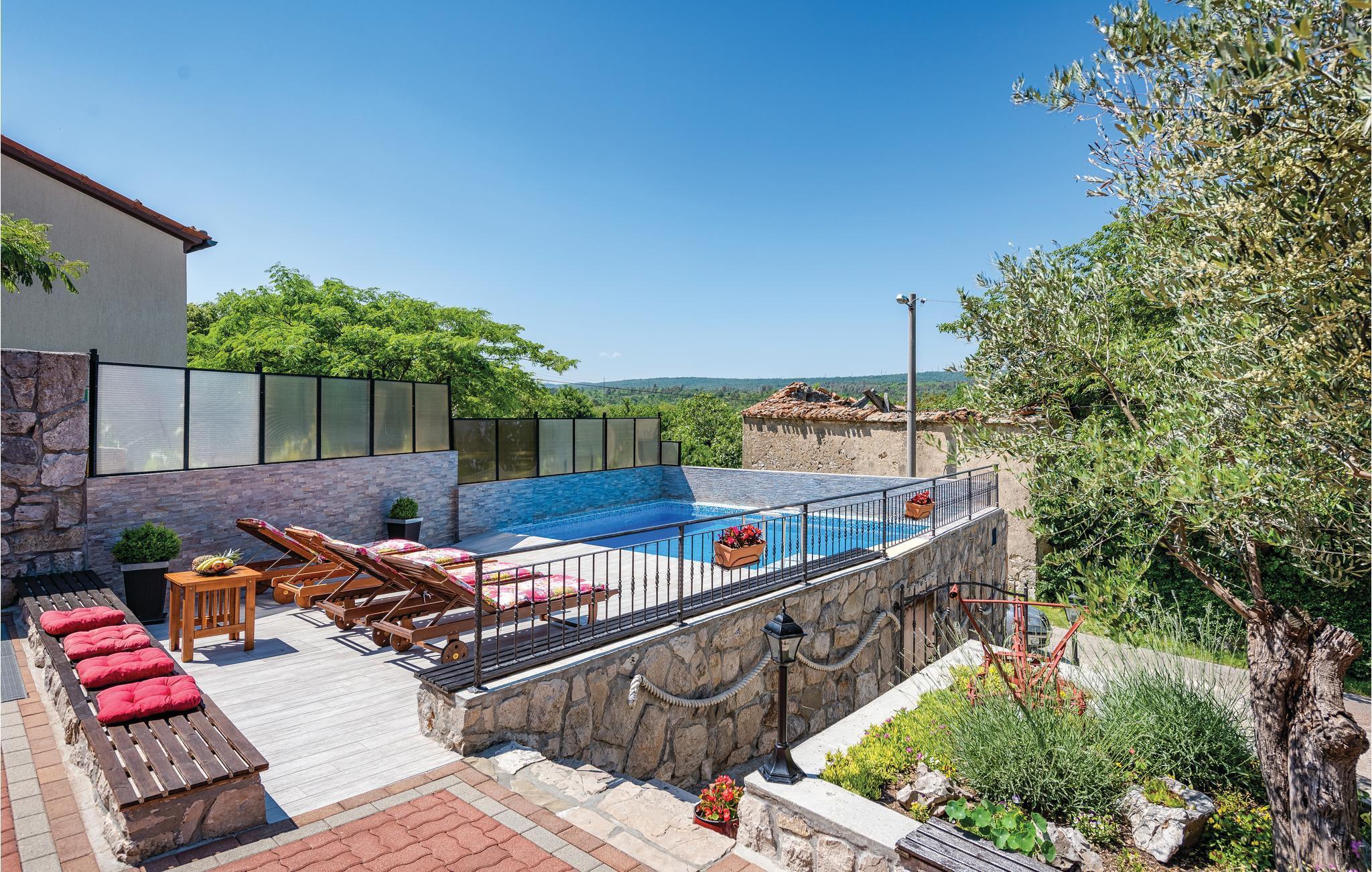 Umgeben von hügeliger Landschaft, in einem kleinen Dorf, liegt dieses schöne istrische Ferienhaus. Es wurde liebevoll renoviert, wobei der ursprüngliche Charme und die traditionelle Bauweise erhalten sind. Auf dem Grundstück stehen Ihnen ein einladender Pool sowie eine großzügige Terrasse zur Verfügung. In der näheren Umgebung können Sie ausgiebig wandern, und in etwa einer halben Stunde Autofahrt erreichen Sie Rabac mit wunderschönen Stränden und kristallklarem Meerwasser. Fahren Sie in die Altstadt von Labin und besichtigen Sie die vielen kleinen Kunstgalerien. Die Ausstattung ist modern, und die niedrigste Deckenhöhe im Obergeschoss beträgt etwa 100 cm. Das etwa 10.000 m² große Grundstück, ist durch einen kleinen Weg vom Haus getrennt.