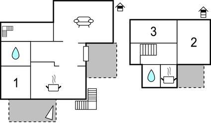 Badezimmer (nr. 2) - WC. Warmes und kaltes Wasser. Dusche