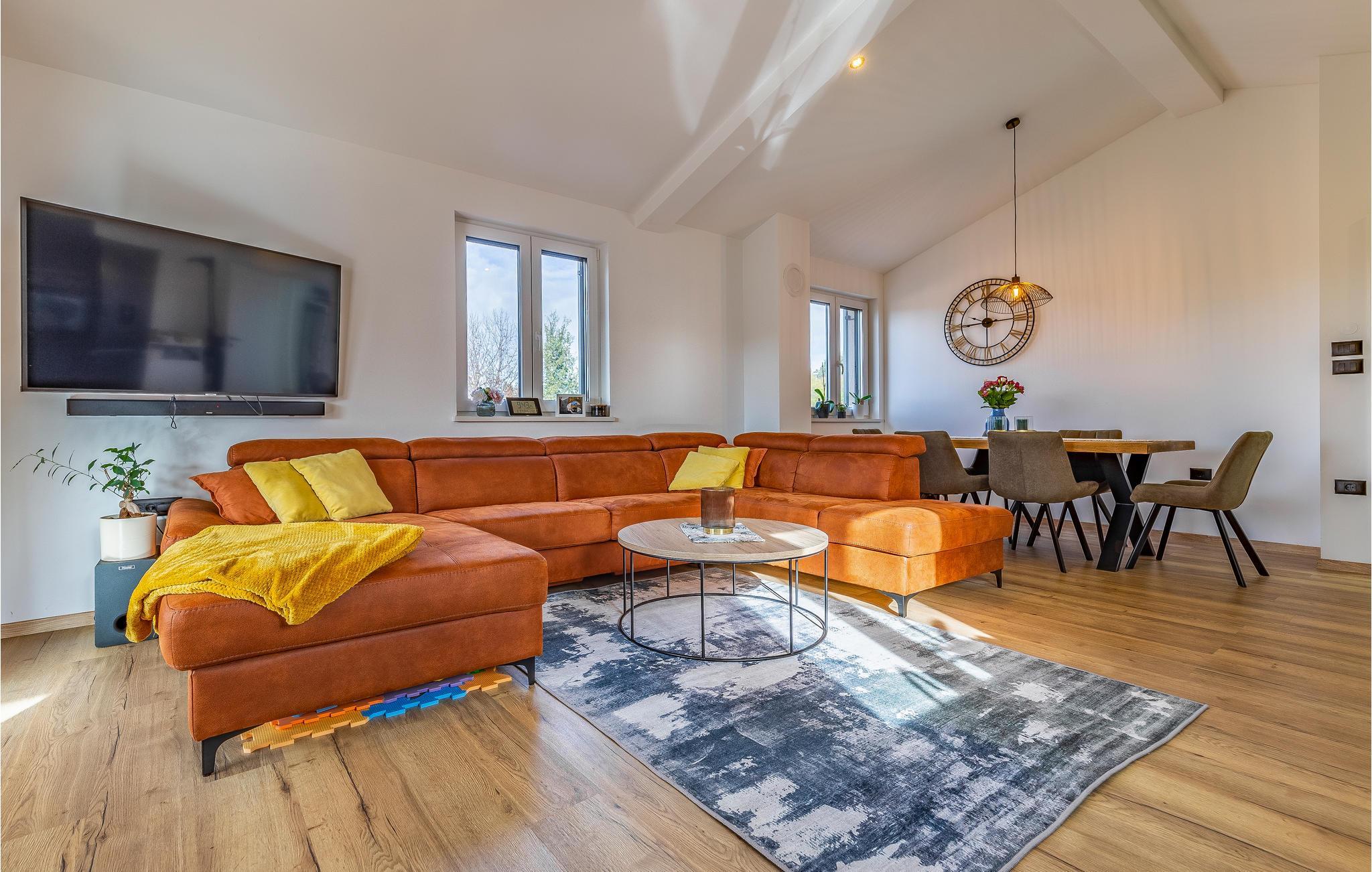 Reisen Sie mit Ihrer Familie nach Snasici und verbringen einen erholsamen Urlaub in dieser komfortablen Unterkunft. Freuen Sie sich auf Privatsphäre sowie viel Zeit miteinander. Komfort und Design werden hier großgeschrieben und Sie können sich auf den hochwertigen Möbeln entspannen oder in der modernen Küche leckere Gerichte zaubern. Hier fehlt es Ihnen an nichts, was sich auch auf den Terrassen und im Garten mit Swimmingpool fortführt. Baden und spielen Sie viele Stunden im Freien und schmieden bei Abendessen, unter dem Pavillon, Ihre Ausflüge und Aktivitäten.