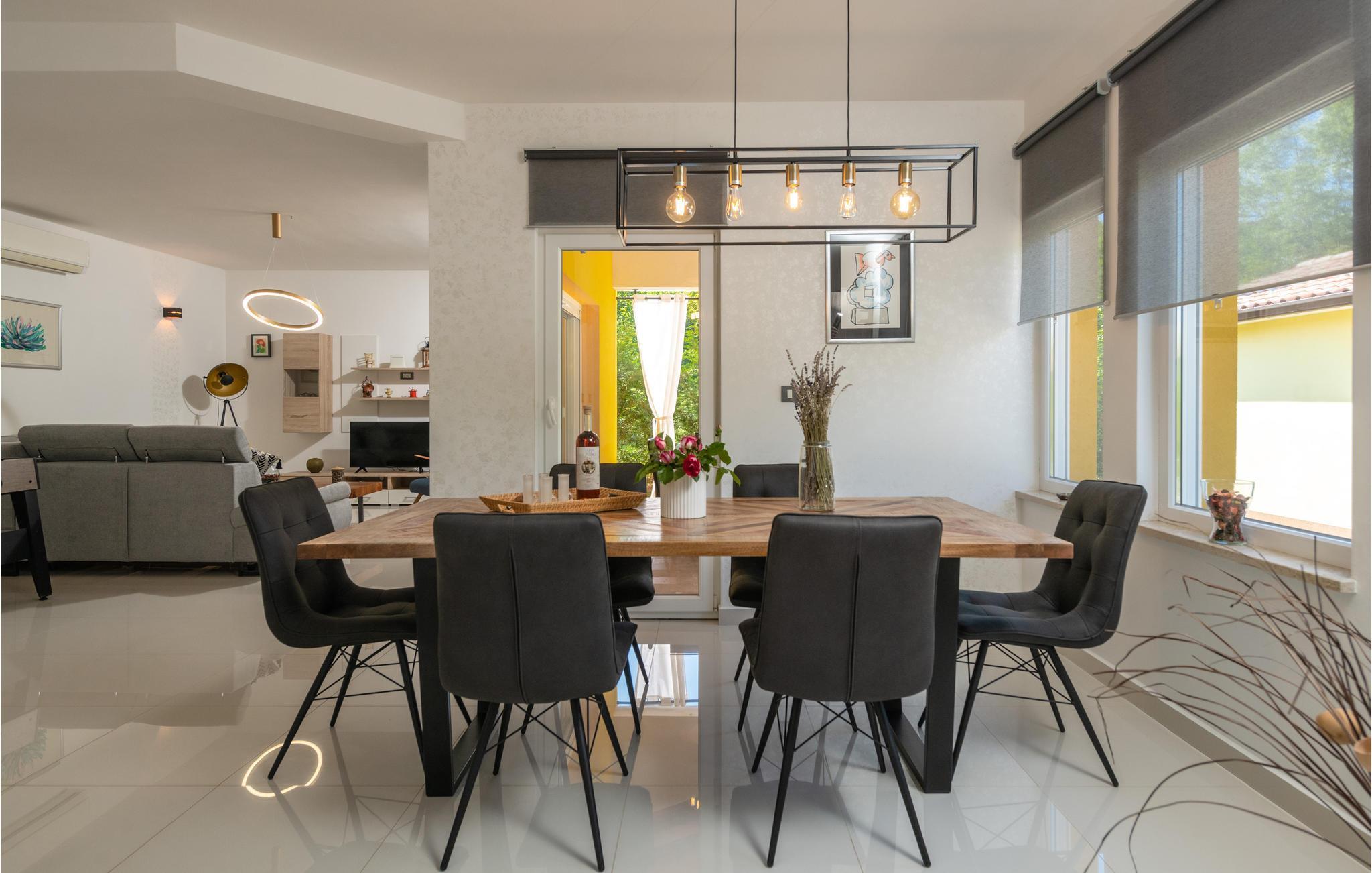 Die ruhige Umgebung und eine schöne Natur lassen Sie Ihre Ferien in diesem Poolhaus richtig genießen. Hier finden Sie den gesuchten Komfort fernab vom Alltagsstress. Lediglich 15 Autominuten sind es nach Rabac und einem schönen Kieselstrand am kristallklaren Meer. Entspannen Sie am Pool, auf der überdachten Terrasse genießen Sie im Schatten ein erfrischendes Getränk. Nutzen Sie die Fahrräder die Ihnen zur Verfügung stehen und gehen Sie auf Entdeckung. In der Nähe befindet sich ein Restaurant, in dem Sie die Spezialitäten der Region kosten können. Während des Aufenthaltes sind ein Besuch in Labin sowie Bootsausflüge zu den umliegenden Inseln empfehlenswert.