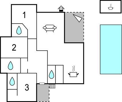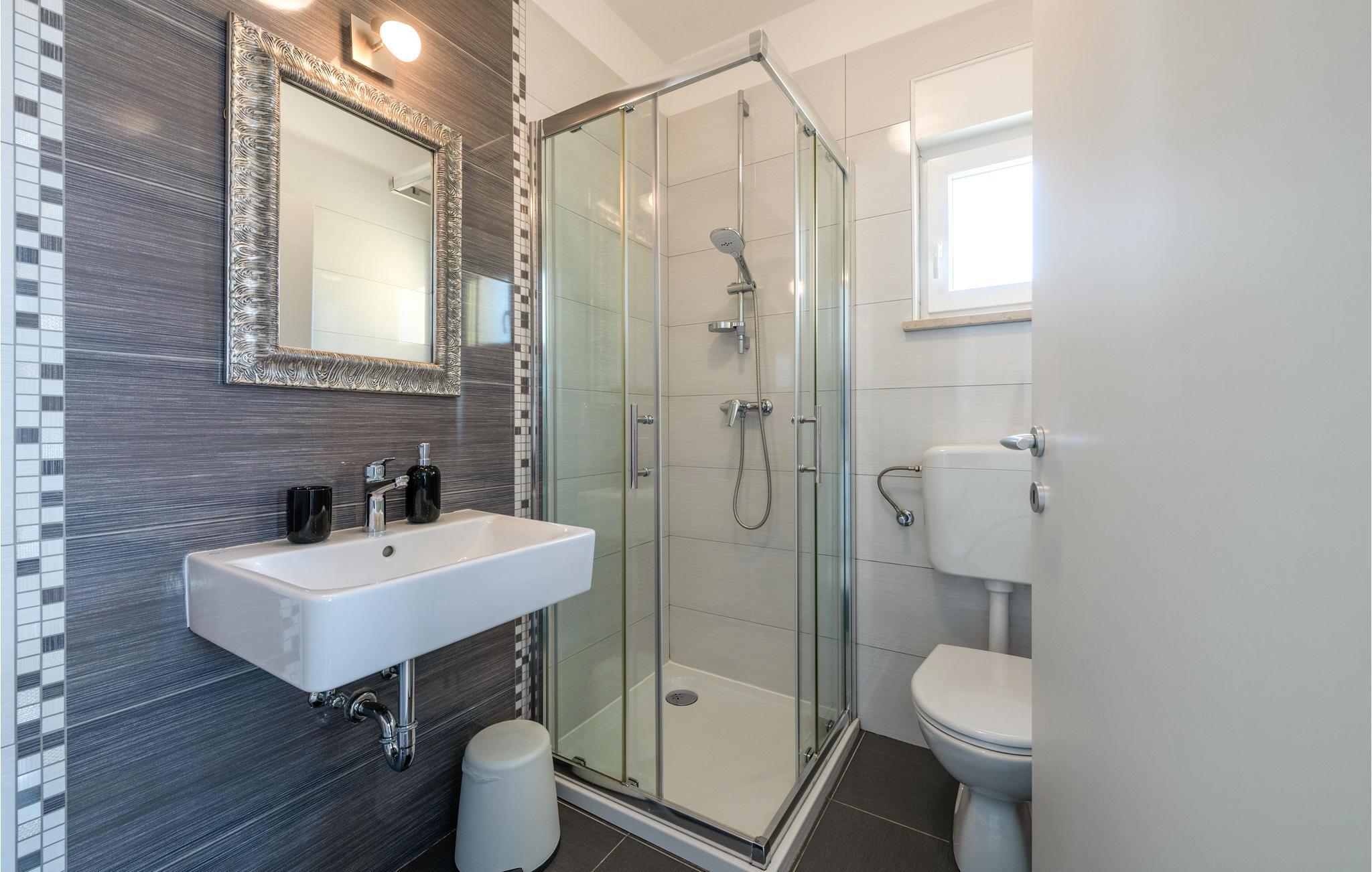 Badezimmer (nr. 3) - WC. Warmes und kaltes Wasser. Dusche