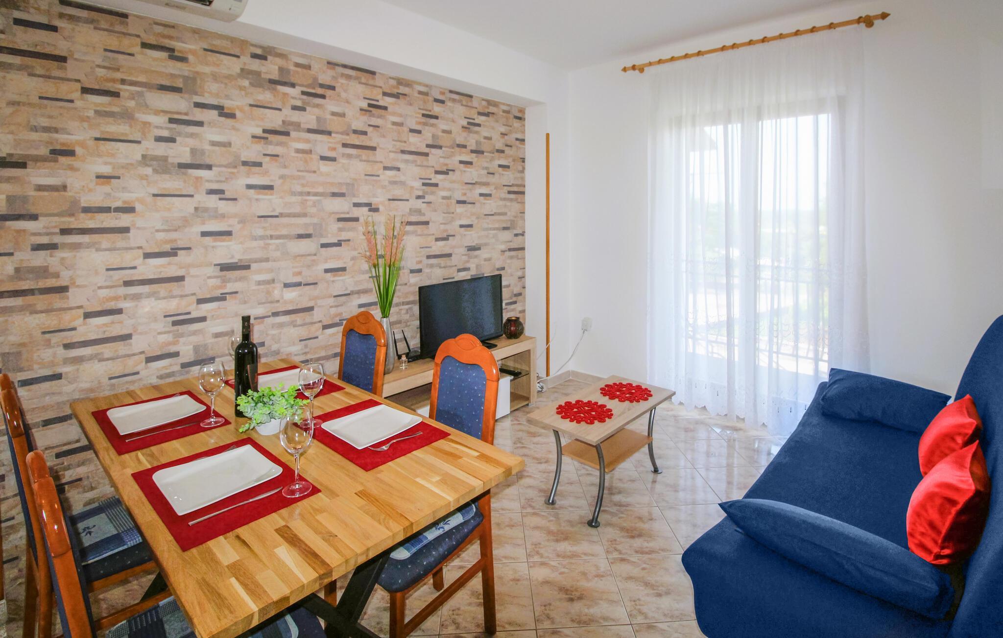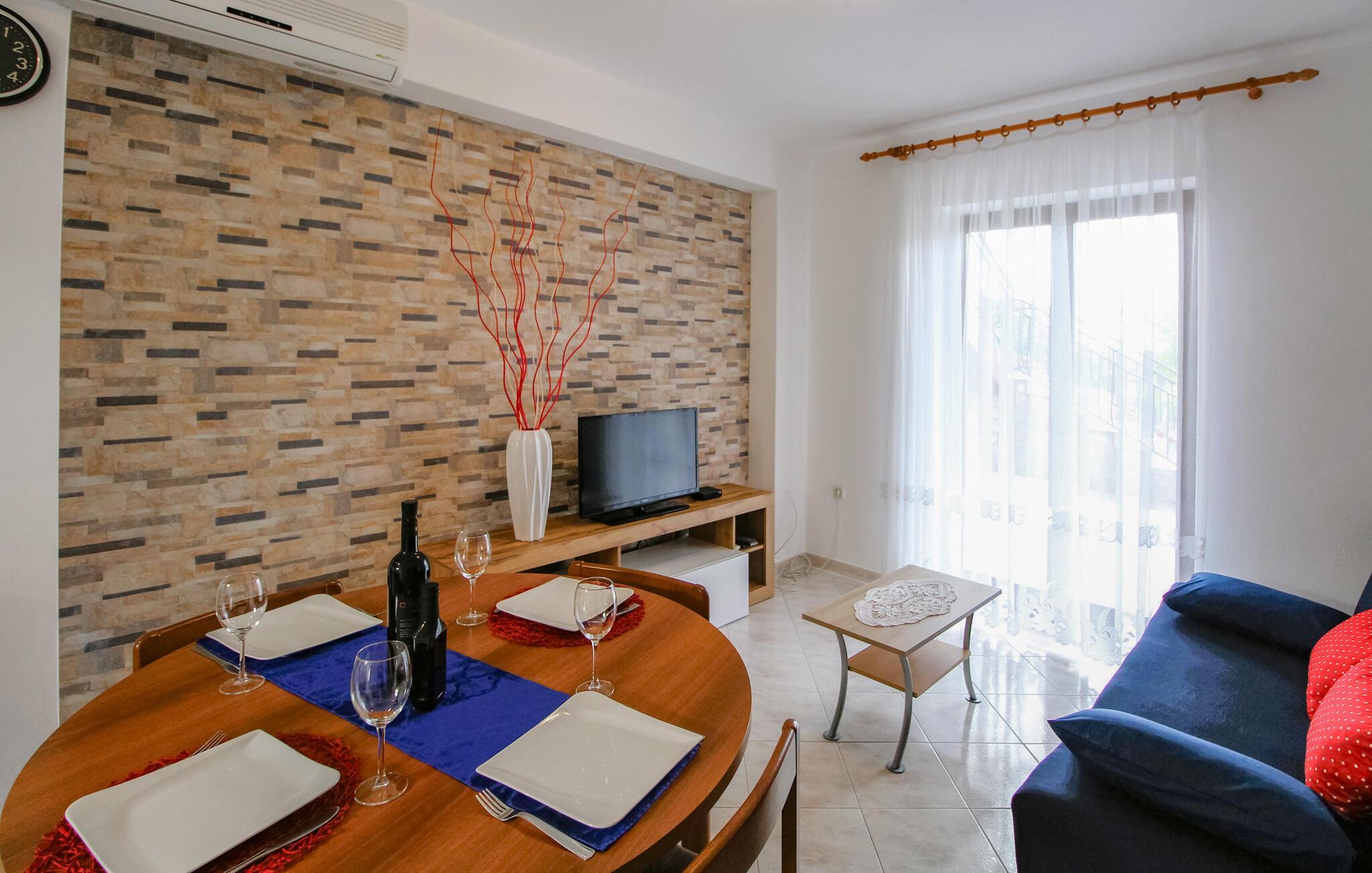 Stellen Sie sich vor, Sie genießen Ihren Urlaub in einem charmanten Ferienhaus in Strmac. Die ruhige Lage, umgeben von der malerischen Natur, verspricht Ihnen erholsame Tage. Das Haus besteht aus zwei schön eingerichteten Wohnungen, eine im Erdgeschoss und eine im ersten Stock, die durch helle, klassisch eingerichtete Innenräume bestechen.