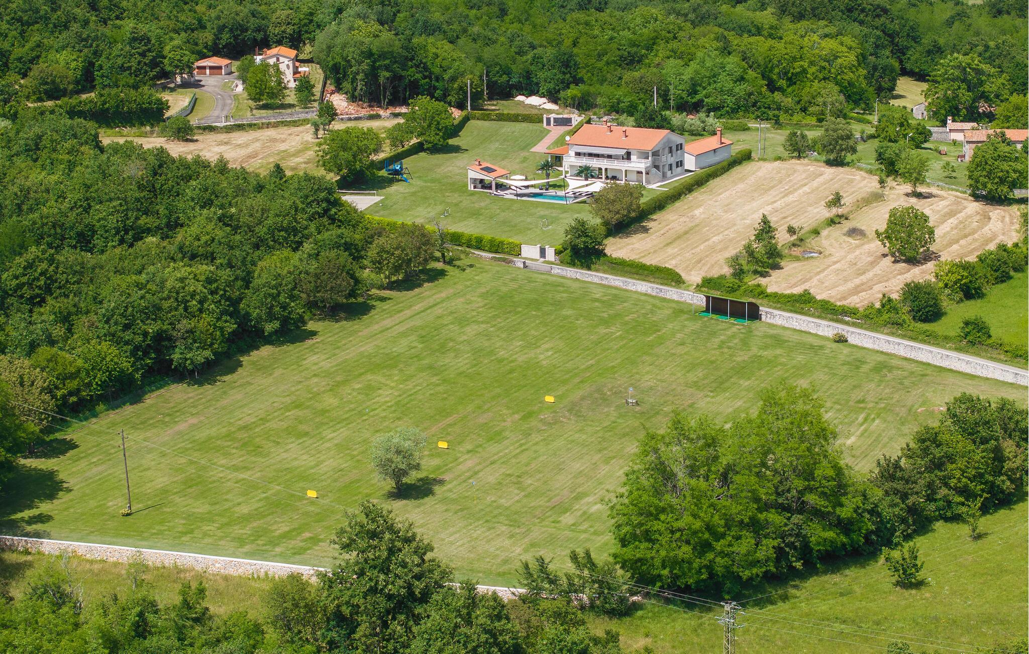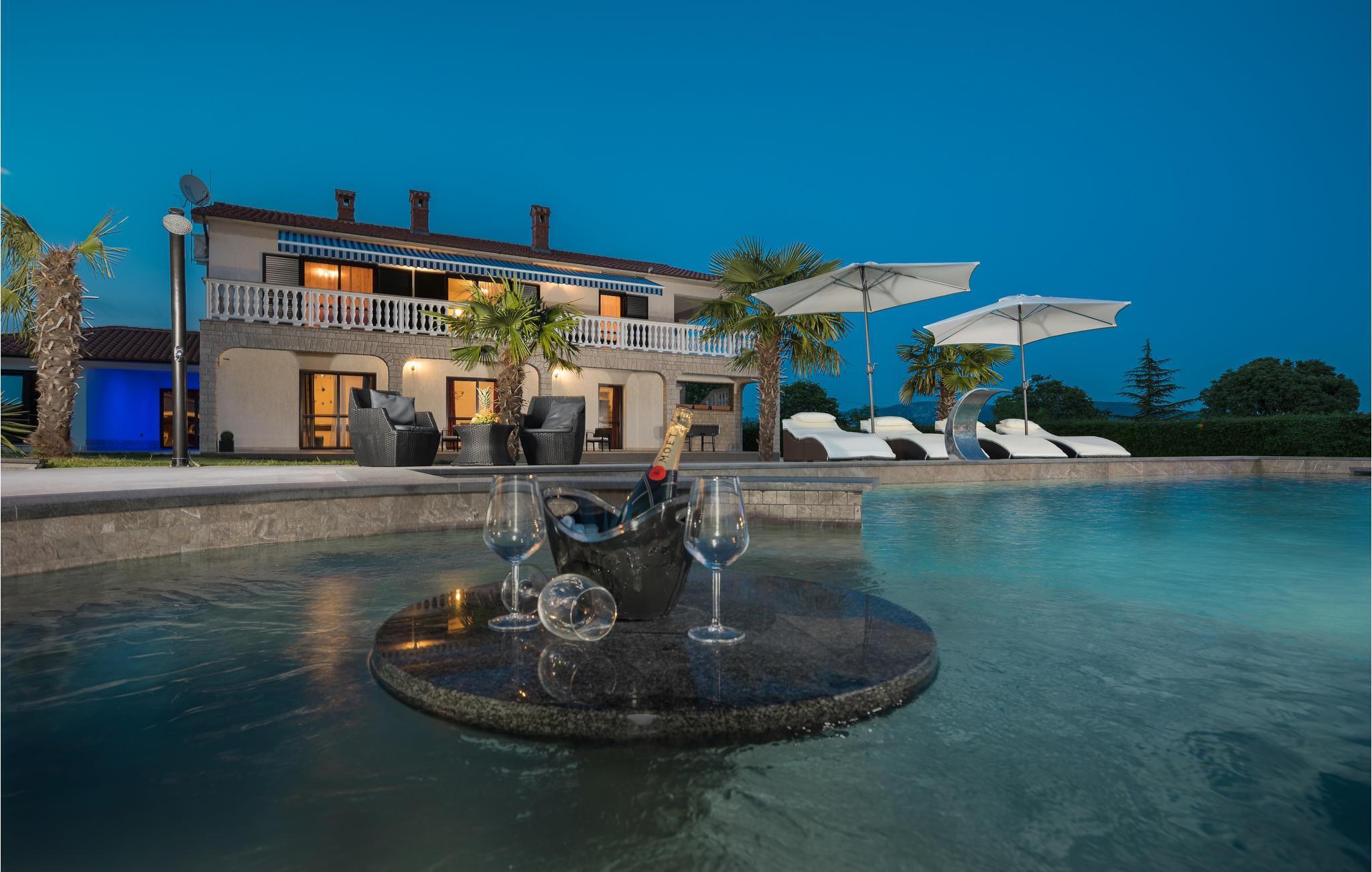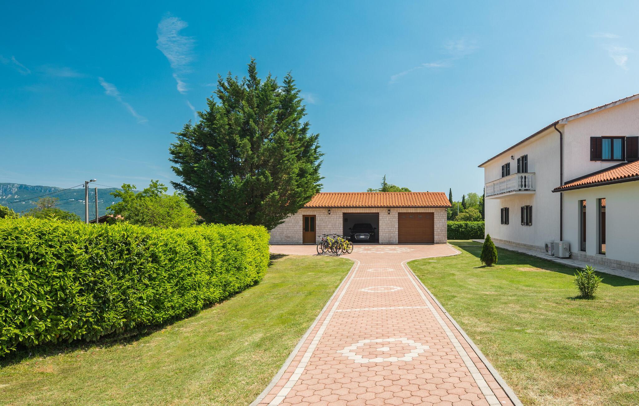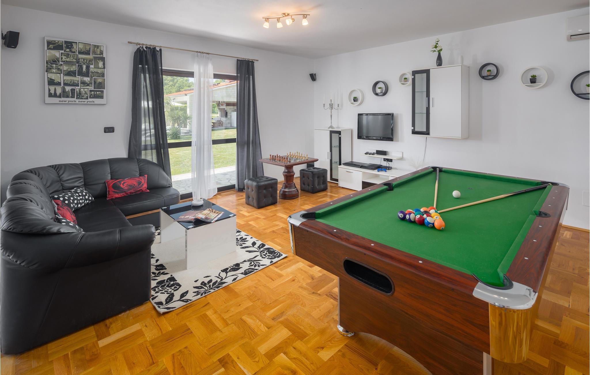 Mediterrane Atmosphäre, umfangreiche Wellnesseinrichtungen und ein beheizter Pool empfangen Sie hier. In diesem Ferienhaus haben Sie zwei komfortable Ferienwohnungen, die über Außentreppen verbunden sind. Für besonders angenehme Stunden im Freien steht ein beheizter Pool zu Verfügung. Herrlich zum Faulenzen und Entspannen im Inneren wie im Freien, denn es herrscht viel Platz. Das umgebende Grundstück ist sehr weitläufig.Genießen Sie Wellness hier mit Sternenhimmel über dem Whirlpool, Lichteffekten, Dampfbad, finnischer Sauna und Infrarotsauna sowie mit einer herrlichen Kaltwasserdusche. Sie machen in einem Ambiente Urlaub, das aus einer Mischung aus modernen und rustikalen Elementen besteht und eine ideale Urlaubsbasis für zwei gemeinsam urlaubende Familien ist. In der Nähe vom Haus liegt der bekannte Ferienort Rabac mit vielen Cafés und Souvenirläden und einer schönen Promenade. Neben dem Pool befindet sich eine Sommerküche mit Grill. Zum Aktivsein können Sie Billard, Tischtennis und Darts spielen. Es gibt auch einen Kinderspielraum. In der Nachbarschaft finden Sie Spazierwege und ein kleines Wäldchen, der Wald gehört dem Eigentümer. Eine Besonderheit sind der Golfplatz (Driving Range) mit einer Fläche von 10.000 m², drei überdachten Aufschlagplätzen zu den gesetzten Zielen weisend und die dazugehörende Golfausrüstung (Sack, Bälle, Schläger und Ständer). Die Umgebung können Sie mit vier Ihnen zur Verfügung stehenden Fahrrädern erforschen. Der Vermieter gibt Ihnen gerne Tipps, wo einheimische Produkte wie Wein, Likör und Honig zu besorgen sind.