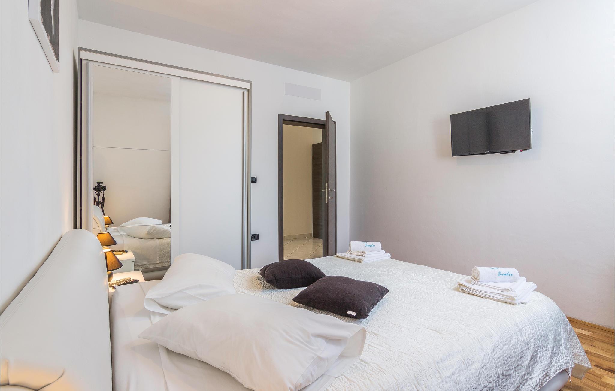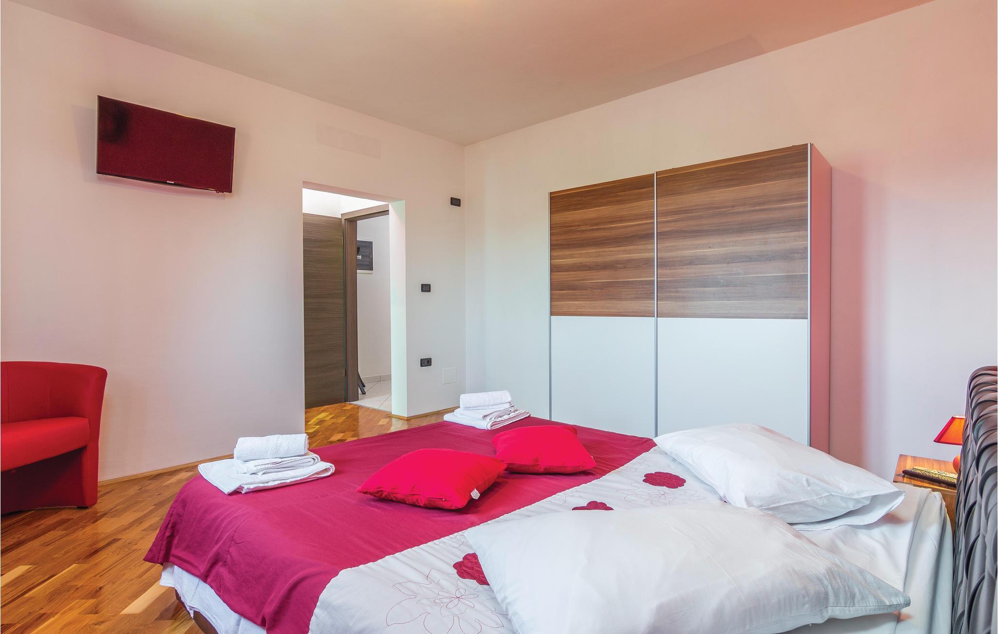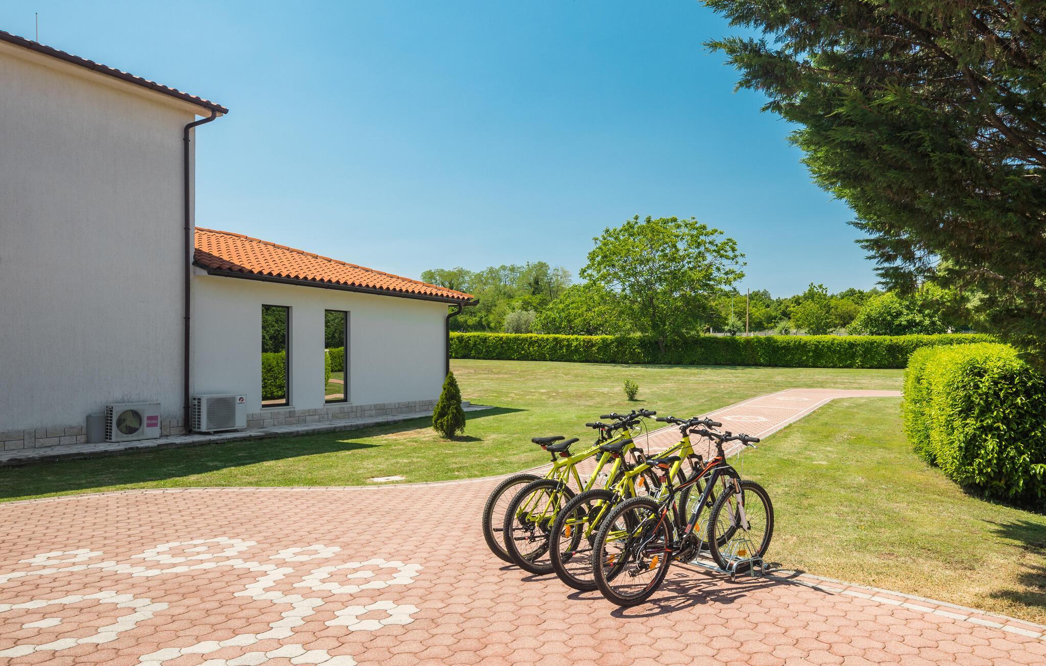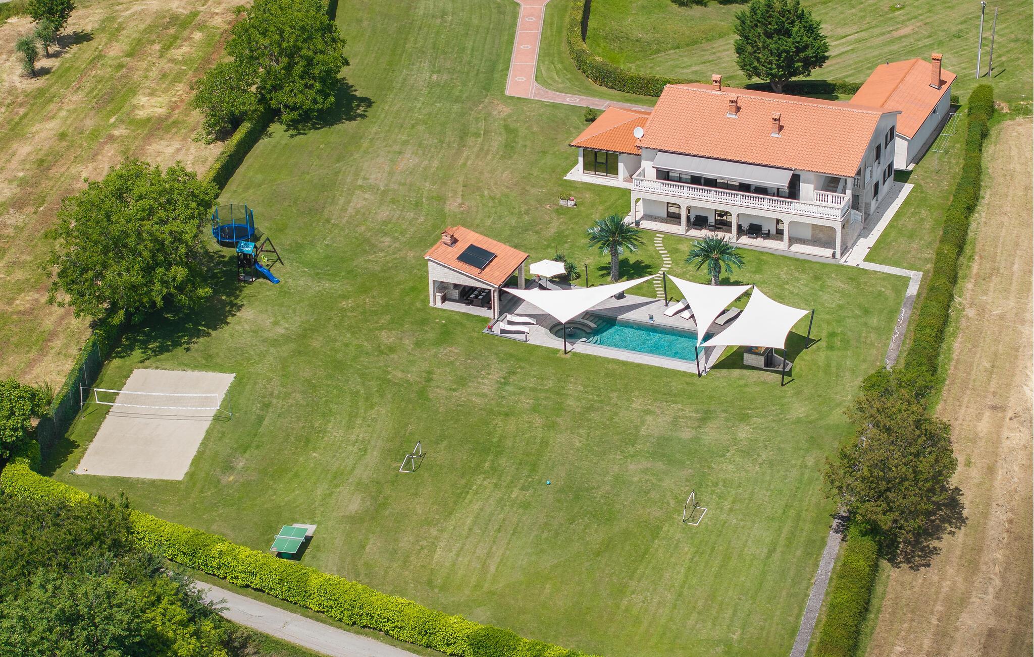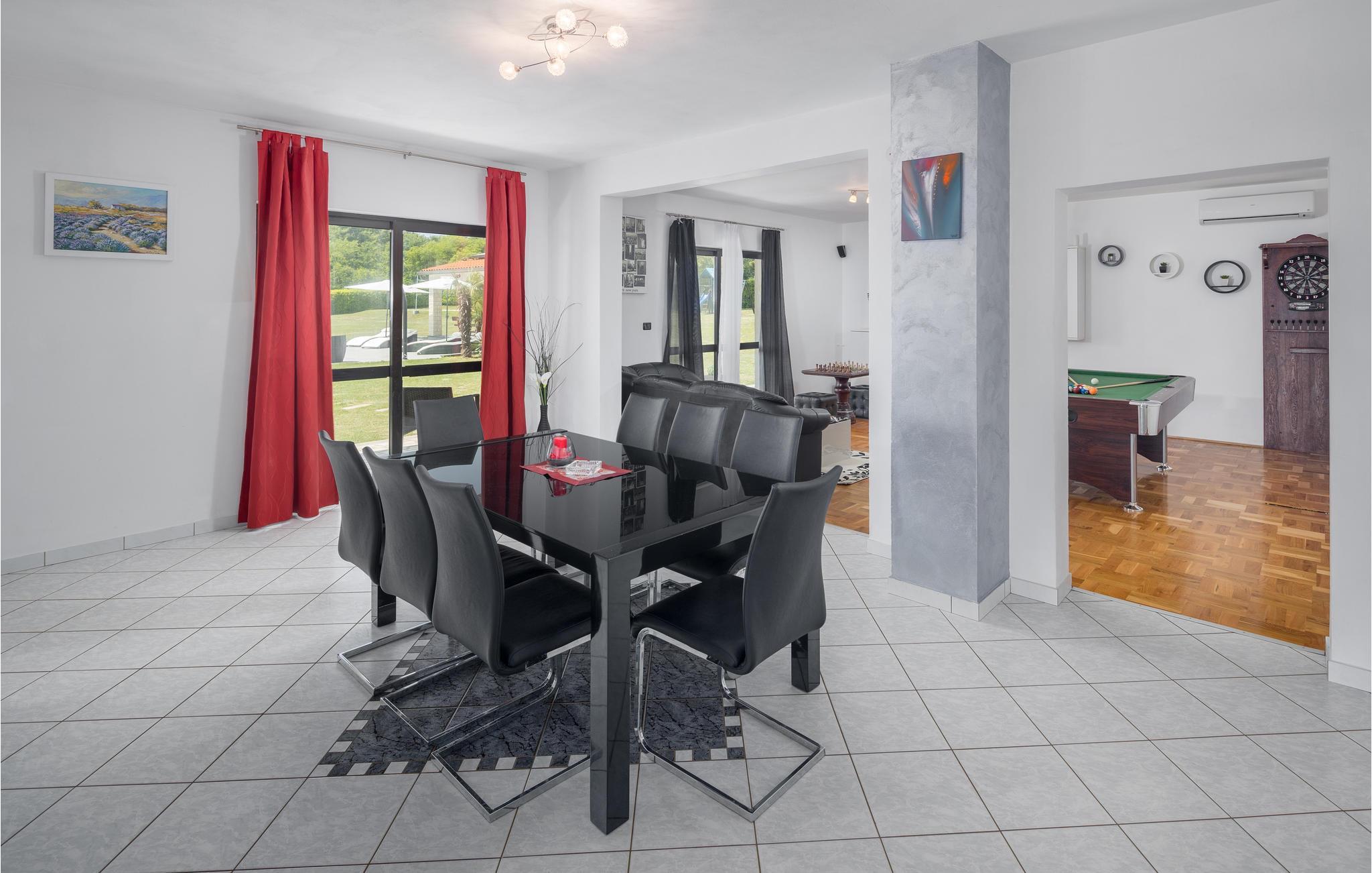 Mediterrane Atmosphäre, umfangreiche Wellnesseinrichtungen und ein beheizter Pool empfangen Sie hier. In diesem Ferienhaus haben Sie zwei komfortable Ferienwohnungen, die über Außentreppen verbunden sind. Für besonders angenehme Stunden im Freien steht ein beheizter Pool zu Verfügung. Herrlich zum Faulenzen und Entspannen im Inneren wie im Freien, denn es herrscht viel Platz. Das umgebende Grundstück ist sehr weitläufig.Genießen Sie Wellness hier mit Sternenhimmel über dem Whirlpool, Lichteffekten, Dampfbad, finnischer Sauna und Infrarotsauna sowie mit einer herrlichen Kaltwasserdusche. Sie machen in einem Ambiente Urlaub, das aus einer Mischung aus modernen und rustikalen Elementen besteht und eine ideale Urlaubsbasis für zwei gemeinsam urlaubende Familien ist. In der Nähe vom Haus liegt der bekannte Ferienort Rabac mit vielen Cafés und Souvenirläden und einer schönen Promenade. Neben dem Pool befindet sich eine Sommerküche mit Grill. Zum Aktivsein können Sie Billard, Tischtennis und Darts spielen. Es gibt auch einen Kinderspielraum. In der Nachbarschaft finden Sie Spazierwege und ein kleines Wäldchen, der Wald gehört dem Eigentümer. Eine Besonderheit sind der Golfplatz (Driving Range) mit einer Fläche von 10.000 m², drei überdachten Aufschlagplätzen zu den gesetzten Zielen weisend und die dazugehörende Golfausrüstung (Sack, Bälle, Schläger und Ständer). Die Umgebung können Sie mit vier Ihnen zur Verfügung stehenden Fahrrädern erforschen. Der Vermieter gibt Ihnen gerne Tipps, wo einheimische Produkte wie Wein, Likör und Honig zu besorgen sind.