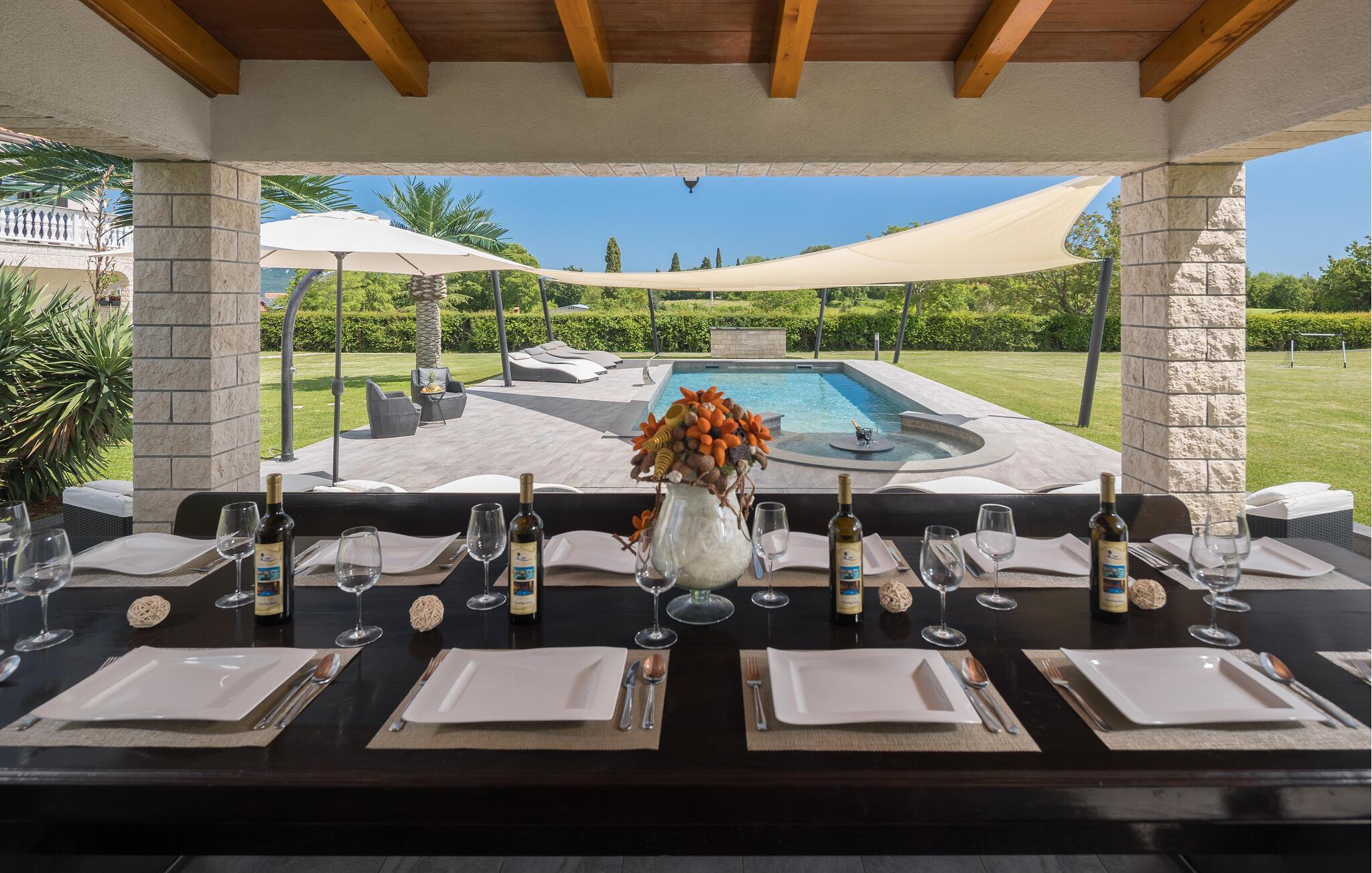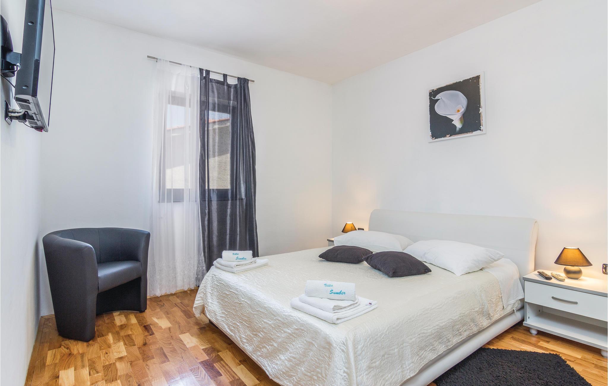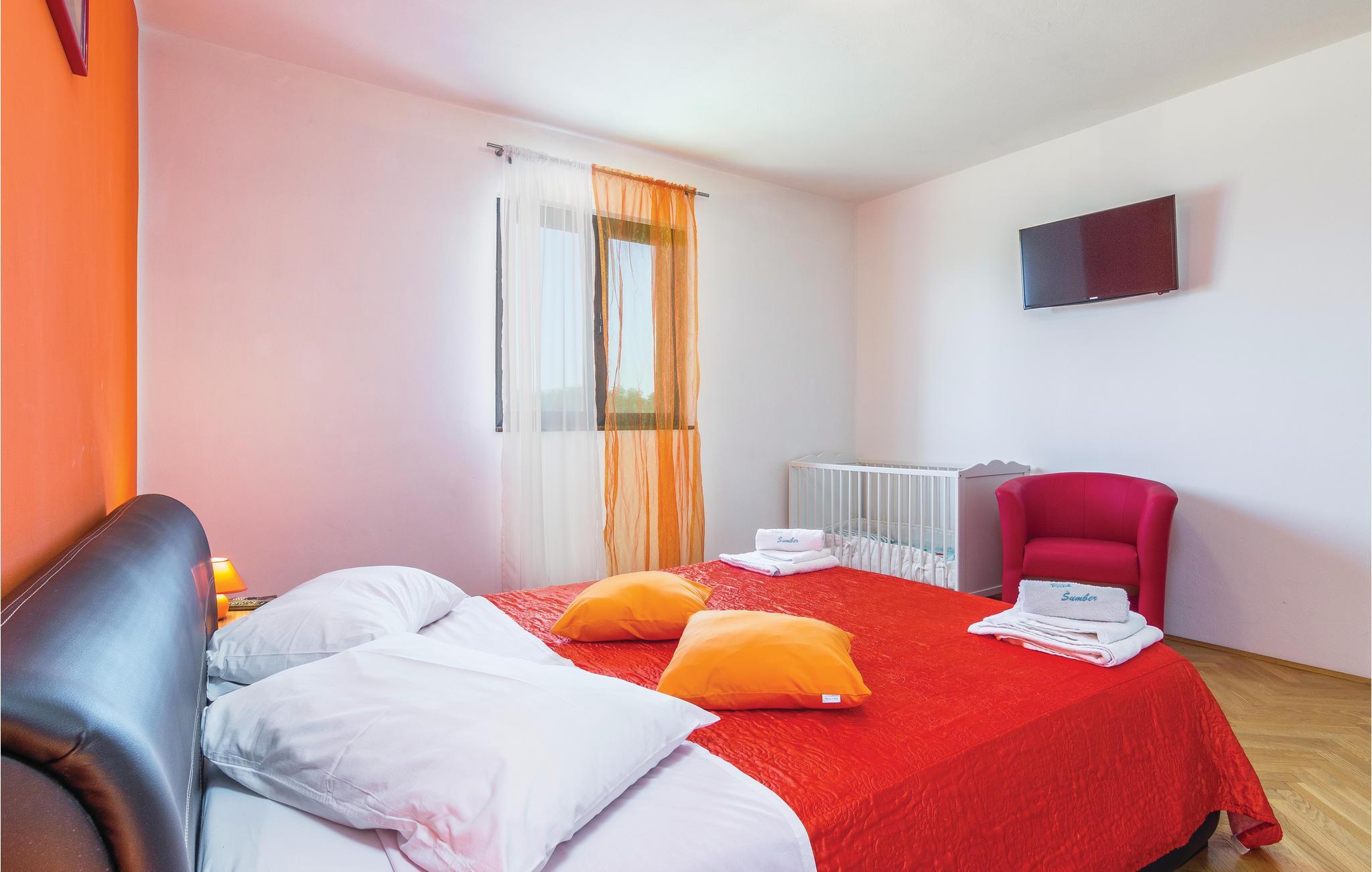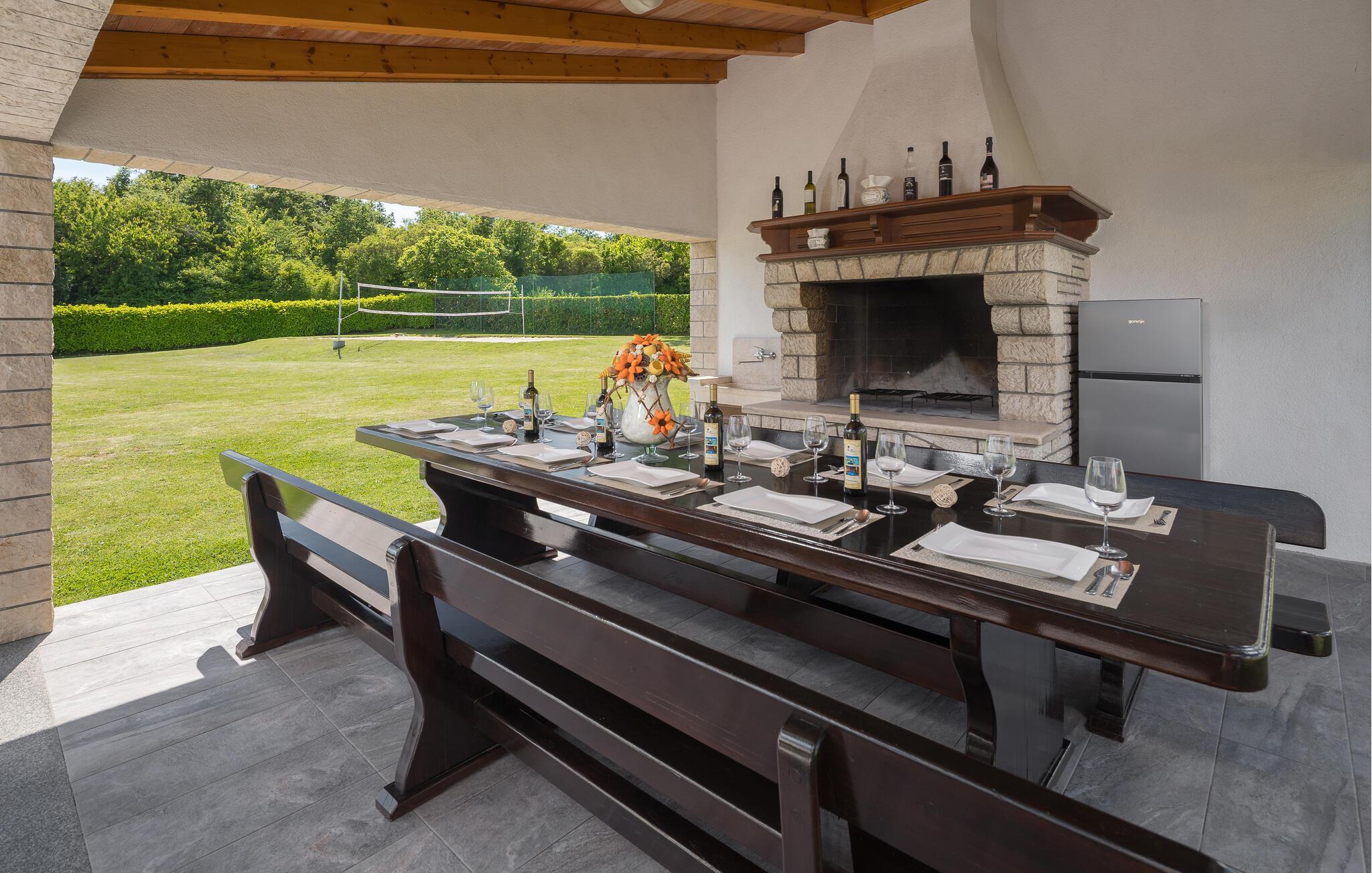 Mediterrane Atmosphäre, umfangreiche Wellnesseinrichtungen und ein beheizter Pool empfangen Sie hier. In diesem Ferienhaus haben Sie zwei komfortable Ferienwohnungen, die über Außentreppen verbunden sind. Für besonders angenehme Stunden im Freien steht ein beheizter Pool zu Verfügung. Herrlich zum Faulenzen und Entspannen im Inneren wie im Freien, denn es herrscht viel Platz. Das umgebende Grundstück ist sehr weitläufig.Genießen Sie Wellness hier mit Sternenhimmel über dem Whirlpool, Lichteffekten, Dampfbad, finnischer Sauna und Infrarotsauna sowie mit einer herrlichen Kaltwasserdusche. Sie machen in einem Ambiente Urlaub, das aus einer Mischung aus modernen und rustikalen Elementen besteht und eine ideale Urlaubsbasis für zwei gemeinsam urlaubende Familien ist. In der Nähe vom Haus liegt der bekannte Ferienort Rabac mit vielen Cafés und Souvenirläden und einer schönen Promenade. Neben dem Pool befindet sich eine Sommerküche mit Grill. Zum Aktivsein können Sie Billard, Tischtennis und Darts spielen. Es gibt auch einen Kinderspielraum. In der Nachbarschaft finden Sie Spazierwege und ein kleines Wäldchen, der Wald gehört dem Eigentümer. Eine Besonderheit sind der Golfplatz (Driving Range) mit einer Fläche von 10.000 m², drei überdachten Aufschlagplätzen zu den gesetzten Zielen weisend und die dazugehörende Golfausrüstung (Sack, Bälle, Schläger und Ständer). Die Umgebung können Sie mit vier Ihnen zur Verfügung stehenden Fahrrädern erforschen. Der Vermieter gibt Ihnen gerne Tipps, wo einheimische Produkte wie Wein, Likör und Honig zu besorgen sind.