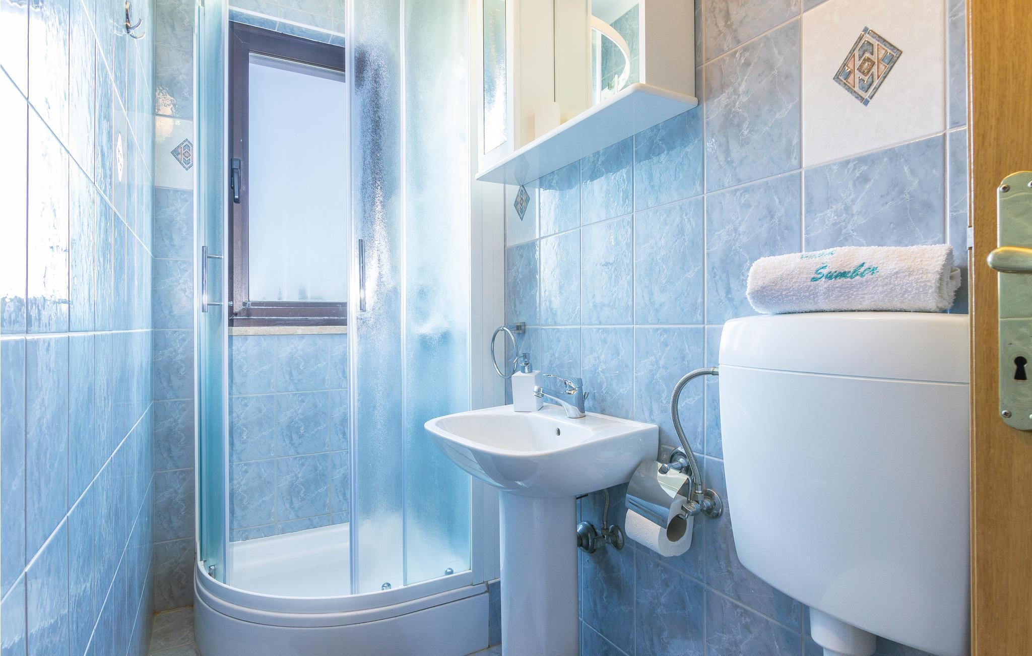 Badezimmer (nr. 2) - WC. Warmes und kaltes Wasser. Dusche