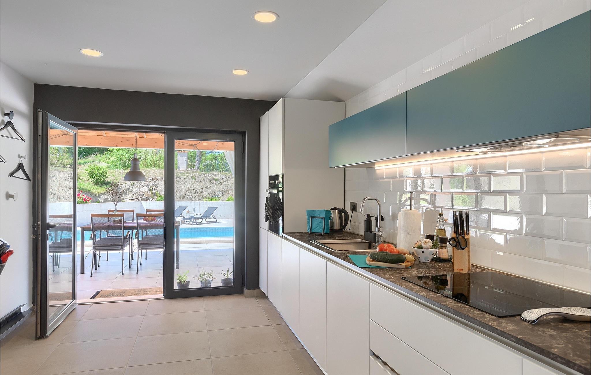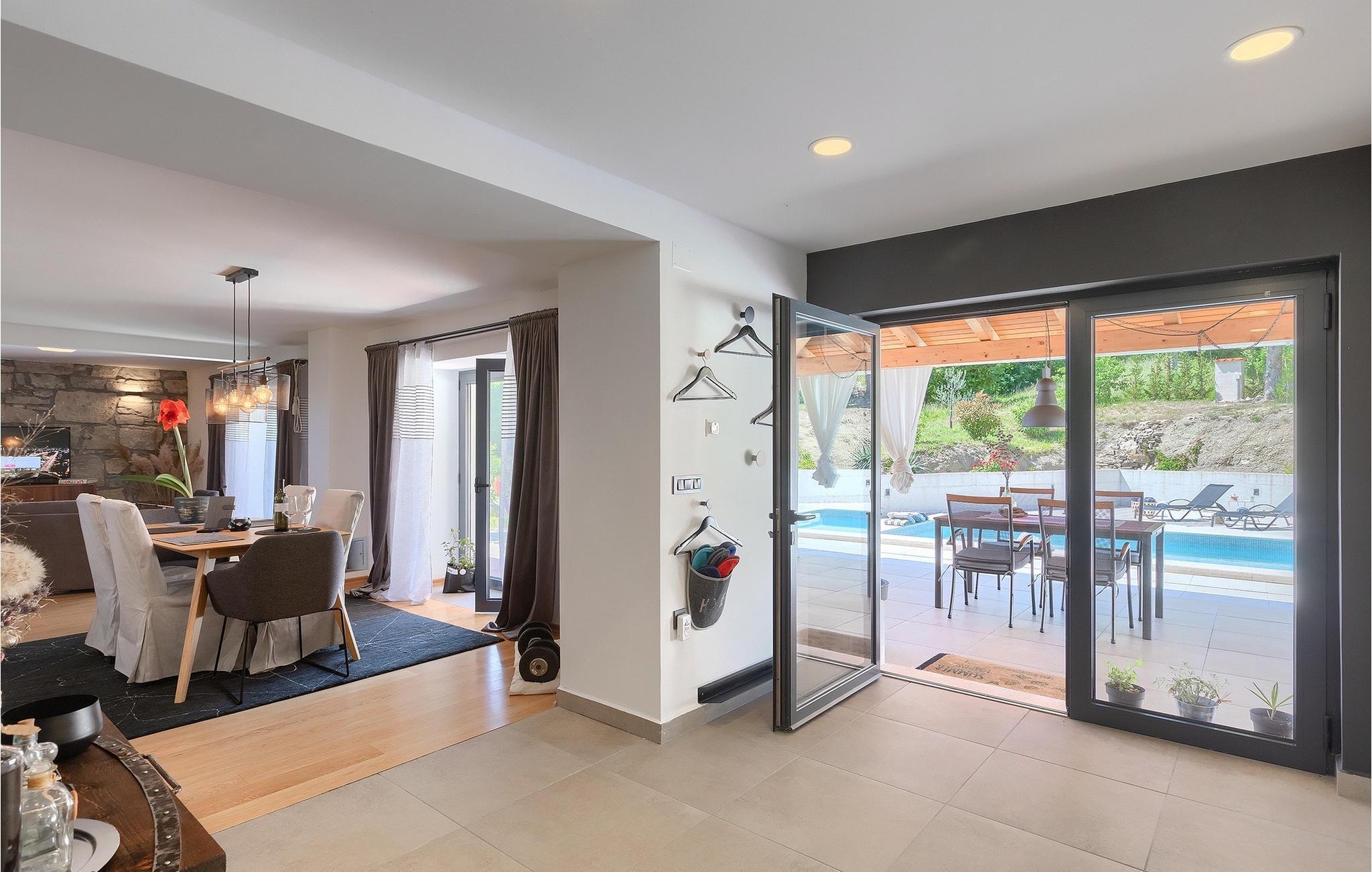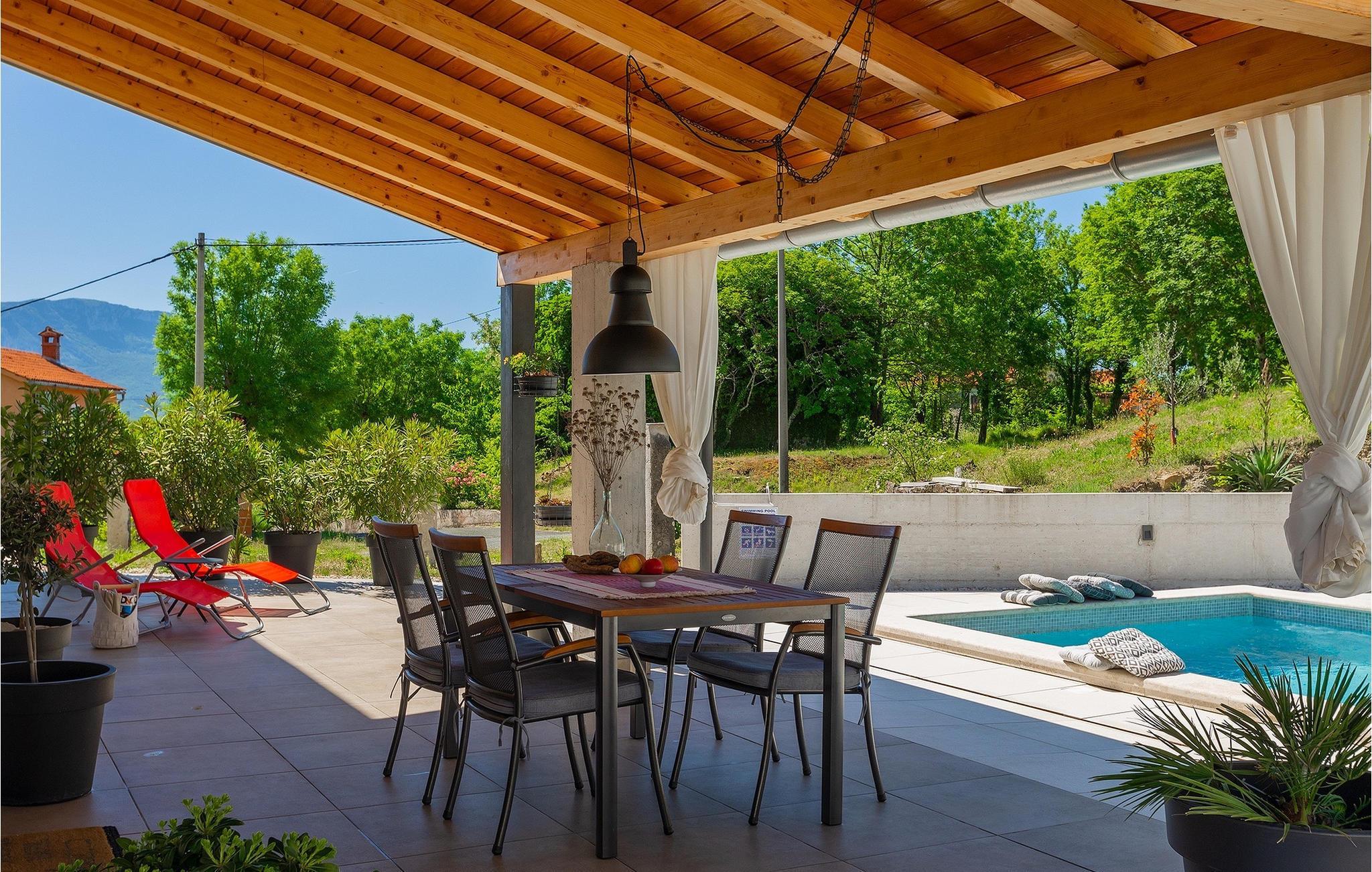 Die Villa befindet sich in einem kleinen istrischen Dörfchen, umgeben von unberührter Natur. Mit einer Gesamtwohnfläche von 125 Quadratmetern bietet sie Platz für bis zu max. 6 Personen. Das Erdgeschoss besteht aus einer modernen und gut ausgestatteten Küche, einer Essecke, einem Wohnzimmer mit TV und einem Badezimmer mit Dusche. Im Obergeschoss befinden sich zwei schön eingerichtete Schlafzimmer mit Doppelbetten und ein weiteres Bad mit Dusche. Der Außenbereich ist der perfekte Ort, um sich zu entspannen und die Ruhe und den Frieden der Gegend zu genießen. Vor der Villa befinden sich eine überdachte Terrasse und ein privater Pool, der perfekt für warme Sommertage ist. Nutzen Sie diese Gelegenheit und genießen Sie Ihren Urlaub im schönen Istrien.Die Villa Des4U befindet sich inmitten einer idyllischen Landschaft an den westlichen Hängen des wunderschönen Naturparks Ucka. Wenn Sie gerne Radfahren und Wandern, erwarten Sie herrliche Berge. Abenteuerlustige finden hier einige der beliebtesten Orte für Freeclimbing und Gleitschirmfliegen in Kroatien. Wenn Sie sich nach kristallklarem Meer sehnen, ist die Vielfalt der Strände nur ca. 30 Autominuten entfernt, ebenso wie die Perle der Adria - Opatija, mit einem lebhaften Sommertreiben und erstklassigen Restaurants. Besuchen Sie die vielen mittelalterlichen Städte in Zentralistrien wie Boljun, Motovun und Grožnjan und die Küstenstädte wie Pula, Rovinj und Porec. Probieren Sie viele traditionelle Gerichte wie istrische Nudeln Fuži und Pljukanci mit Trüffeln oder Boškarin, und runden Sie Ihr Abendessen mit einem Glas erstklassigen istrischen Malvasia ab.