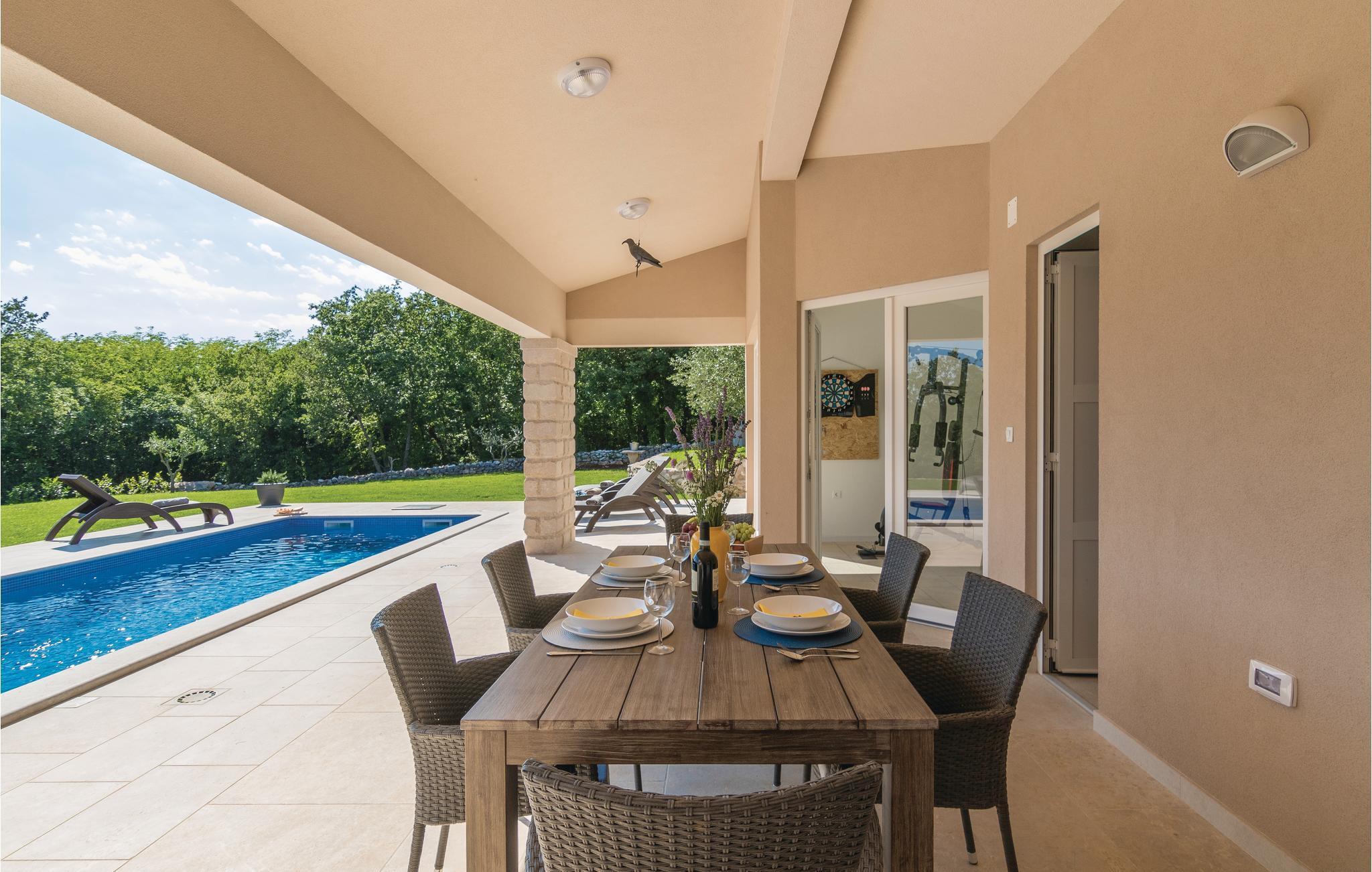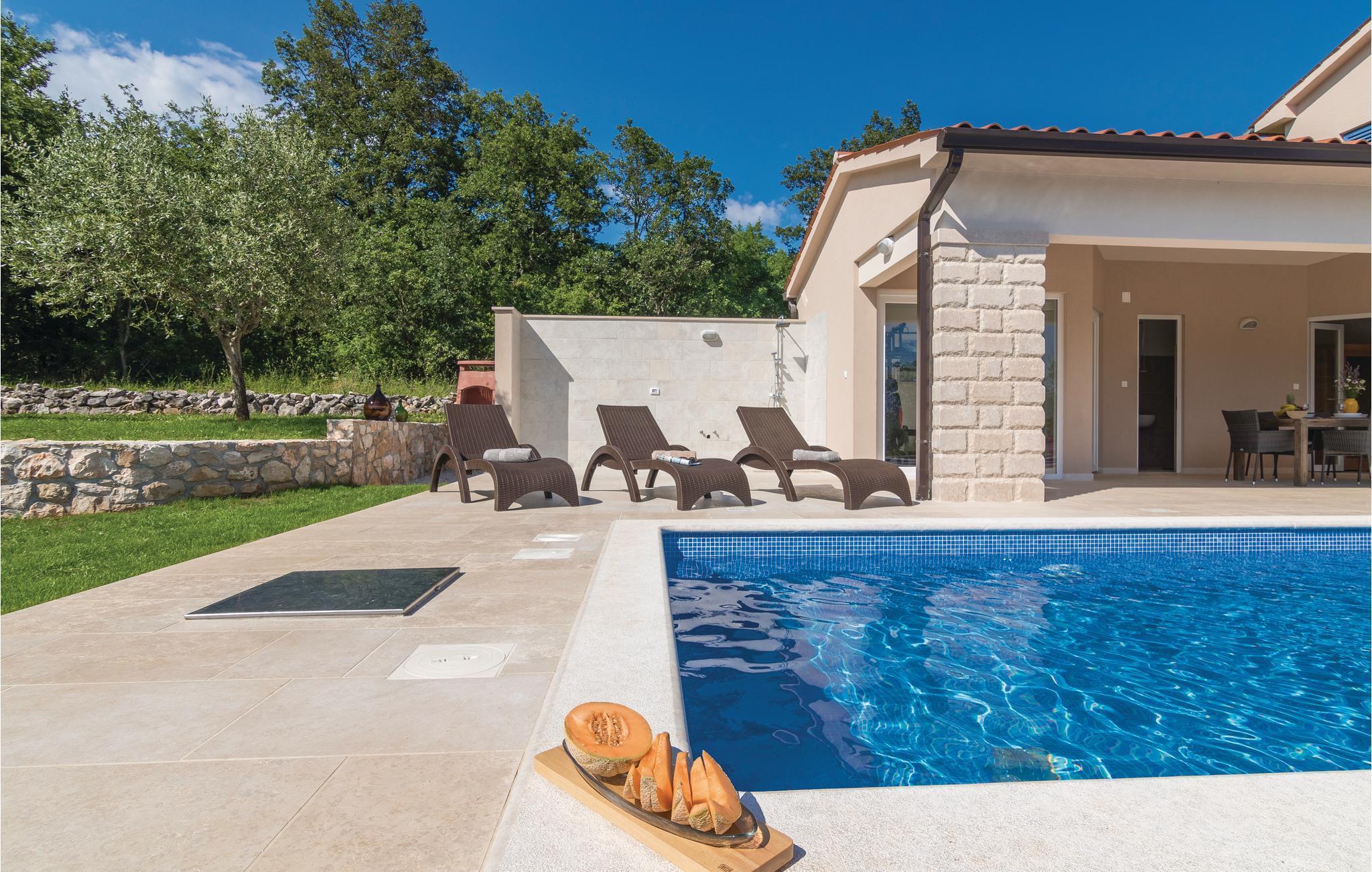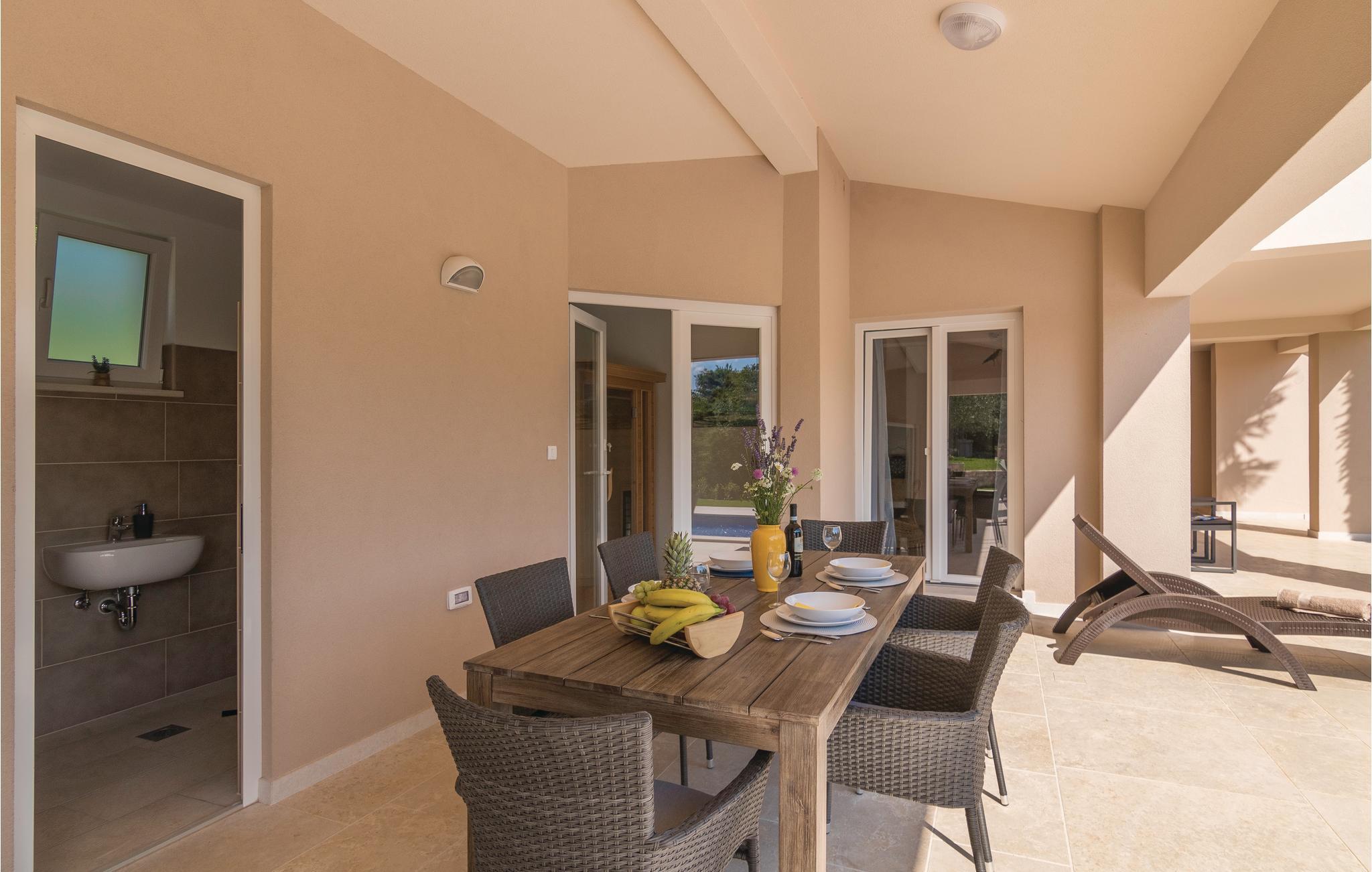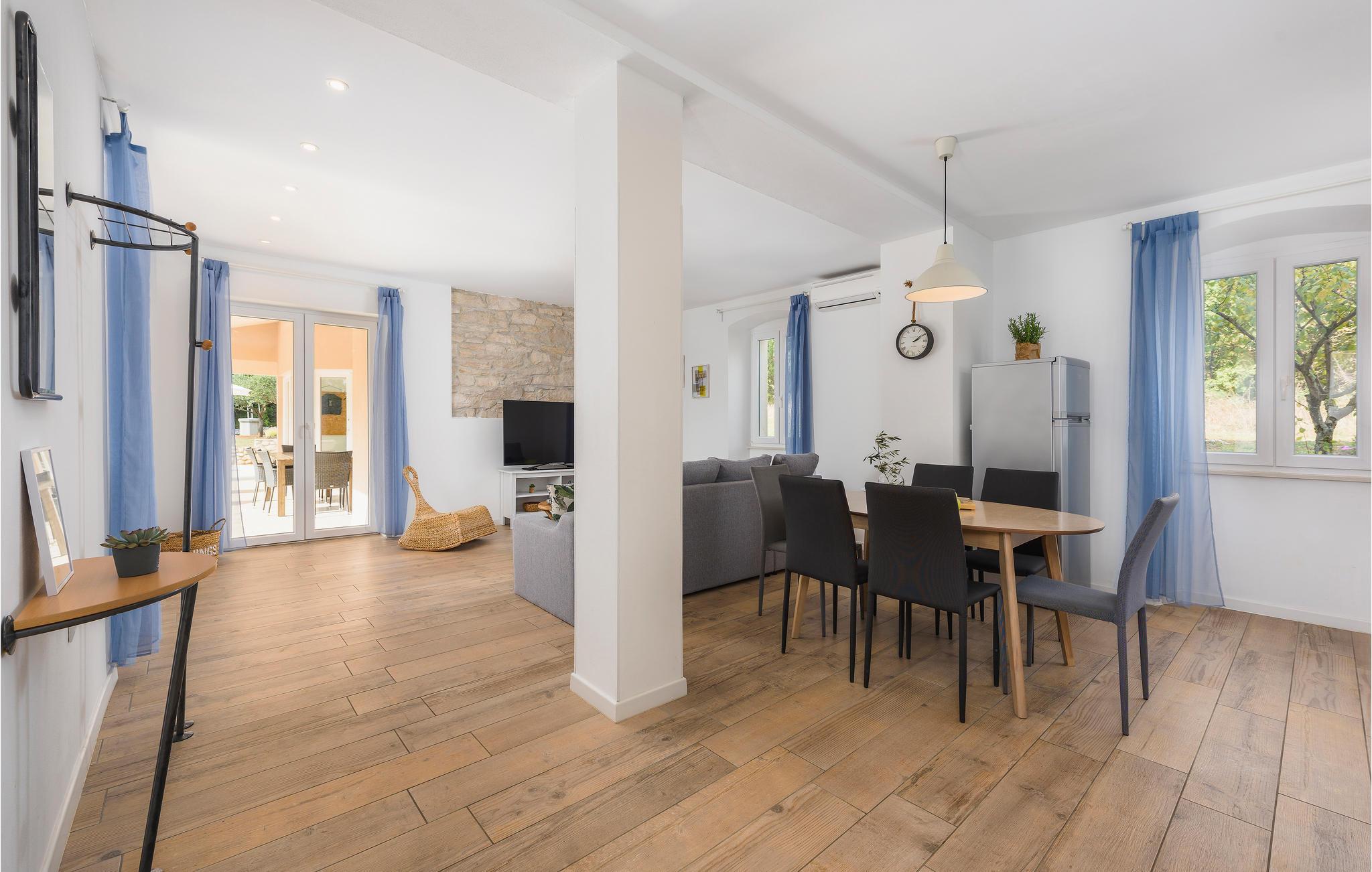 Diese wunderbare und luxuriös eingerichtete Ferienwohnung mit Pool liegt in ruhiger Umgebung und ist ideal für einen komfortablen Urlaub geeignet. Herrliche Badestrände und ein kristallklares Meer, das sich in der Touristenstadt Rabac befindet, erreichen Sie in etwa 20 Autominuten. Die Ferienwohnung erstreckt sich über das Erdgeschoss und besteht aus einer großen Terrasse mit Blick auf den schönen Naturgarten in dem der erfrischende Pool dominiert. Zusätzliche Highlights dieses Domizils sind die Sauna und der Fitnessraum mit Blick auf den Pool. Der Eigentümer hat zwei Boote für Tagestouren sowie ein U-Boot, mit dem die Unterwasserwelt bei Rabac erkundet wird und bietet seinen Gästen eine kostenlose Panoramabootsfahrt sowie ein Willkommensgetränk an der Küste des kleinen Ortes Sveta Marina.