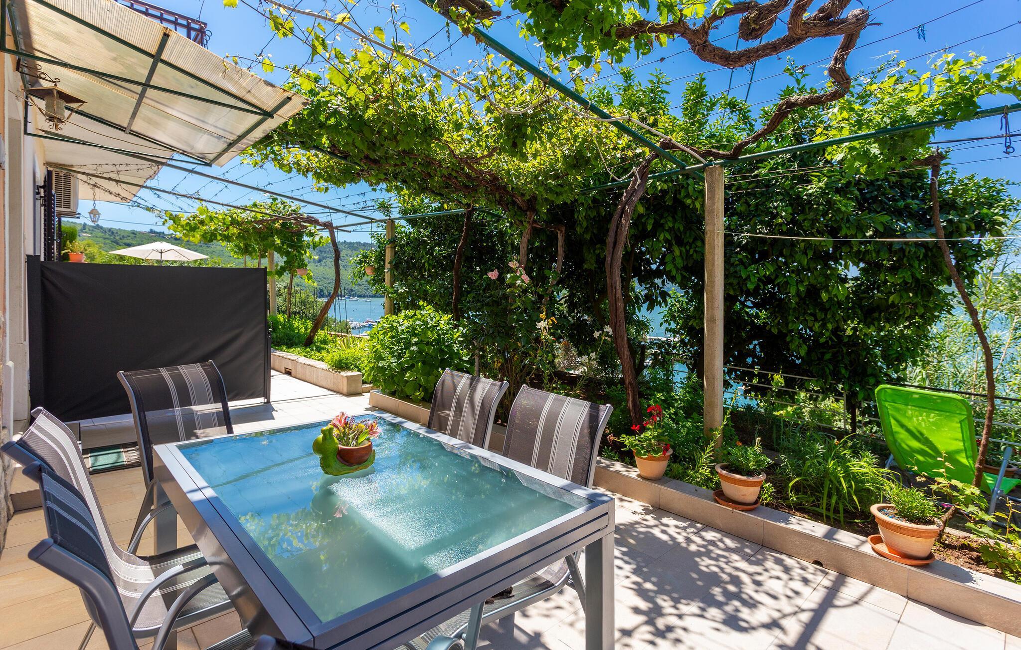 In der kleinen Ortschaft Trget, nur wenige Meter vom Meer entfernt, befindet sich diese Doppelhaushälfte. Das Ferienhaus ist einfach und funktional ausgestattet, mit allem was Sie für einen komfortablen Urlaub benötigen. Das Erdgeschoss besteht aus Küche, Wohnzimmer und Bad. Im Obergeschoss sind drei Schlafzimmer untergebracht. Vor dem Haus befindet sich eine Terrasse, auf der Sie im Schatten der Weinrebe den Duft des Meeres und der mediterranen Pflanzen genießen können. In der Nähe des Hauses befindet sich ein wunderschöner Kiesstrand, ideal für Familien mit Kindern. Trget ist ein kleines Fischerdorf in der Bucht von Raša. Hier finden Sie die Ruinen der romanischen St. Georgs Kirche sowie zahlreiche Restaurants mit reichhaltigem Angebot an Fischspezialitäten.