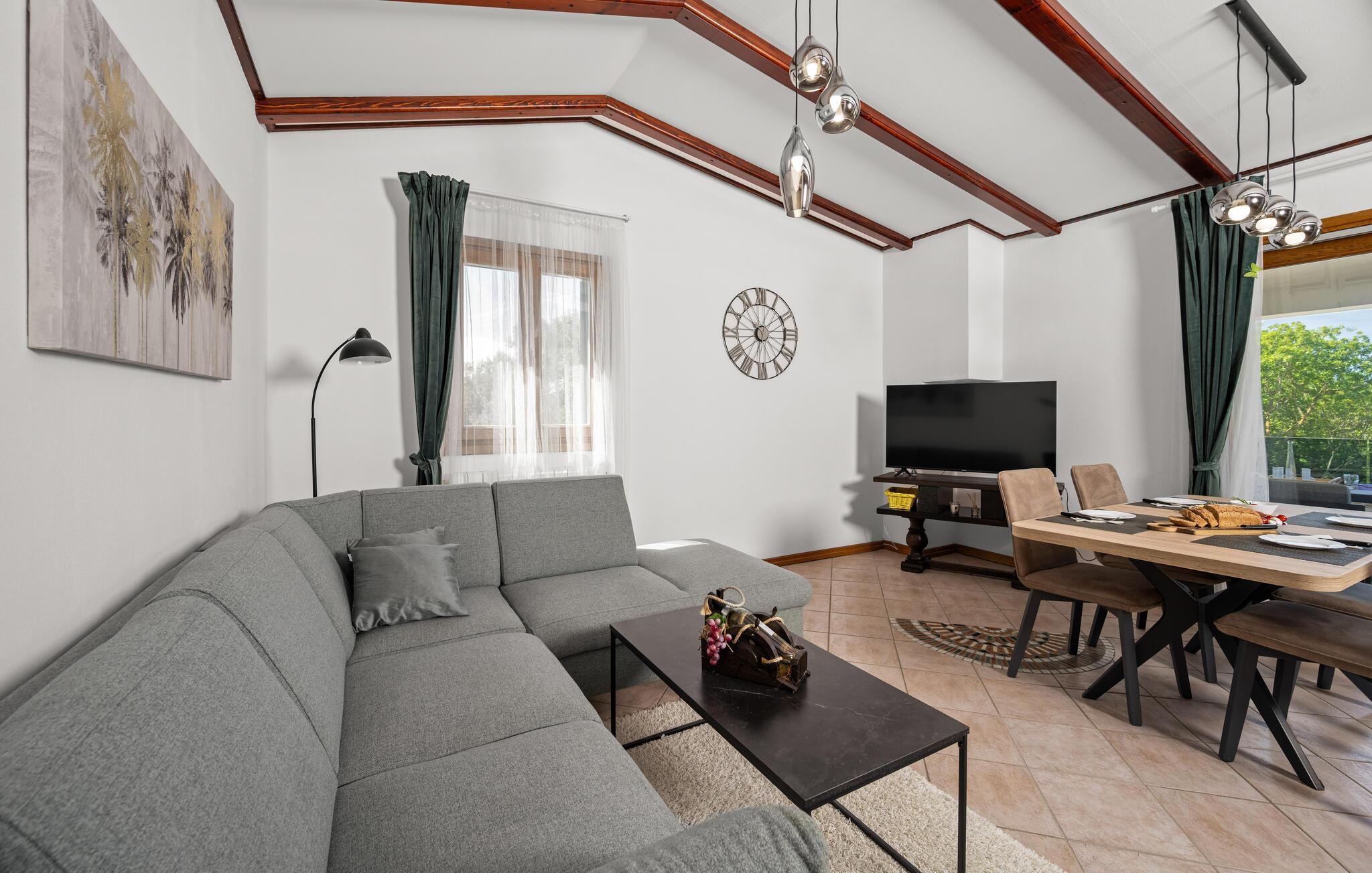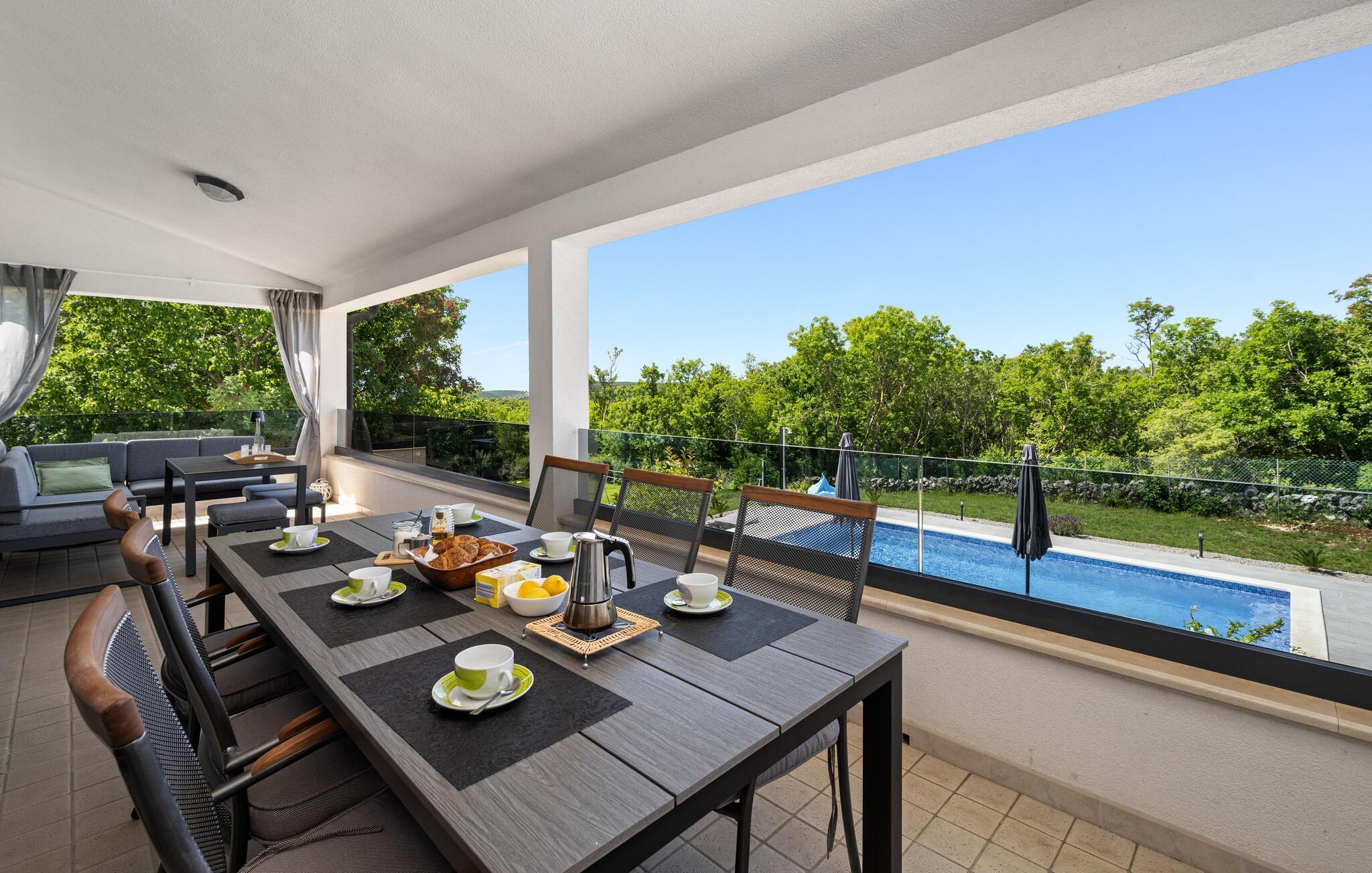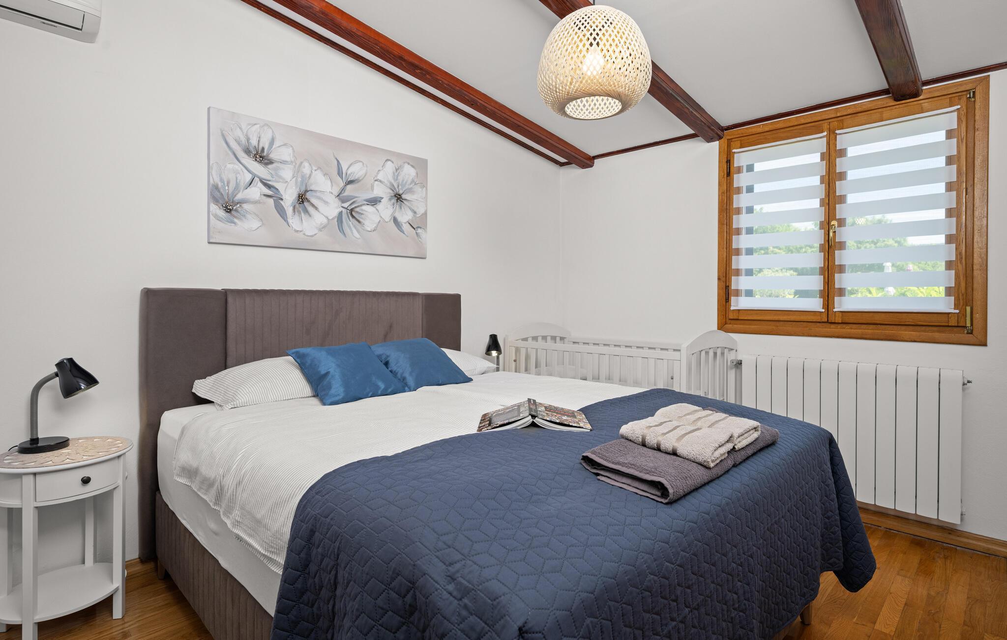 An der wunderschönen Bucht Raški Zaljev heißt Sie dieses große und helle Ferienhaus mit Aktivitätsraum willkommen.