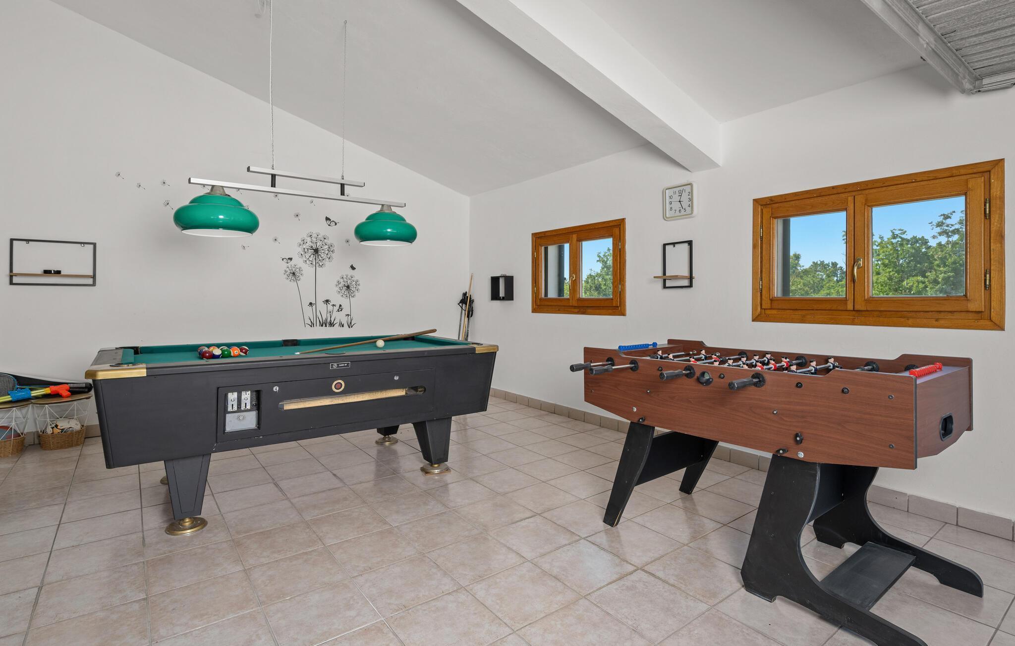 Verbringen Sie mit Ihrer Familie einen entspannten Urlaub in diesem schönen Ferienhaus in Trgetari. Das einladende Haus ist schön dekoriert und verfügt über komfortable und helle Wohnbereiche, die Sie zum Verweilen, Kochen und Spielen auffordern. Im Haus kommt auch der Spaß nicht zu kurz. Ein Aktivitätsraum mit Billard, Tischkicker und Darts bietet Ihnen Unterhaltung. Auch der Balkon und der Garten sind tolle Orte, um zu grillen und die Zeit im Freien zu verbringen. Legen Sie sich in die Sonne, spielen Sie Volleyball oder lassen Sie Ihre Kleinen schaukeln.