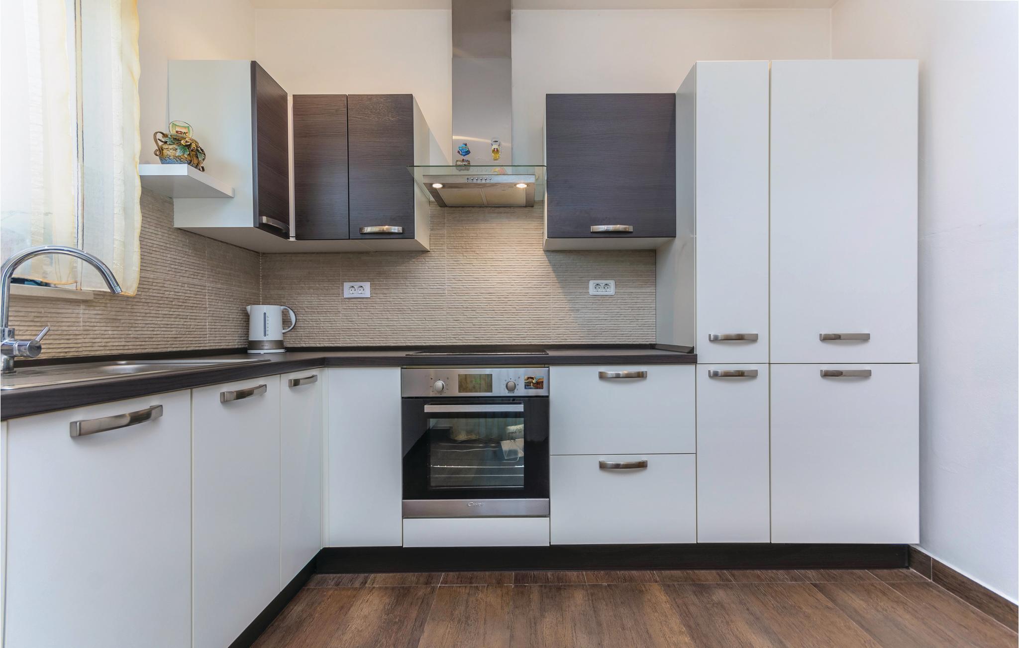 Dieses schön eingerichtete Ferienhaus im kleinen Ort Vinez ist nicht weit entfernt von der Stadt Labin und nur etwa 15 Autominuten weit weg vom Touristenort Rabac, mit seinen schönen Stränden und dem kristallklaren Meer. Es besteht aus zwei getrennten Wohneinheiten, eine im Erdgeschoss und die andere im ersten Stock, die durch Innentreppen miteinander verbunden sind. Jede Wohneinheit besteht aus zwei Schlafzimmern, Badezimmer, Küche mit Wohnzimmer und einer überdachten Terrasse, wo Sie an Sommerabenden mit Ihrem Lieblingsgetränk entspannen können. Besuchen Sie die Stadt Labin mit vielen Veranstaltungen während der Sommermonate.