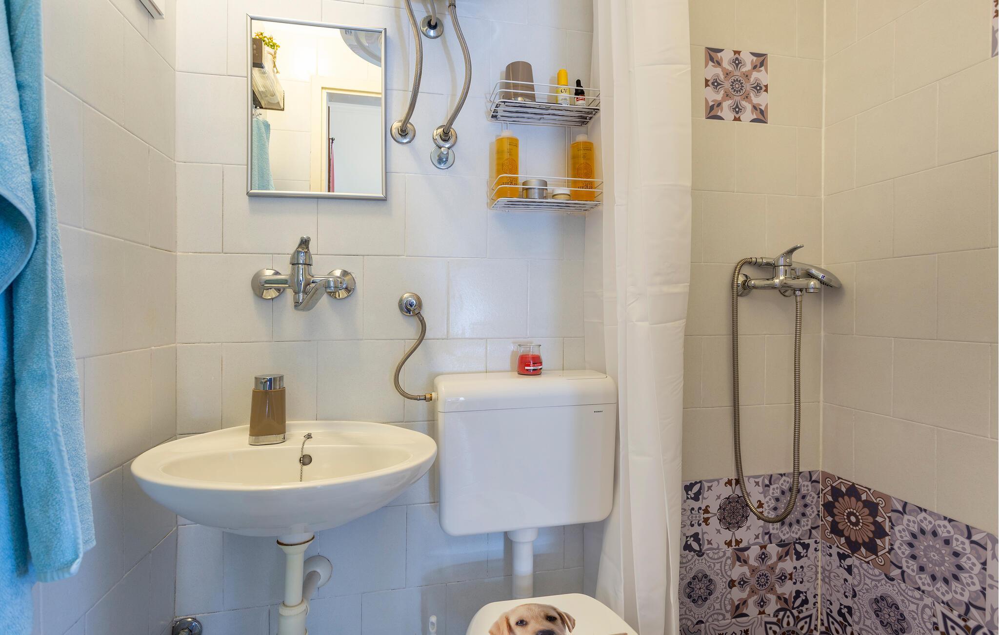 Badezimmer 5m2 (nr. 1) - WC. Warmes und kaltes Wasser. Dusche