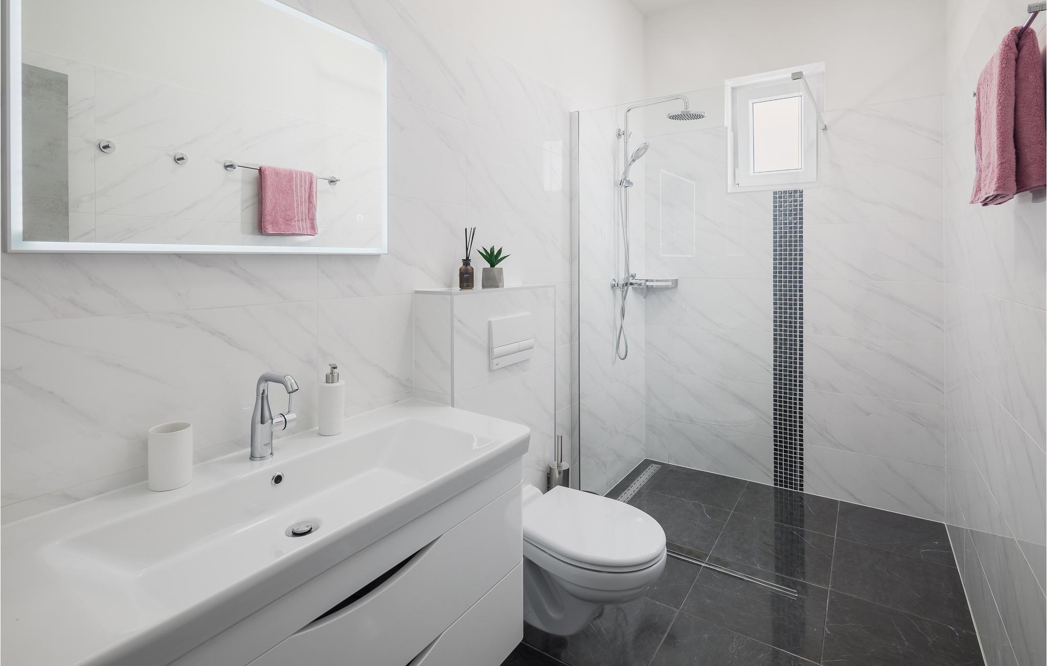 Badezimmer 4m2 (nr. 2) - WC. Warmes und kaltes Wasser. Dusche