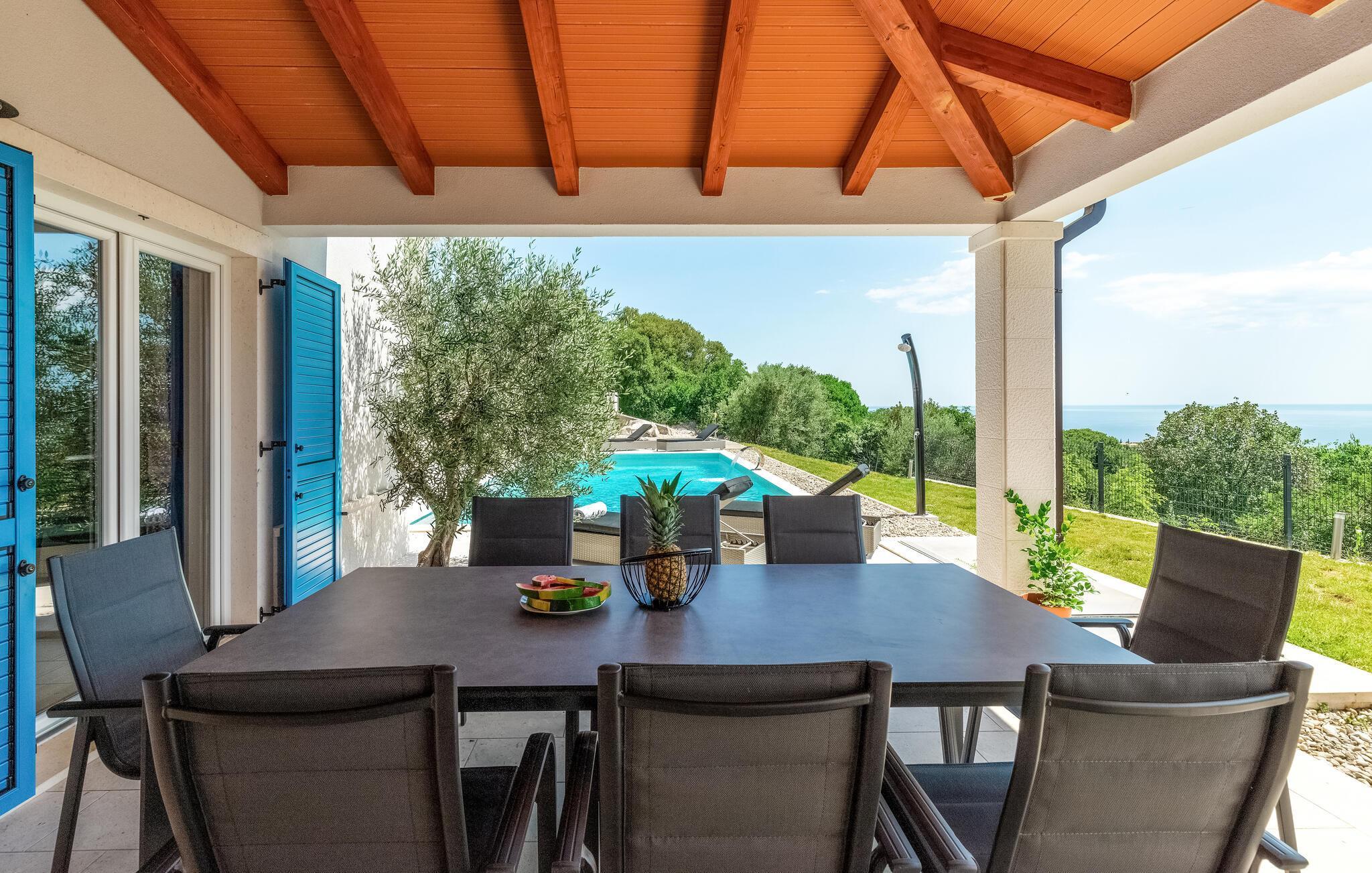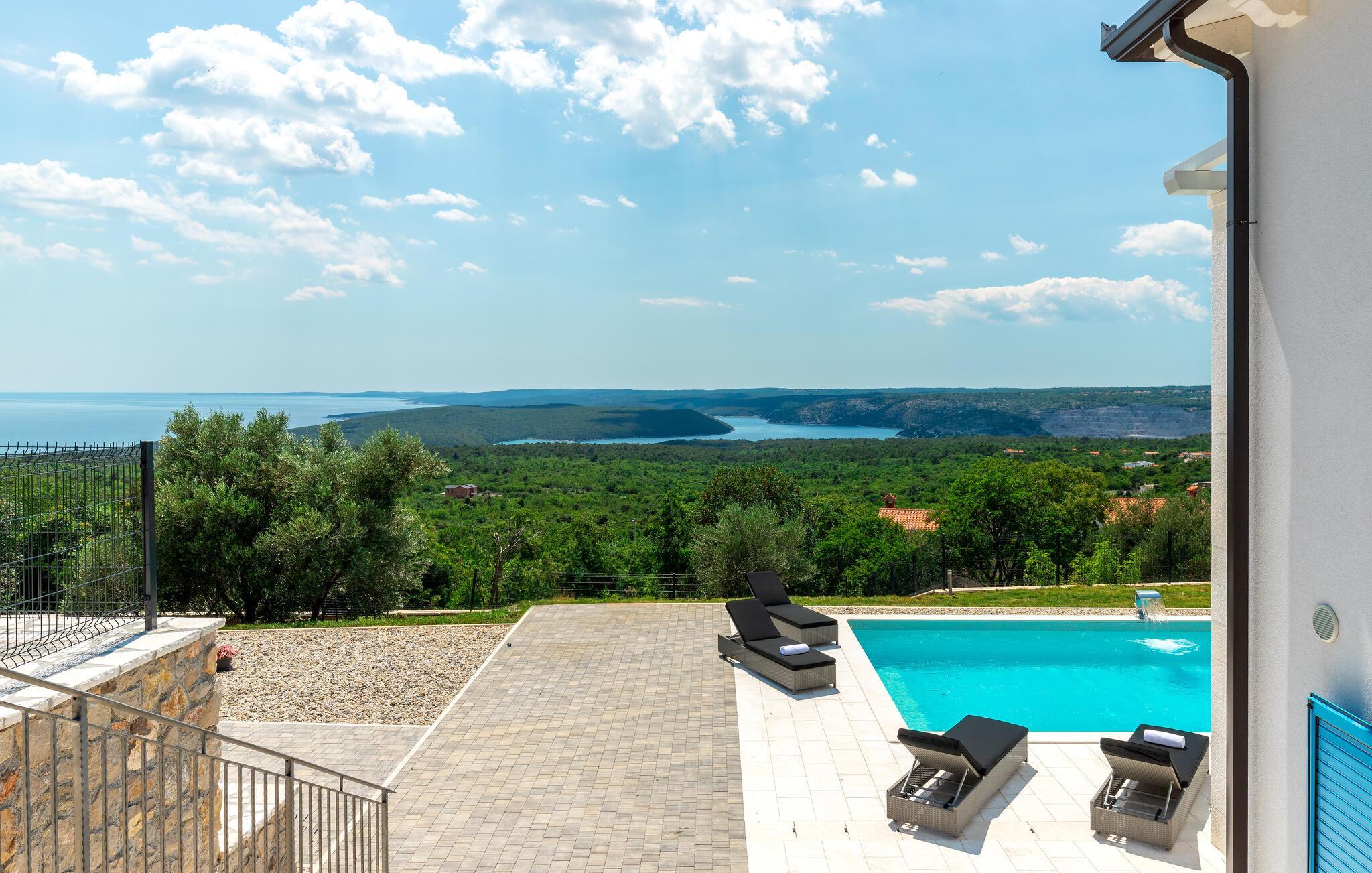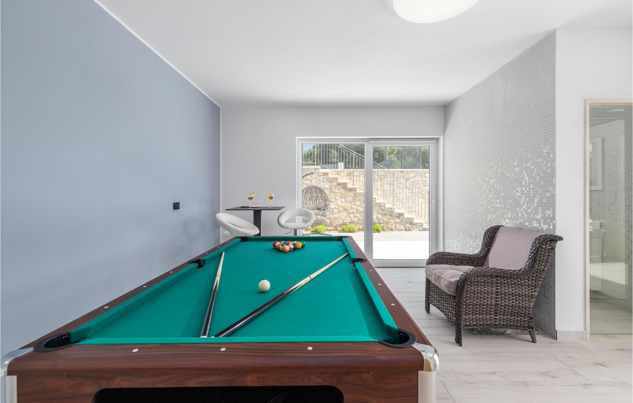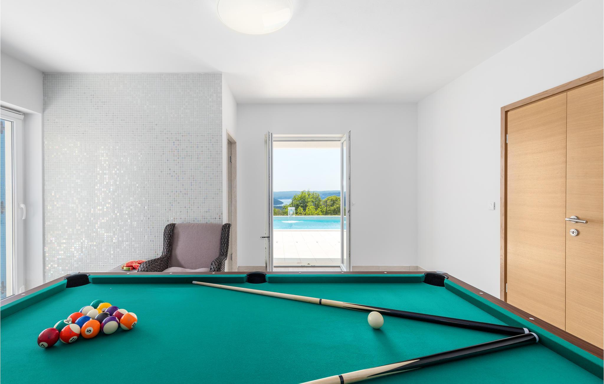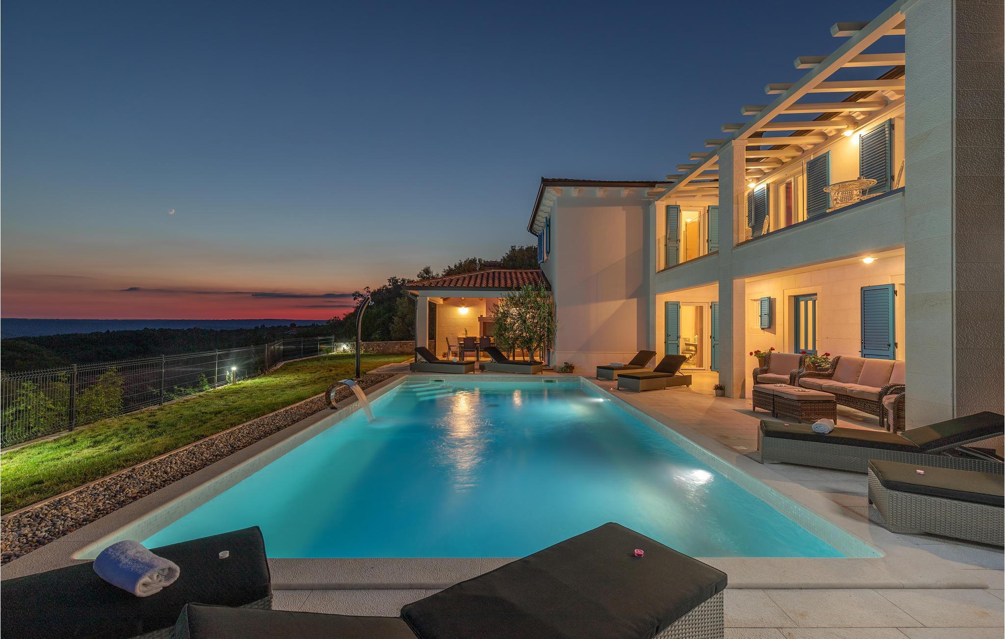 Endlich sind Sie angekommen und können sich auf dieses großartige Ferienhaus freuen. Auch zwei komfortablen Etagen können Sie sich in Privatsphäre entspannen oder die Gesellschaft der anderen beim Billard suchen. Auch der offene und stilvolle Wohnraum lädt zum gemeinsamen Verweilen oder Kochen ein. Trauen Sie Ihren Augen, wenn Sie auf die Terrasse oder den Balkon treten. Der schön angelegte Garten, der Pool sowie die Außenküche laden Sie ein, viele Stunden im Freien zu verbringen. Entspannen Sie sich auch im Whirlpool und blicken über die Küste Istriens.