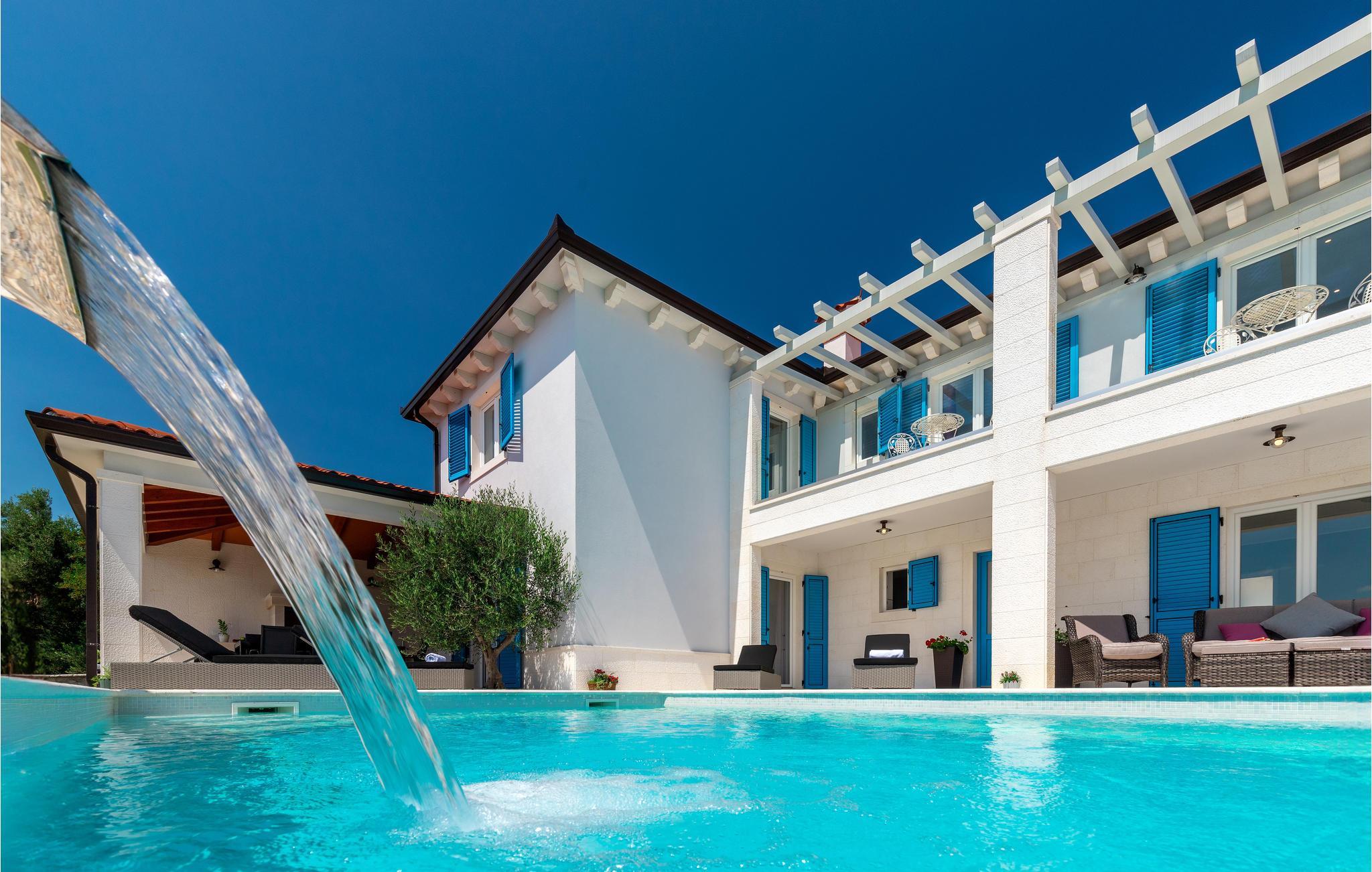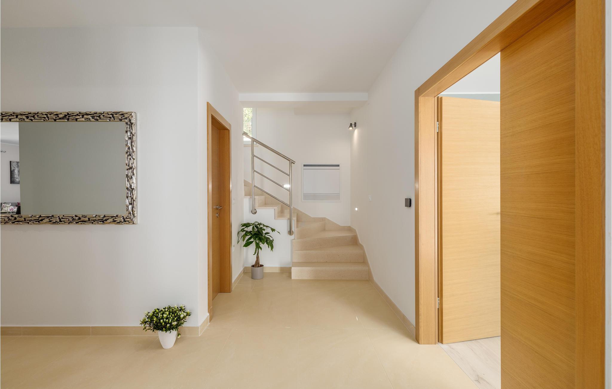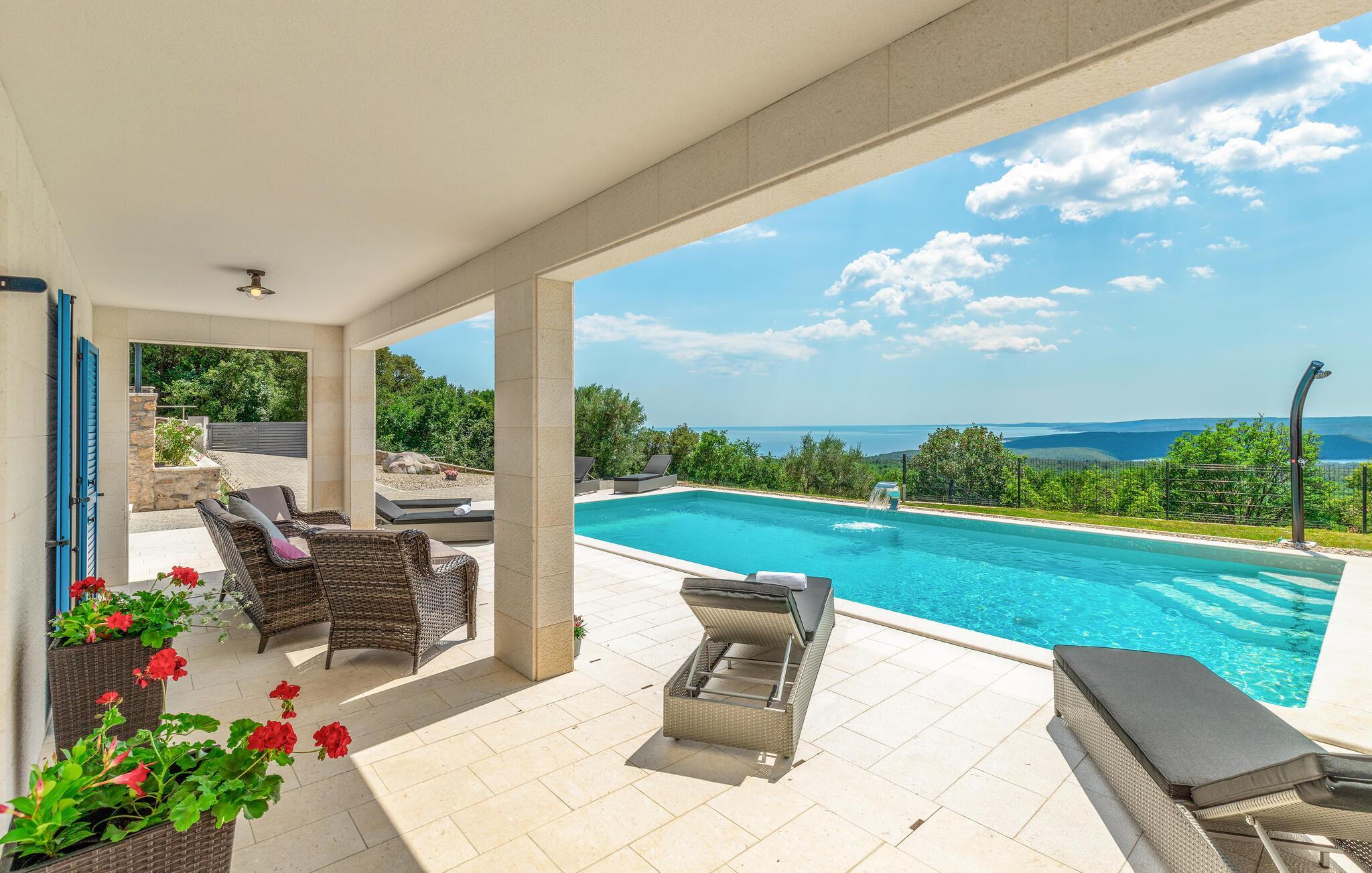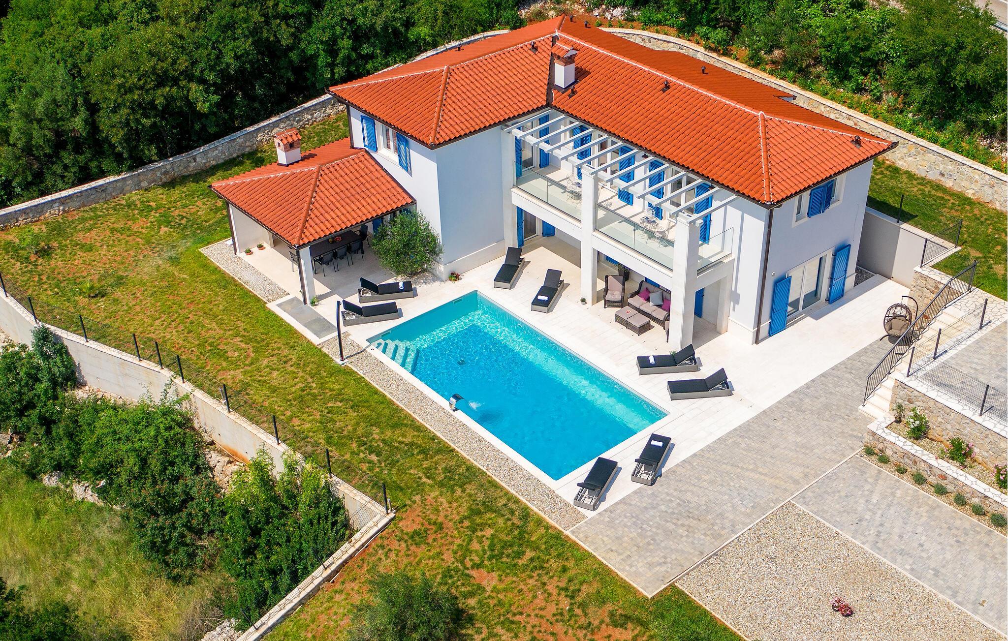 Endlich sind Sie angekommen und können sich auf dieses großartige Ferienhaus freuen. Auch zwei komfortablen Etagen können Sie sich in Privatsphäre entspannen oder die Gesellschaft der anderen beim Billard suchen. Auch der offene und stilvolle Wohnraum lädt zum gemeinsamen Verweilen oder Kochen ein. Trauen Sie Ihren Augen, wenn Sie auf die Terrasse oder den Balkon treten. Der schön angelegte Garten, der Pool sowie die Außenküche laden Sie ein, viele Stunden im Freien zu verbringen. Entspannen Sie sich auch im Whirlpool und blicken über die Küste Istriens.