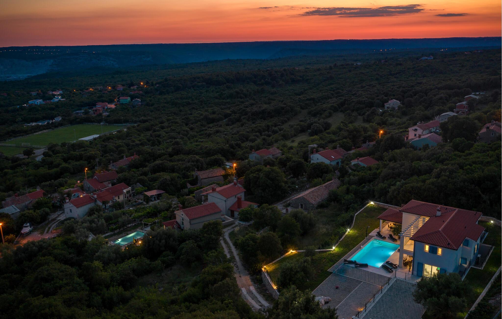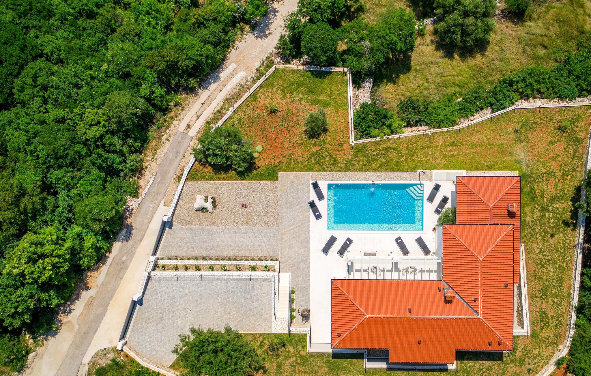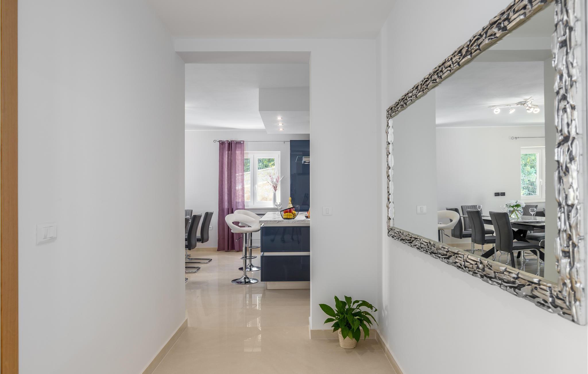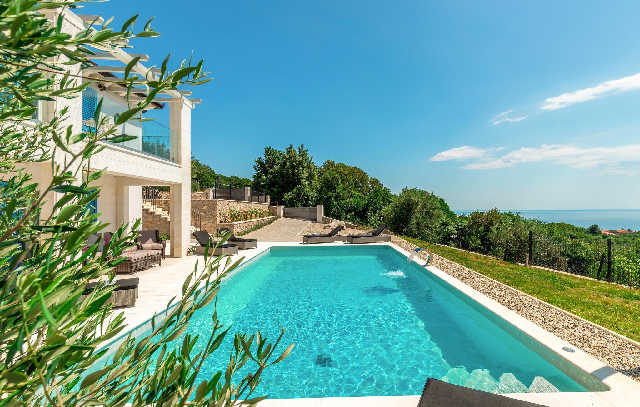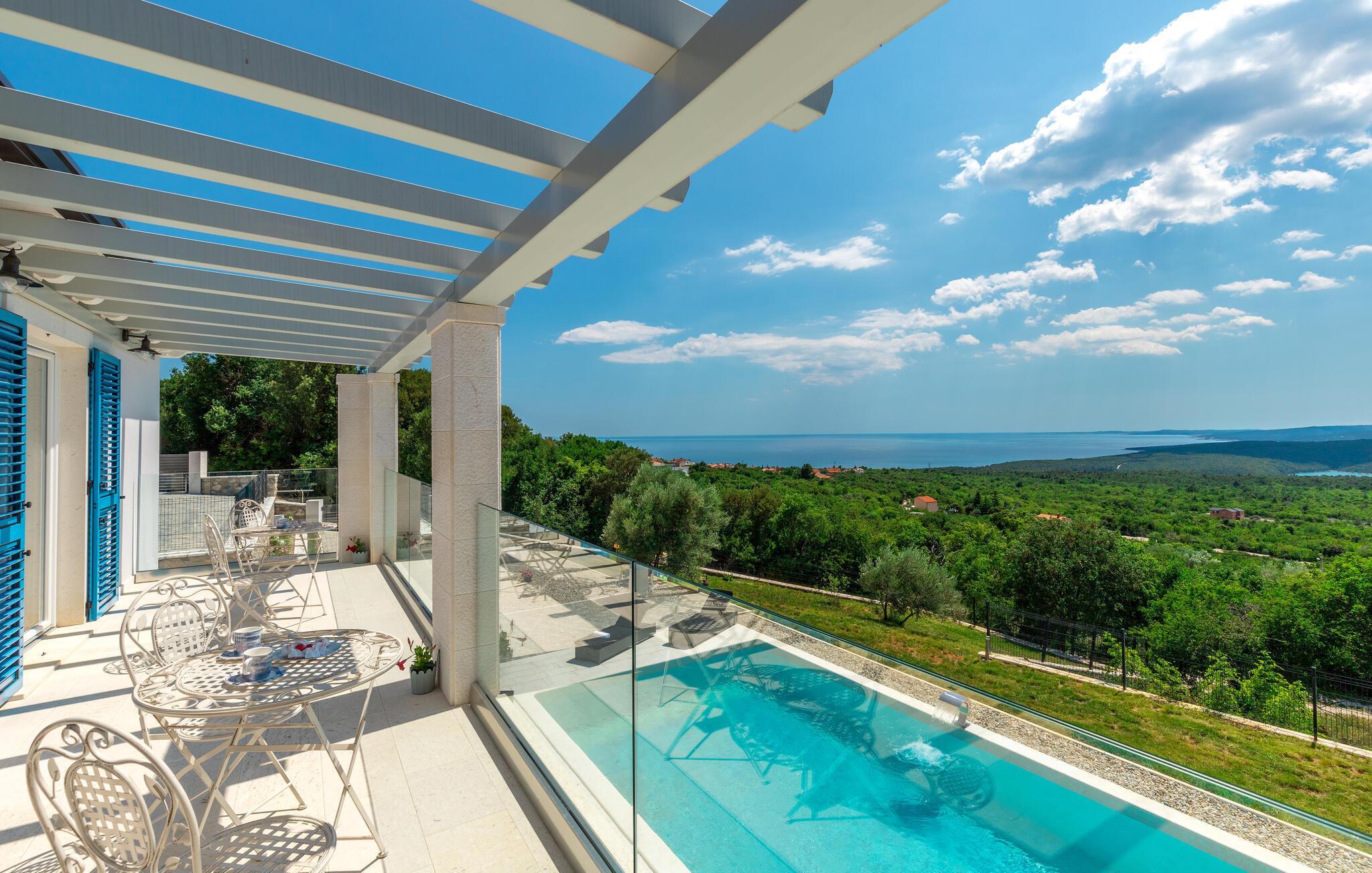 Endlich sind Sie angekommen und können sich auf dieses großartige Ferienhaus freuen. Auch zwei komfortablen Etagen können Sie sich in Privatsphäre entspannen oder die Gesellschaft der anderen beim Billard suchen. Auch der offene und stilvolle Wohnraum lädt zum gemeinsamen Verweilen oder Kochen ein. Trauen Sie Ihren Augen, wenn Sie auf die Terrasse oder den Balkon treten. Der schön angelegte Garten, der Pool sowie die Außenküche laden Sie ein, viele Stunden im Freien zu verbringen. Entspannen Sie sich auch im Whirlpool und blicken über die Küste Istriens.