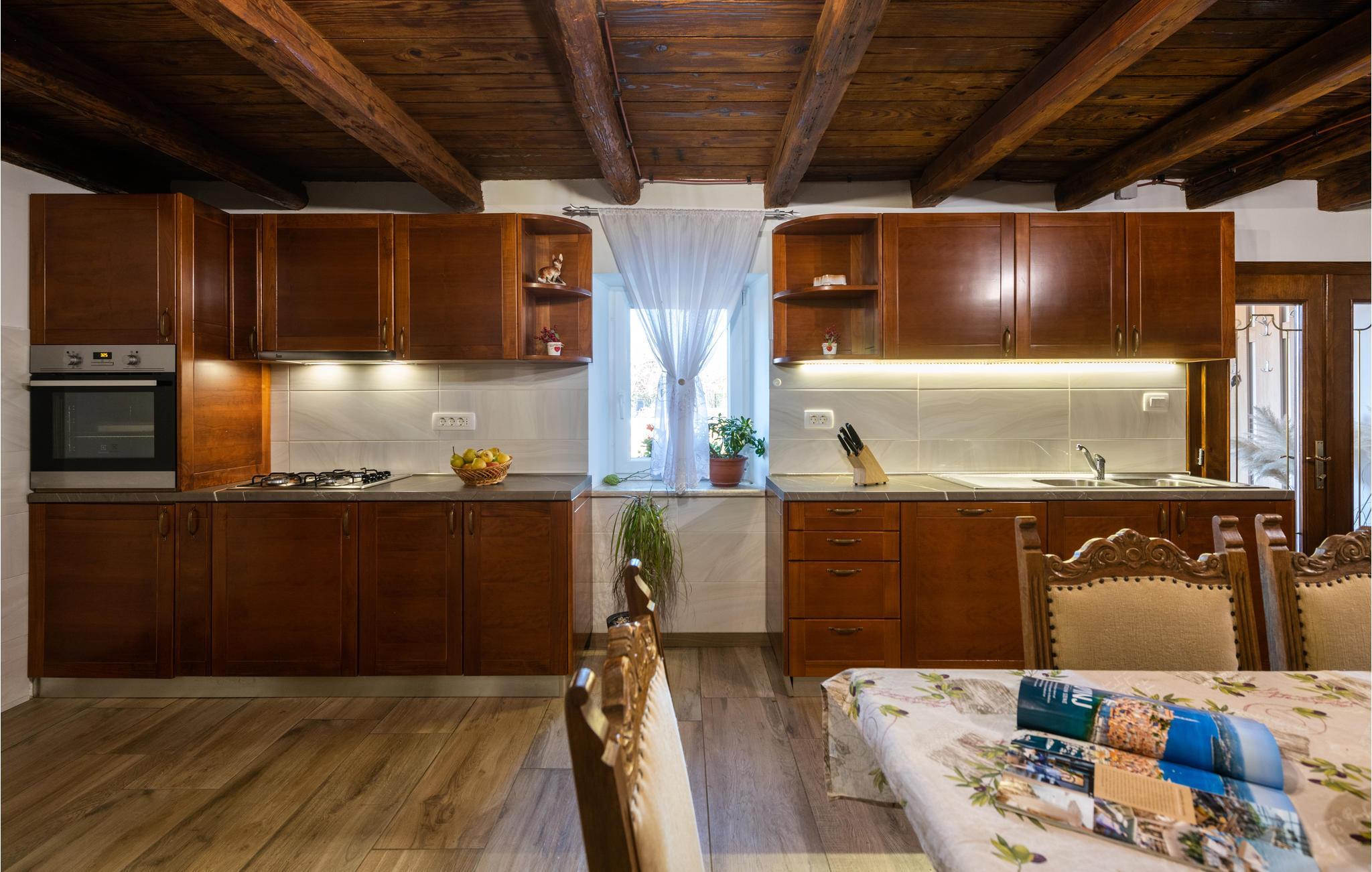 Machen Sie es sich in dem komfortablen Haus gemütlich, das mit seinen wohnlichen Räumen mit schönen Böden und Decken aus Holz den idealen Rahmen für eine erholsame Auszeit bietet. Hier können Sie in vollen Zügen die gemeinsame Zeit genießen, die ansprechende Einrichtung im Stil eines Landhauses macht es Ihnen leicht, zu entspannen. Lassen Sie sich nach einem herrlichen Tag auf dem Sofa nieder, wo Sie noch lange zusammensitzen können.