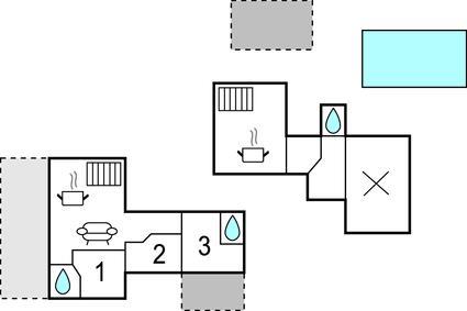 Badezimmer 3m2 (nr. 1) - WC. Warmes und kaltes Wasser. Dusche