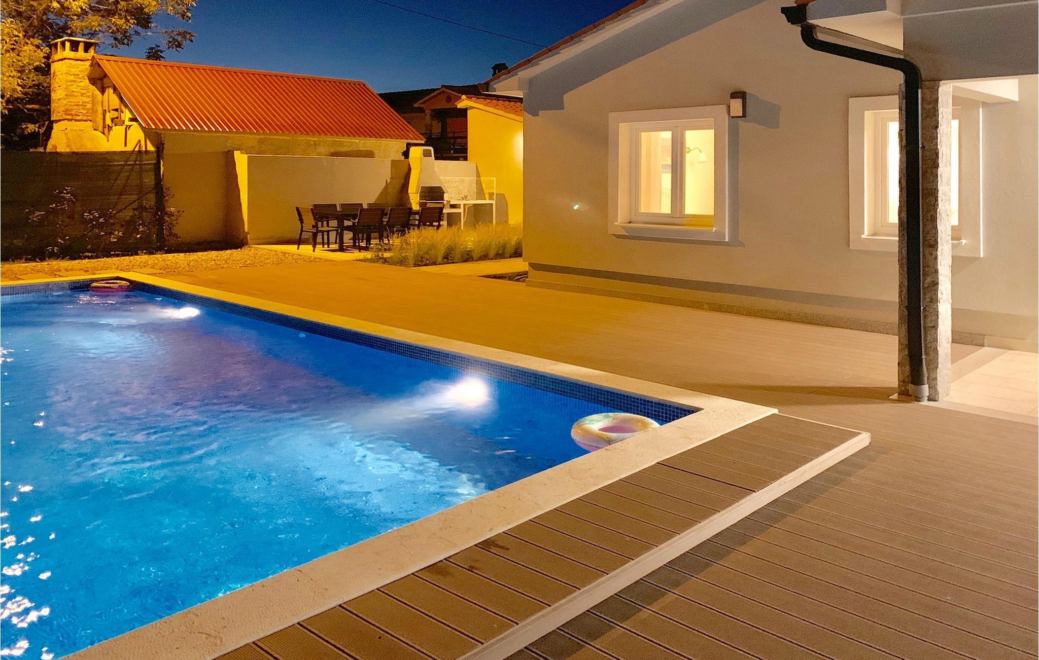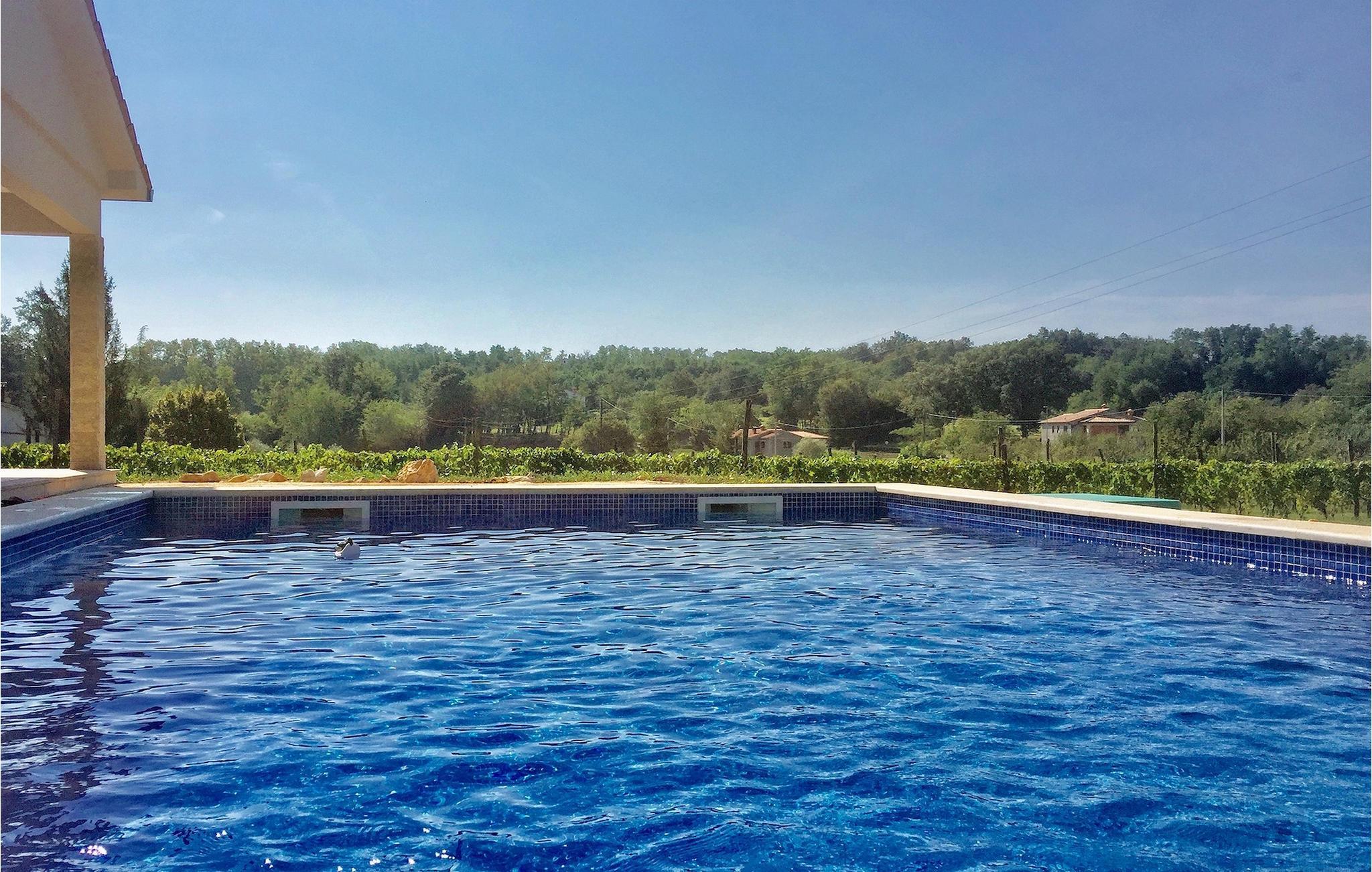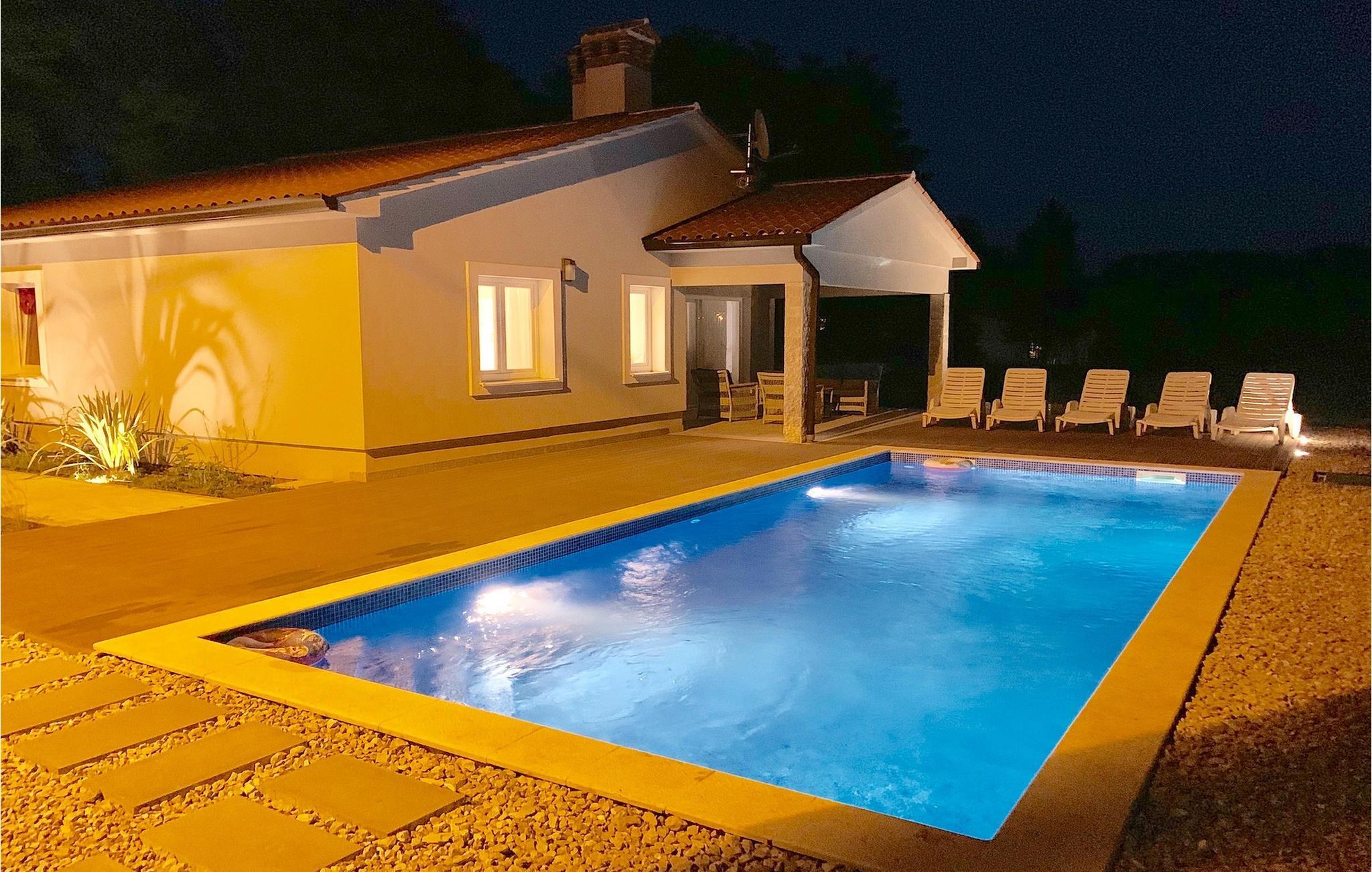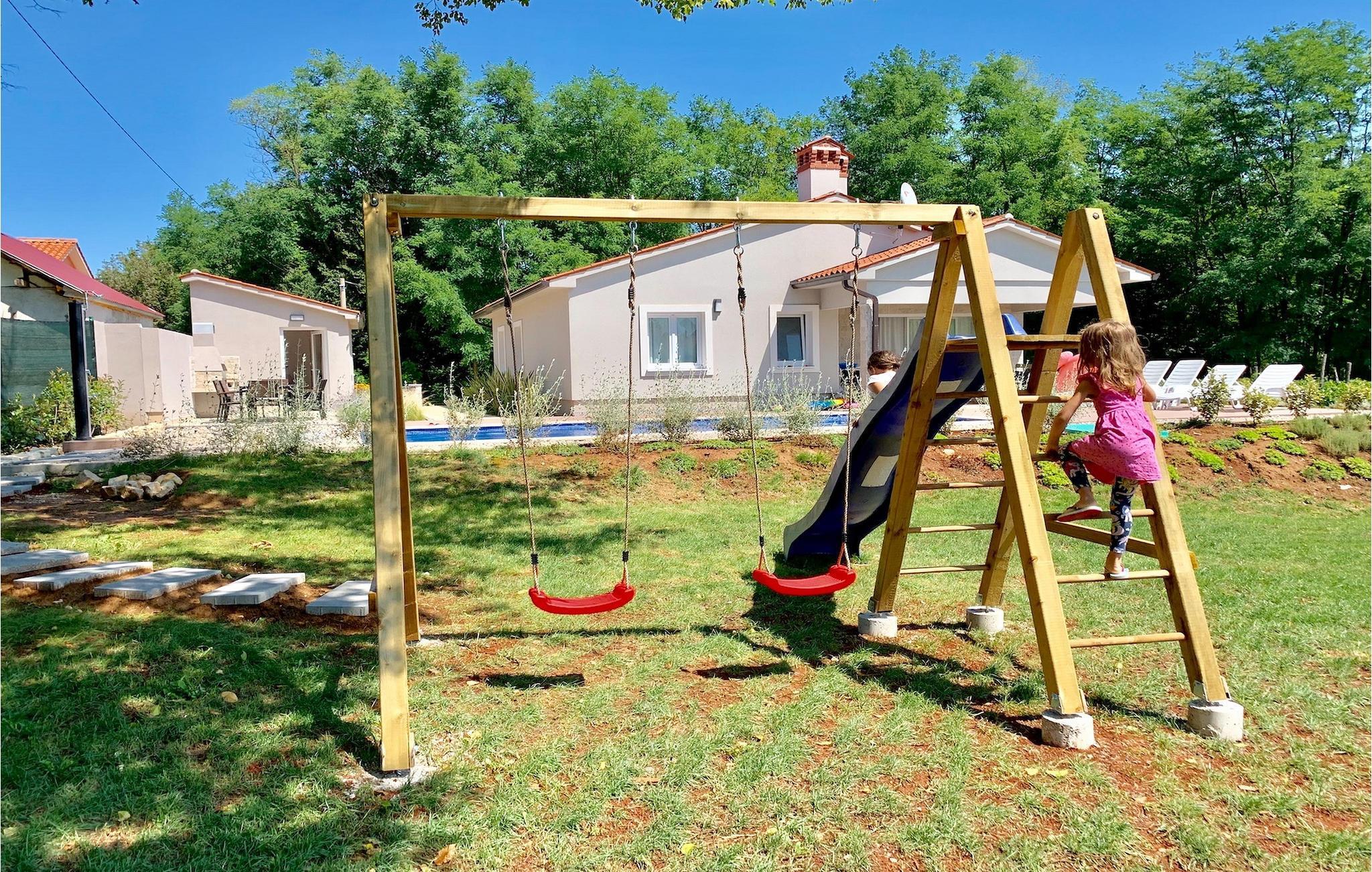 Suchen Sie nach einer modernen Villa mit einem großen, gepflegten Garten und einem einladenden privaten Pool für Ihren perfekten Familienurlaub, ist die Villa Meadow genau das Richtige für Sie! Diese einstöckige Villa erstreckt sich über einem Grundstück auf mehr als 2000 m2 und bietet genügend Platz im Außenbereich, um sich auf den Sonnenliegen zu entspannen, für Kinder, um auf dem Spielplatz zu spielen und für die gesamte Gruppe, um den Essbereich im Freien am Holzkohlegrill zu genießen. Diese wunderschöne Villa bietet Platz für bis zu 8 Personen in 3 sorgfältig eingerichteten Schlafzimmern. Alle Räume befinden sich im Erdgeschoss. Zwei Schlafzimmer verfügen über Doppelbetten, während eines über 2 Einzelbetten verfügt, dazu wird auch das Sofabett für die zusätzlichen Gäste angeboten. Beim Betreten der Villa kommen Sie zum räumlichen Bereich mit der komplett ausgestatteten Küche, Wohnzimmer (mit Kamin) und Essbereich mit Blick auf die schöne Terrasse neben dem Pool. Die Terrasse ist der ideale Ort, um gemeinsam zu frühstücken oder einfach mit einem Buch und Glas istrischen Malvazija zu entspannen. Genießen Sie Zentralistrien und erkunden Sie die wunderschöne, natürliche Umgebung, die Weiler und verbringen Sie einen entspannten Urlaub in der Villa Meadow!Die wunderschöne Villa Meadow befindet sich im kleinen Ort Zupanici in der Nähe von Labin. Hier können Sie die Ruhe in der Natur genießen. Falls Sie gerne aktiv im Urlaub bleiben können Sie hier auch Radfahren und joggen. Die Altstadt Labin befindet sich auf der östlichen Seite der istrischen Halbinsel. Es ist ein Ort, in dem sie zahlreiche Ateliers vorfinden werden und der ideale Ort, um Kunst bei jedem Schritt durch die Stadt zu genießen. Rabac, ein ehemaliges Fischerdorf, bietet gute Strände und Restaurants. In der Umgebung von Labin-Rabac können Sie Tennis, Minigolf, Beach-Volleyball, Tauchen und verschiedene Wassersportarten genießen und der erste Strand ist nur 10 km (in Rabac) von der Villa entfernt.