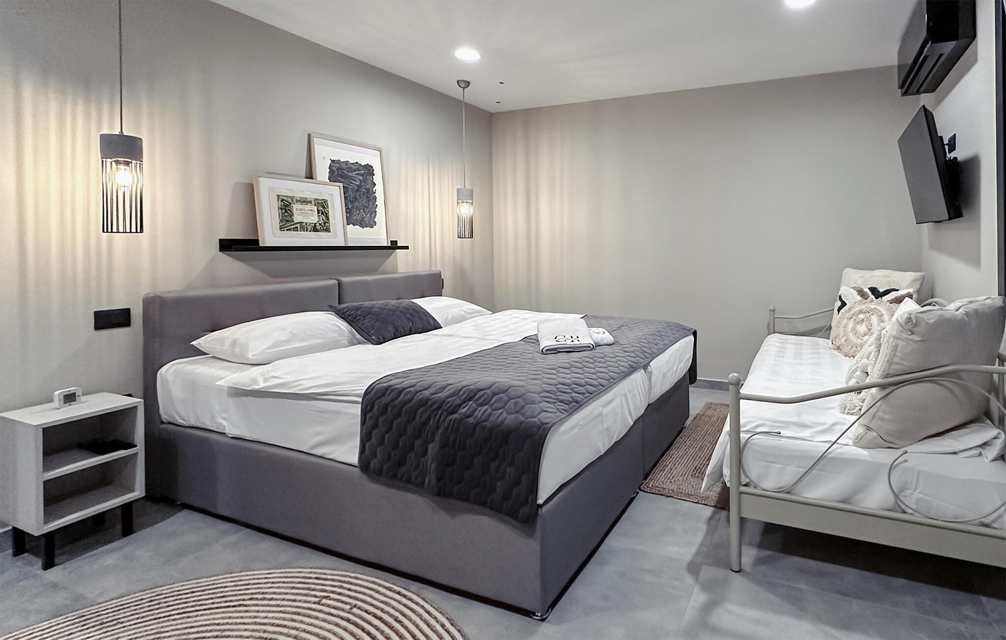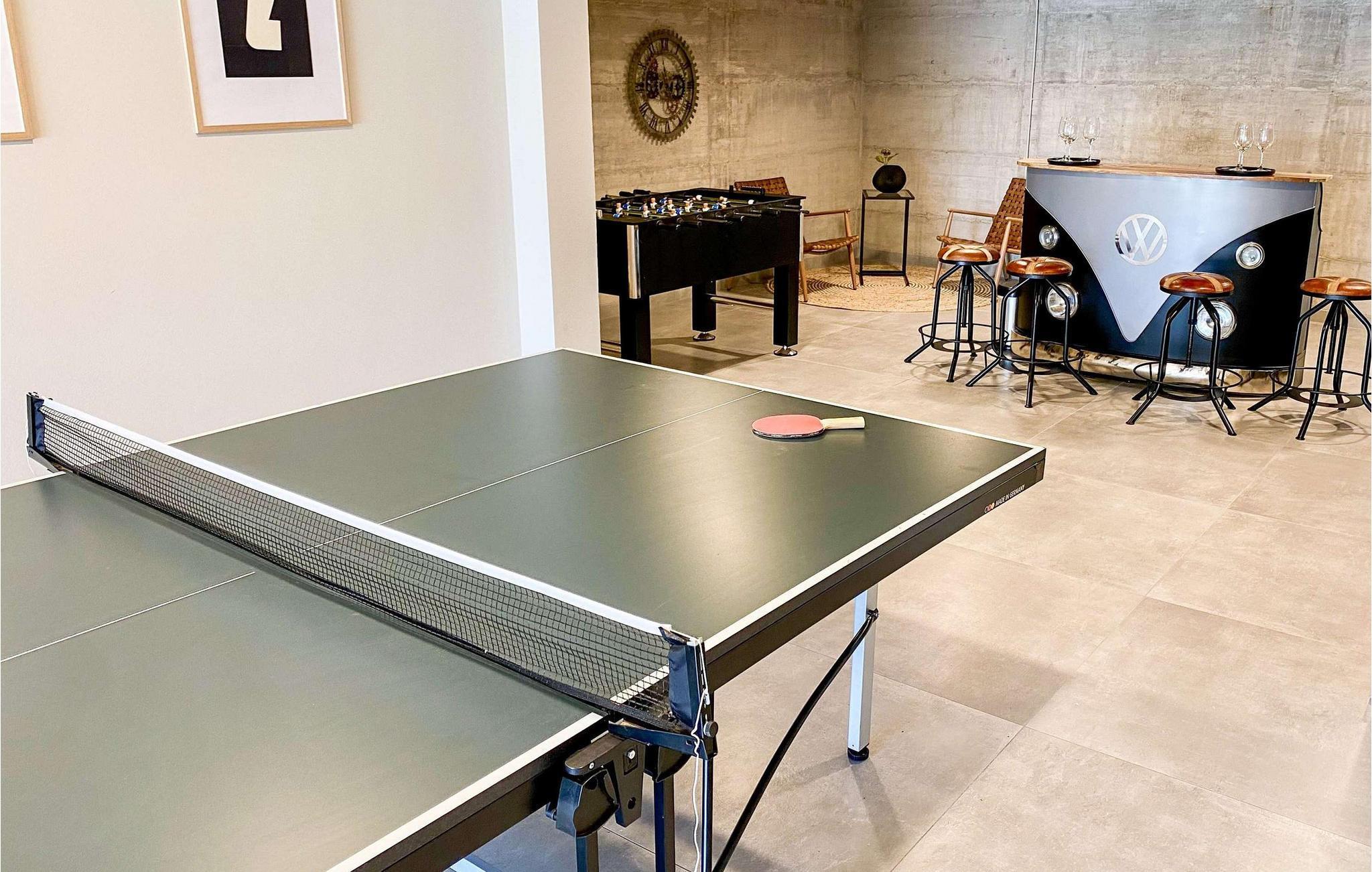 Die Villa wurde 2022 in einem modernen Stil erbaut, der jeden Gast begeistern wird. Ihnen stehen 375 m2 zur Verfügung, während die Gesamtfläche des Grundstücks 2000 m2 beträgt. Die Villa bietet Platz für maximal 10 Personen. Die Villa besteht aus Erdgeschoss, Obergeschoss und Keller. Im Keller befindet sich eine Man Cave-Garage mit einem Weinkeller, einem Spielzimmer (Playstation, Tischfußball, Tischtennis, Darts), einem Fitnessraum, einer Garage für ein Auto, einem Badezimmer mit Dusche und einem Schlafzimmer. Das Erdgeschoss begeistert mit einem Wohnzimmer mit Ecksofa, Couchtisch, Klavier und Fernseher. Es gibt außerdem eine modern ausgestattete Küche und ein Esszimmer mit einem Esstisch für 10 Personen. Sie wohnen komfortabel in fünf Schlafzimmern, zwei davon mit Doppelbetten und eigenem Bad mit Badewanne, und drei Zimmern mit sechs Einzelbetten und eigenem Bad mit Dusche.