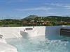 Im Kellerraum befindet sich ein zusätzliches Bett. Das Zimmer im ersten Stock hat direkten Zugang zur Außenterrasse, von der aus Sie den Außen-Whirlpool für fünf Personen genießen können.