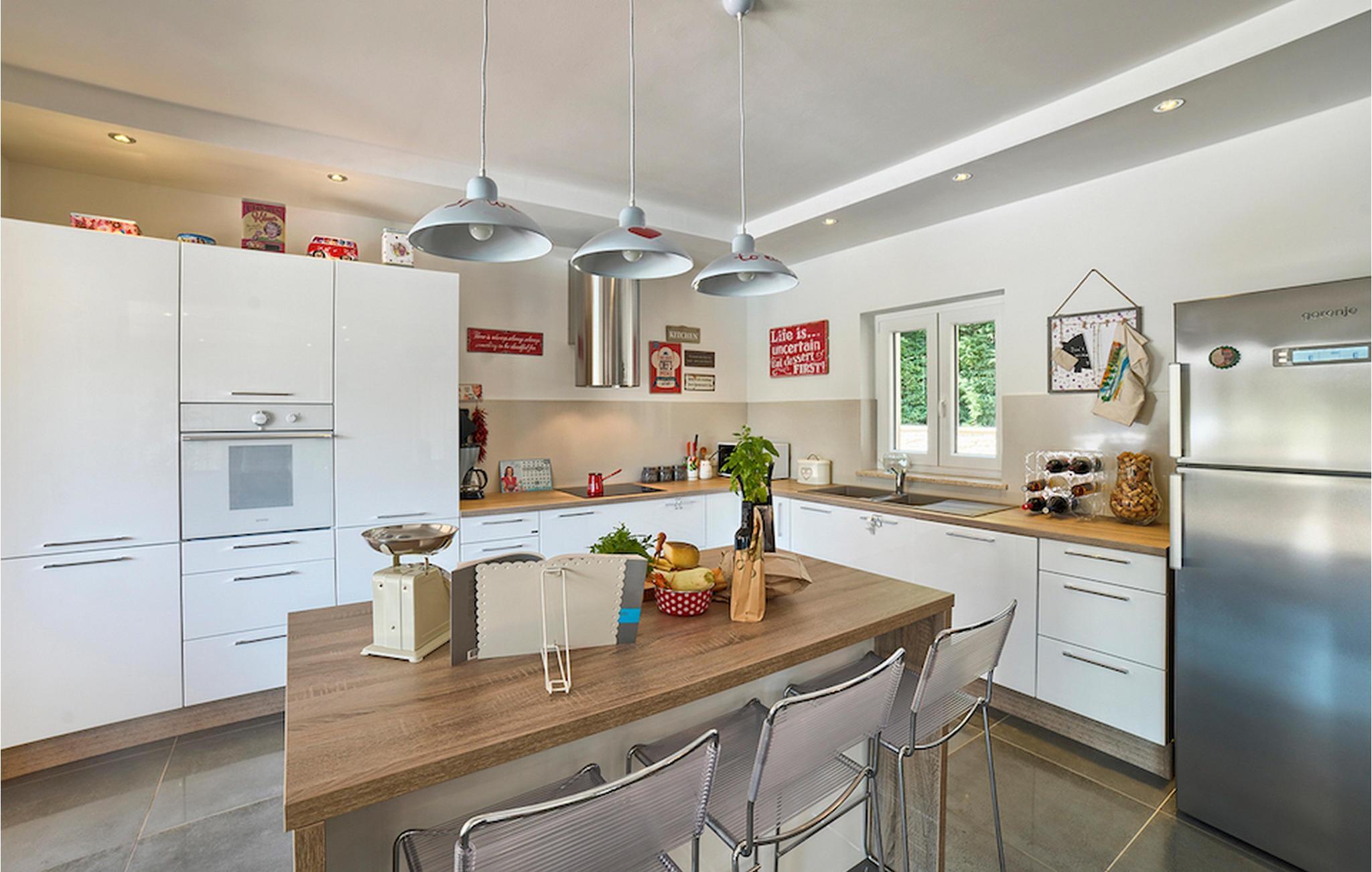 Die luxuriöse Villa Sanda liegt am Rande eines ruhigen kleinen Dorfes inmitten duftender mediterraner Wälder der bezaubernden Landschaft Istriens. Sie ist eine höchst komfortable Unterkunft mit viel Platz und einem außergewöhnlichen Angebot, das Kinder und Erwachsene gleichermaßen genießen werden. Die Villa besteht aus zwei separaten Bereichen. Die vier geräumigen, elegant eingerichteten Schlafzimmer befinden sich im Haupthaus. Eines davon befindet sich im Erdgeschoss und die anderen drei Schlafzimmer im Obergeschoss, wobei über einen Flachbildfernseher und ein wunderschön eingerichtetes Bad verfügt. Im Erdgeschoss des Haupthauses befindet sich ein stilvoller und lichtdurchfluteter Raum, der in eine entspannende Lounge, einen Ess- und einen Kochbereich unterteilt ist. Die natürlichen, sanften Farben und Texturen der hochwertigen Möbel und der gemütliche Kamin schaffen eine warme und angenehme Atmosphäre, während der große Flachbildfernseher und die Playstation zusätzliche Unterhaltung bieten. Weitläufige Glasschiebetüren führen auf die Außenterrasse, wo Sie ein verlockender, solarbeheizter Pool und entspannende Sonnenliegen erwartet. Es gibt auch eine schattige Loggia mit einem Essbereich im Freien und einem gemauerten Grill für herrliche, lange Mittagessen oder ein romantisches Abendessen unter Sternen. Das schicke und elegante Gartenhaus rundet den Außenbereich ab. Freuen Sie sich auf einen entspannenden Wellnessbereich mit einem gut ausgestatteten Fitnessraum, Whirlpool und Sauna sowie ein Spielezimmer mit Darts, Billard und Fußballtisch. Dazu kommen noch ein Kinderspielplatz, Tischtennis, Basketball und Volleyball sowie 4 Fahrräder, mit denen Sie die Umgebung erkunden können. Es ist für jeden etwas dabei, unabhängig von der Jahreszeit. Ein wunderschön gepflegter Garten mit weitläufigen Rasenflächen und schattigen Bäumen umgibt das Haus. Genießen Sie den Duft mediterraner Kräuter und die Schönheit der Blumenbeete, die so elegant wie die Villa sind. Die Villa bietet eine idyllische Umgebung, in der Sie die ungestörte Natur von ihrer schönsten Seite erleben können. Sie bietet echte Ruhe mit modernem Komfort und ist nur einen Katzensprung von der kristallklaren Adria entfernt.Diese wunderschöne Villa liegt im kleinen Dorf Snasici, nur 5 km von Labin entfernt. Auf seinem Hügel oberhalb der magischen Kvarner-Küste thronend, ist Labin das historische und administrative Zentrum Ostistriens. Das Gebiet ist ein Paradies für Kunst- und Geschichtsfreunde mit seinem reichen kulturellen und architektonischen Erbe. Die steilen, gewundenen Gässchen der Altstadt bieten gut erhaltene historische Paläste, zahlreiche Kunstgalerien und –studios, sowie verschiedene Festivals der Jazz- und klassischen Musik in den Sommermonaten. Die Stadt verfügt über einige hervorragende Fischrestaurants, mit köstlichen lokalen Produkten, sowie gemütliche Cafés, wo Sie die entspannte Atmosphäre genießen können. Der Küstenort von Labin ist Rabac, ehemaliges Fischerdorf, heute ein beliebtes Touristenziel, umgeben von einer Vielfalt an traumhaften Kiesstränden.