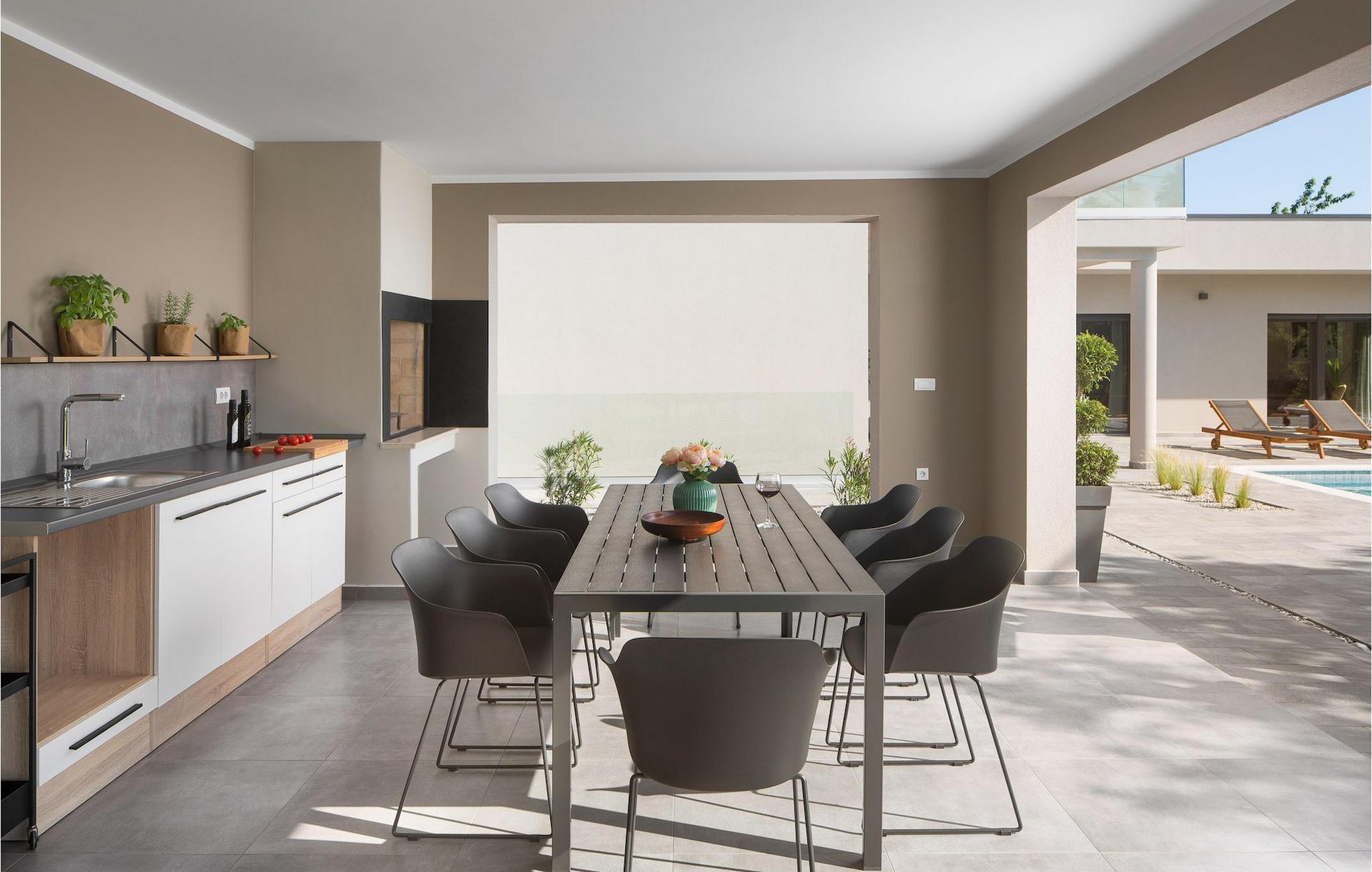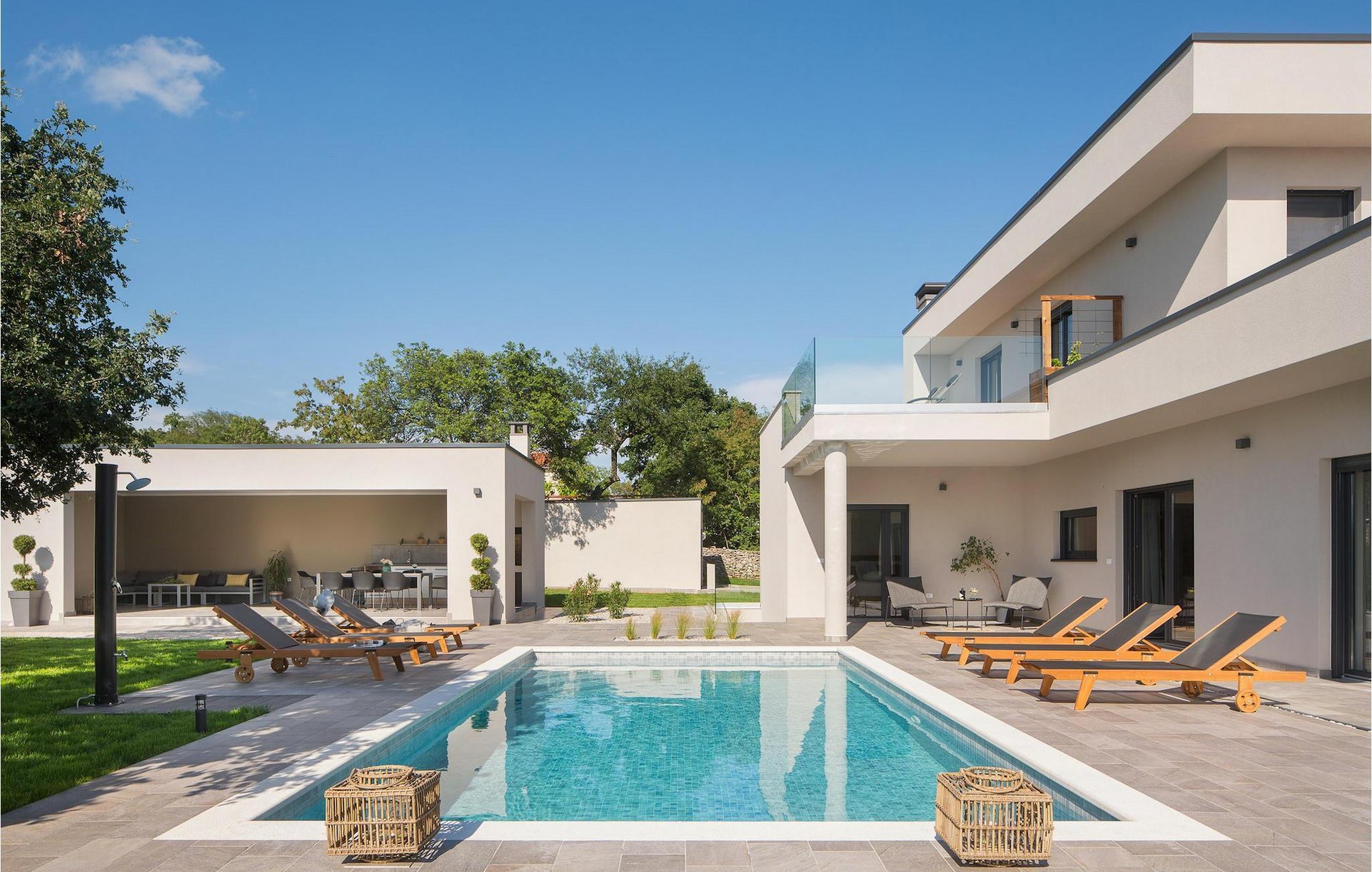 Villa Sent ist eine moderne Villa, mit privatem Pool und schönen Panoramablick auf die idyllische istrische Landschaft. Wenn Sie von einem perfekten Urlaub traümen, dann is die Villa Sent die ideale Wahl für Sie. Im Erdgeschoss der Villa befinden sich das Wohnzimmer, Esszimmer und Küche. Hier finden Sie auch ein Schlafzimmer mit einem en suite Badezimmer, beide angepasst für Personen mit eingeschränkter Mobilität. Im ersten Stock befinden sich zwei weitere Schlafzimmer mit eigenem Bad. Es gibt auch einen Balkon im ersten Stock, wo Sie den Abend mit einer schönen Aussicht genießen können. Im Keller befindet sich ein Spielzimmer in dem sich Tischfußball, Tischtennis, Billard und Darts befinden. Wenn Sie Yoga machen oder gerne Sport treiben, ist dieser Raum perfekt dafür, da es über ein Orbitrek-Fitnessgerät verfügt, das Sie während Ihres Urlaubs in Topform halten wird. Im Außenbereich gibt es ein überdachtes Esszimmer und eine Küche, in der Sie Mahlzeiten zubereiten und genießen können. Rund um den Pool gibt es Sonnenliegen auf denen Sie sich entspannen können. Der große Pool bietet Ihrem Körper an heißen Sommertagen die wohlverdiente Entspannung und Erfrischung. Entspannen Sie in der Sonne, genießen Sie ein kaltes Getränk oder machen Sie einen Spaziergang durch das weitläufige Grundstück das sich über 4900 m2 erstreckt und einen wunderschönen Olivenhain entält. Buchen Sie jetzt Villa Sent und lassen Sie Ihre Träume wahr werden. Jugendgruppen sind in der Villa Sent nicht erlaubt.Die mittelalterliche Stadt Labin befindent sich auf einem Plateau oberhalb der Küstenstadt Rabac und ist auch das historische und administrative Zentrum im Osten Istriens. Die frühesten Wohnhäuser in der Gegend stammen aus der fernen Bronzezeit, das gesamte Gebiet ist mit seinem reichen kulturellen und architektonischen Erbe ein Paradies für Liebhaber von Geschichte und Kunst. Nur drei Kilometer von der Villa befindet sich die Gemeinde Rabac, ein Küstenfischerdorf, auch besser bekannt als die Perle von Kvarner. Von Labin aus können Sie viele Ausflüge planen, weil das ganze Gebiet mit guten Hauptstraßen miteinander verbunden ist. Wenn Sie große Küstenstädte wie Pula, Porec und Rovinj besuchen möchten, sind alle drei etwa eine Autostunde entfernt. Es gibt auch viele Radwege in der Umgebung. Wenn Sie die wunderschöne Natur erkunden möchten, sollten Sie auf keinen Fall die Villa Sent verpassen.