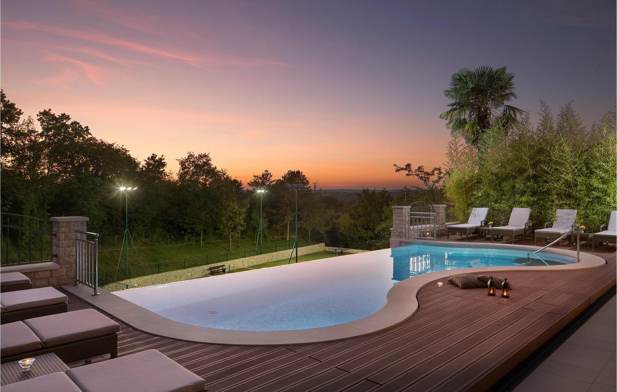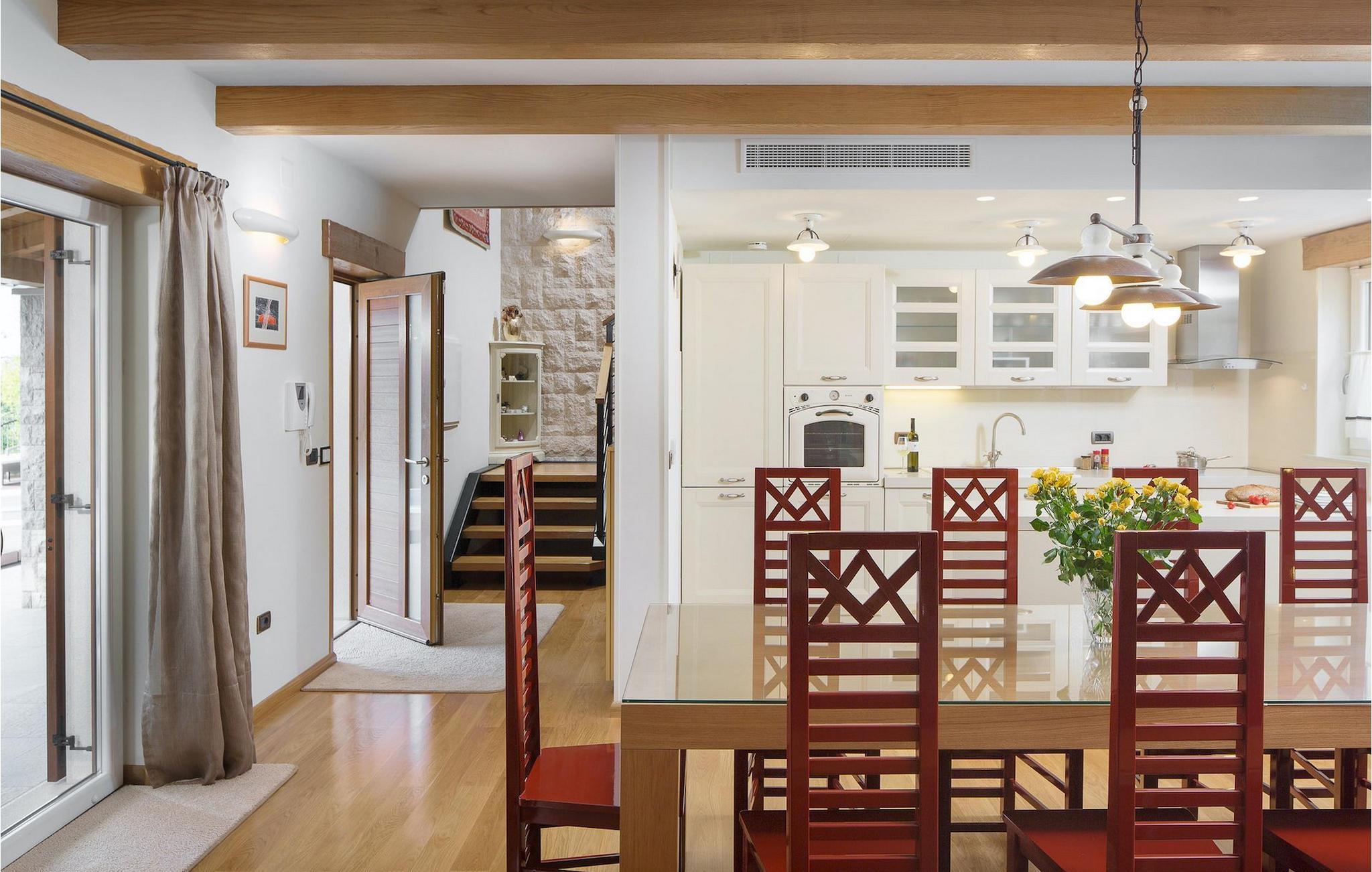 Falls Sie aktiv sind und Sport mögen, befinden sich im hervorragendem Garten zwei private Spielbereiche: beleuchteter Tennisplatz falls Sie in der Nacht Tennis spielen möchten, sowie ein kleiner Golfübungsplatz. Erholen und regenerieren Sie sich neben dem wunderschönen Pool mit zahlreichen Sonnenliegen und Sonnenschirmen für den perfekten Sommer. Die Villa ist von einem weitläufigen, gepflegten Garten umgeben, mit besonderen Steinelementen. In dem geschlossenen Teil in der Nähe des Eingangs der Villa, befindet sich ein kleiner Hof mit Hühnern und Hasen aber auch Obst und Gemüse aus dem ökologischen Anbau. Villa Vlastelini I bietet den idealen Urlaubsort für 8 Personen in atemberaubender Natur. Istrien wartet auf Sie!Villa Vlastelini I befindet sich in einem Dorf in der Nähe von Labin im östlichen Teil der Istrischen Halbinsel. Die Villa ist nur 5 km von den ersten Stränden in Rabac und Duga Luka enfernt. Dort wartet die kristallklare Adria und der wunderschöne Kieselstrand auf Sie. Labin und Rabac sind größere touristische Zentren und bieten Auswahl an Restaurants, Cafés und Geschäften. Labin ist eine kleine aber charmante und historisch reiche Stadt aus dem Mittelalter, die sich auf einem Hügel oberhalb der hinreißenden Kvarner-Küste befindet. Hier können Sie die Geschichte erkundigen und kulturelle und architektonische Denkmale bewundern. Falls Sie Kunst- und Geschichte mögen, besuchen Sie unbedingt den Barock Palast der Battiala-Lazzarini Familie, das jetzt ein Museum ist. Genießen Sie romantische Spaziergänge durch steile Gassen wo Sie mehrere Paläste bewundern können und besuchen Sie Kunstgalerien. Im Sommer können Sie auch Festivals der Jazz- und klassischen Musik besuchen. Entspannen Sie sich in einem gemütlichen Café und probieren Sie bekannte Fischspezialitäten in einem lokalen Restaurant. Das ehemalige Fischerdorf Rabac befindet sich an der Küste und bietet wunderschöne Strände und verschiedene Sport und Unterhaltungsmöglichkeiten. Wenn Sie Istrien erkundigen möchten besuchen Sie auch Opatija (55 km) oder Pula (40 km), zwei wunderschöne touristische Städte am Meer, reich an Kultur und Geschichte. Opatija nennt sich der Perle der wunderschönen Kvarner Region. Entdecken Sie Kvarner und die Umgebung, sei es bei spazieren entlang der Küste oder beim Bewundern von Inseln. Falls Sie in der Natur der Inseln und dem klaren Meer genießen möchten, besuchen Sie die bezaubernde naheliegende Insel Cres oder die Insel Krk, etwas weiter entfernt, aber kein Problem, wenn Sie mit dem Auto unterwegs sind.