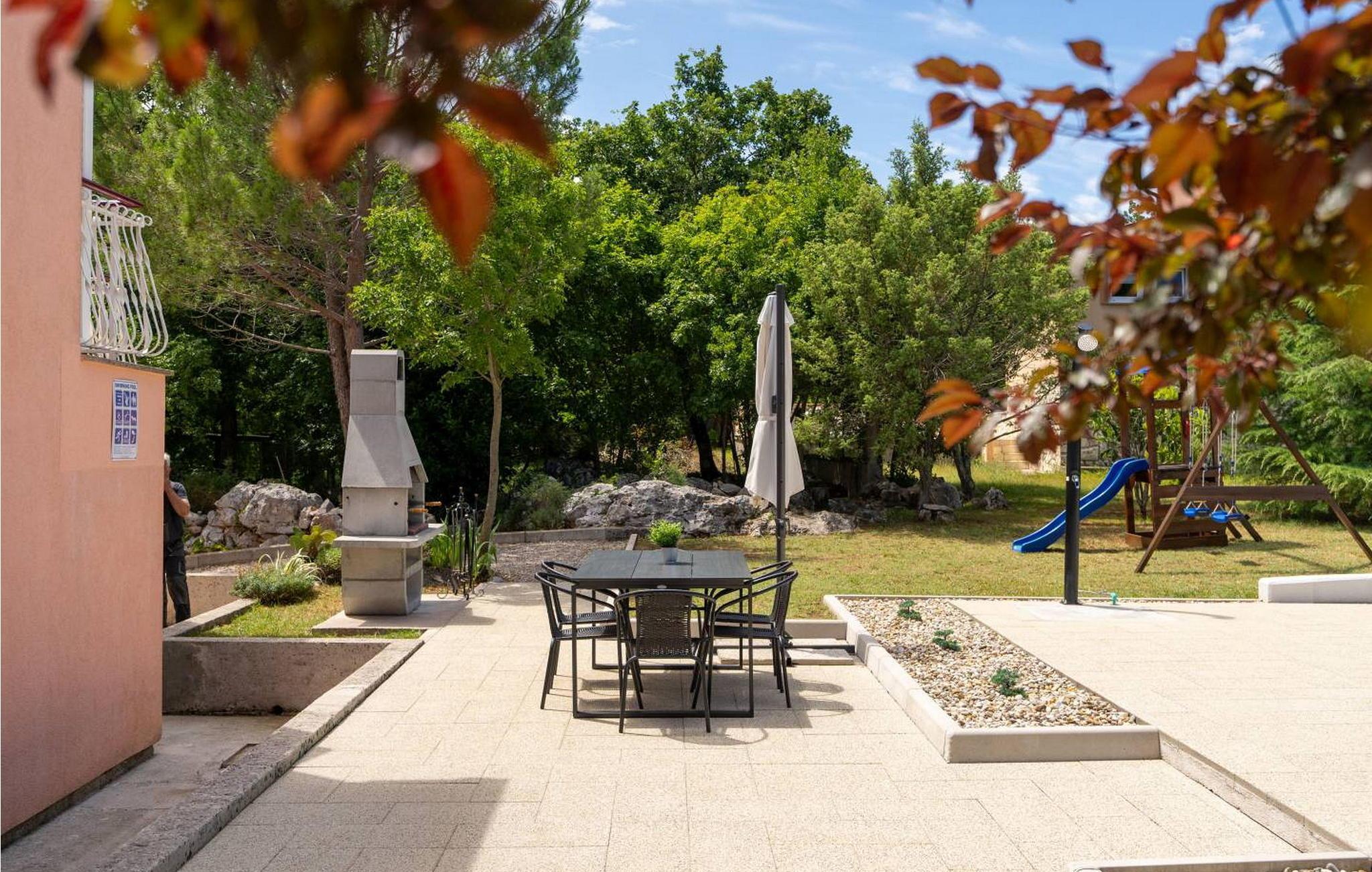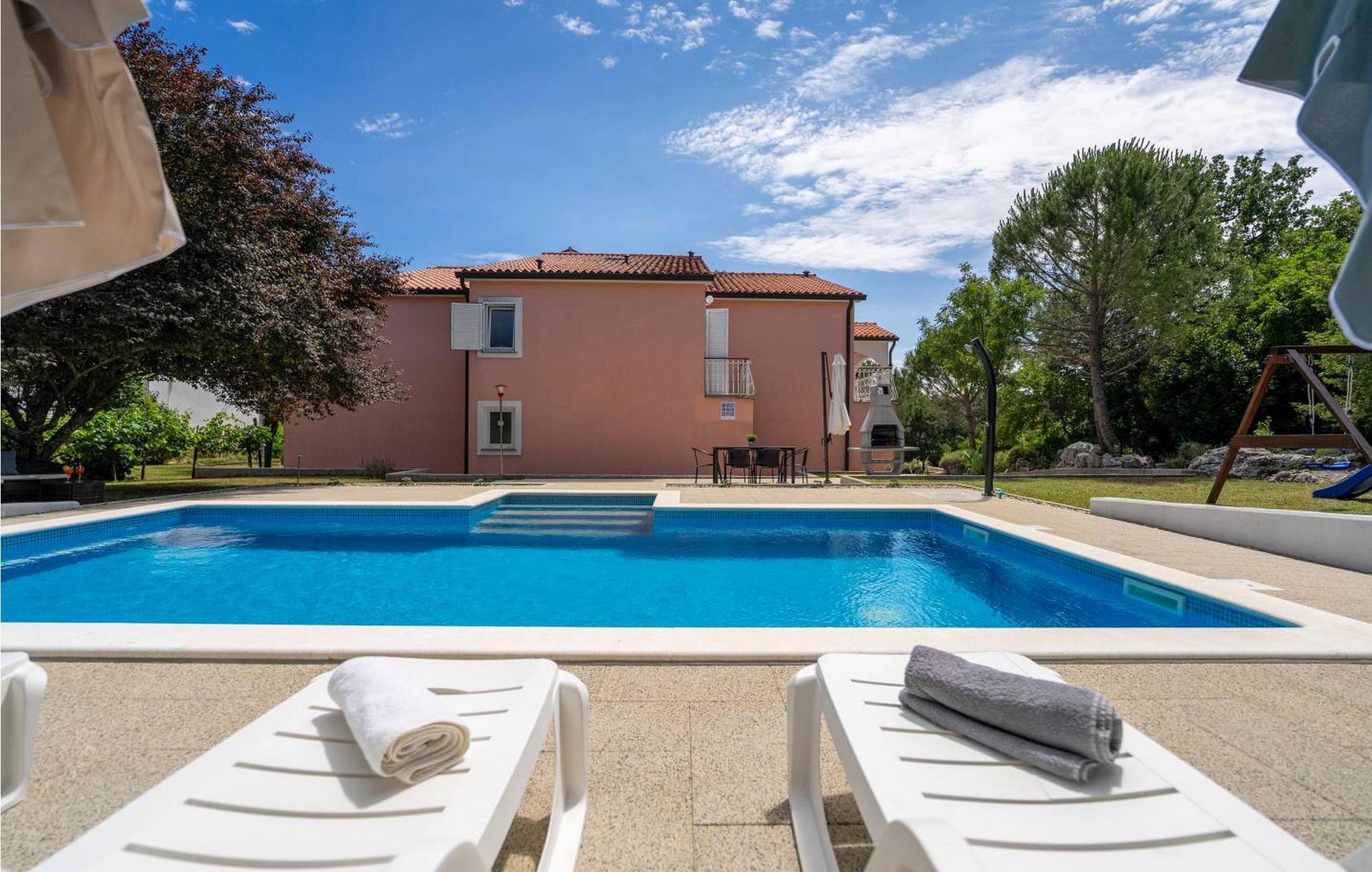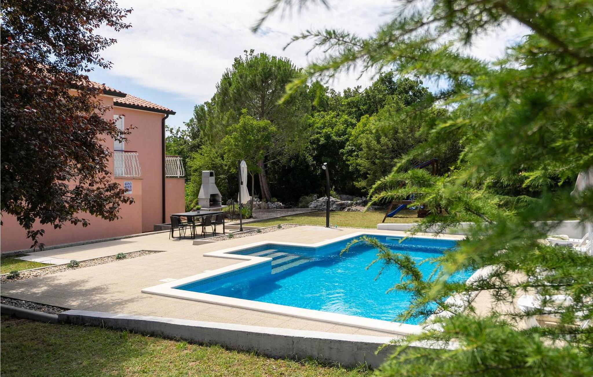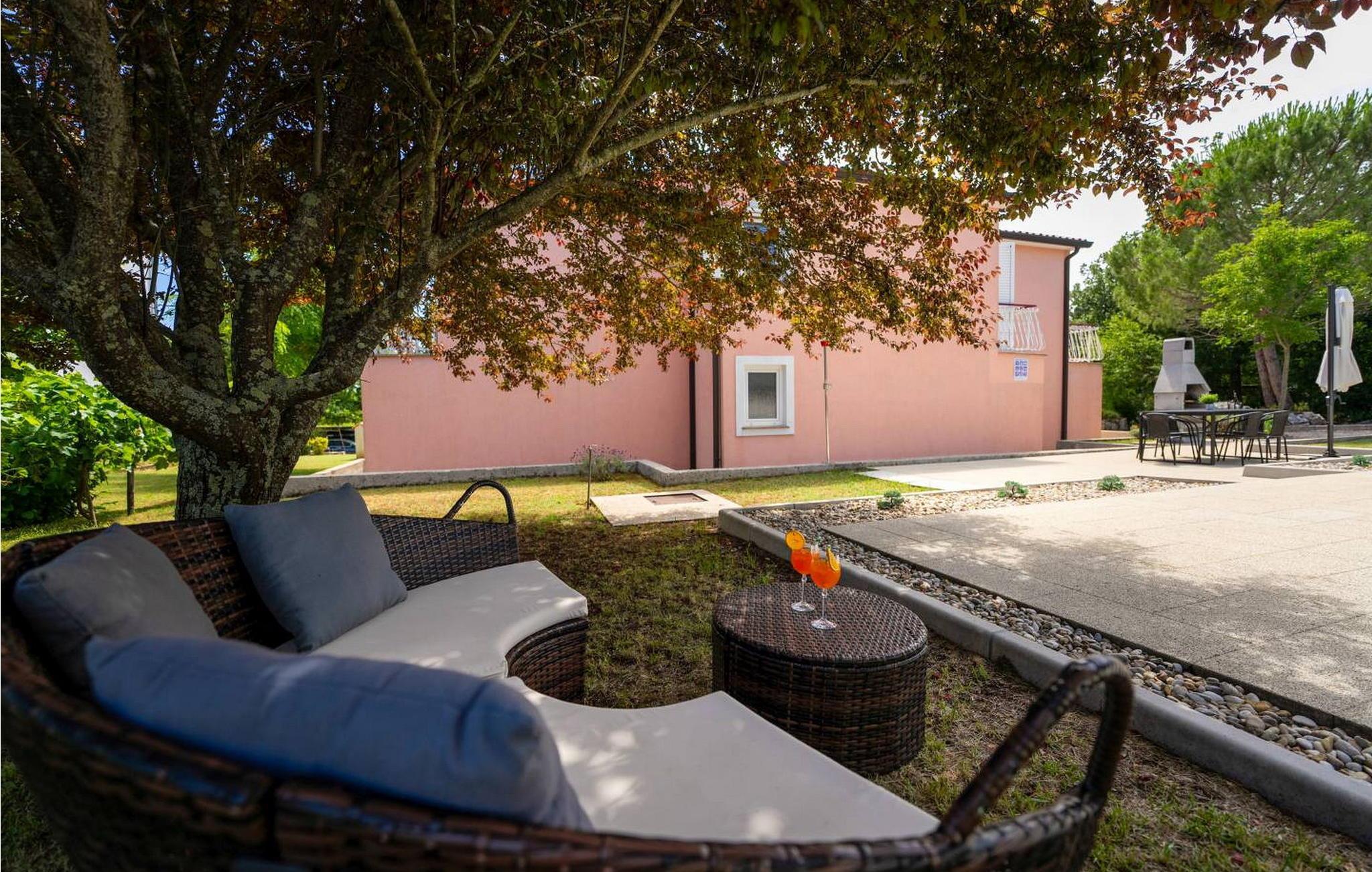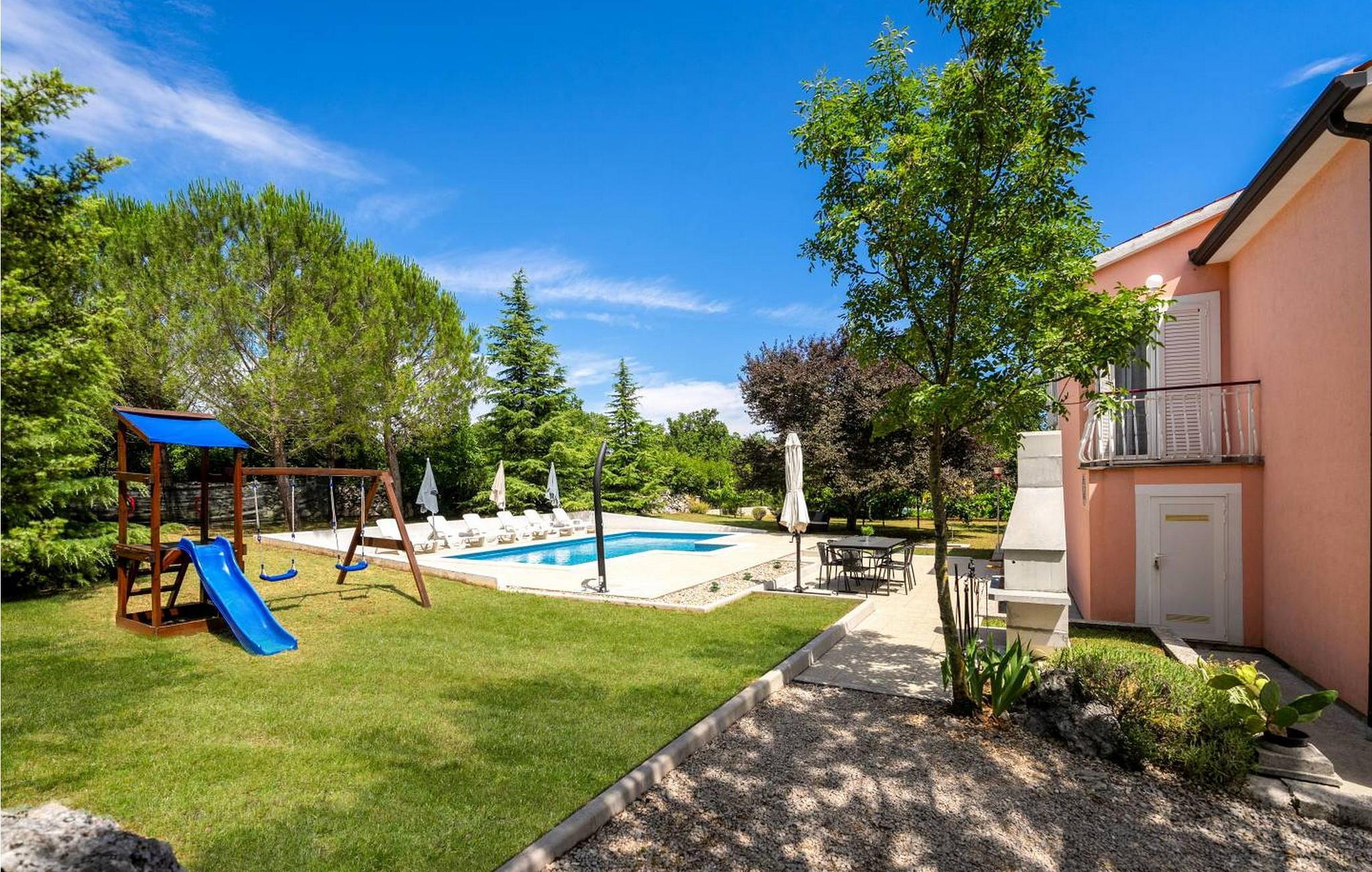 Das Haus liegt in einem großen Grundstück, in dem den Gästen ein Swimmingpool, Liegestühle zum Sonnenbaden, Schaukeln für Kinder, Sitzgelegenheiten, eine Feuerstelle, mehrere Parkplätze und eine Wiese mit einem Badmintonnetz und kleinen Fußballtoren zum Verweilen und Spielen mit Kindern zur Verfügung stehen.