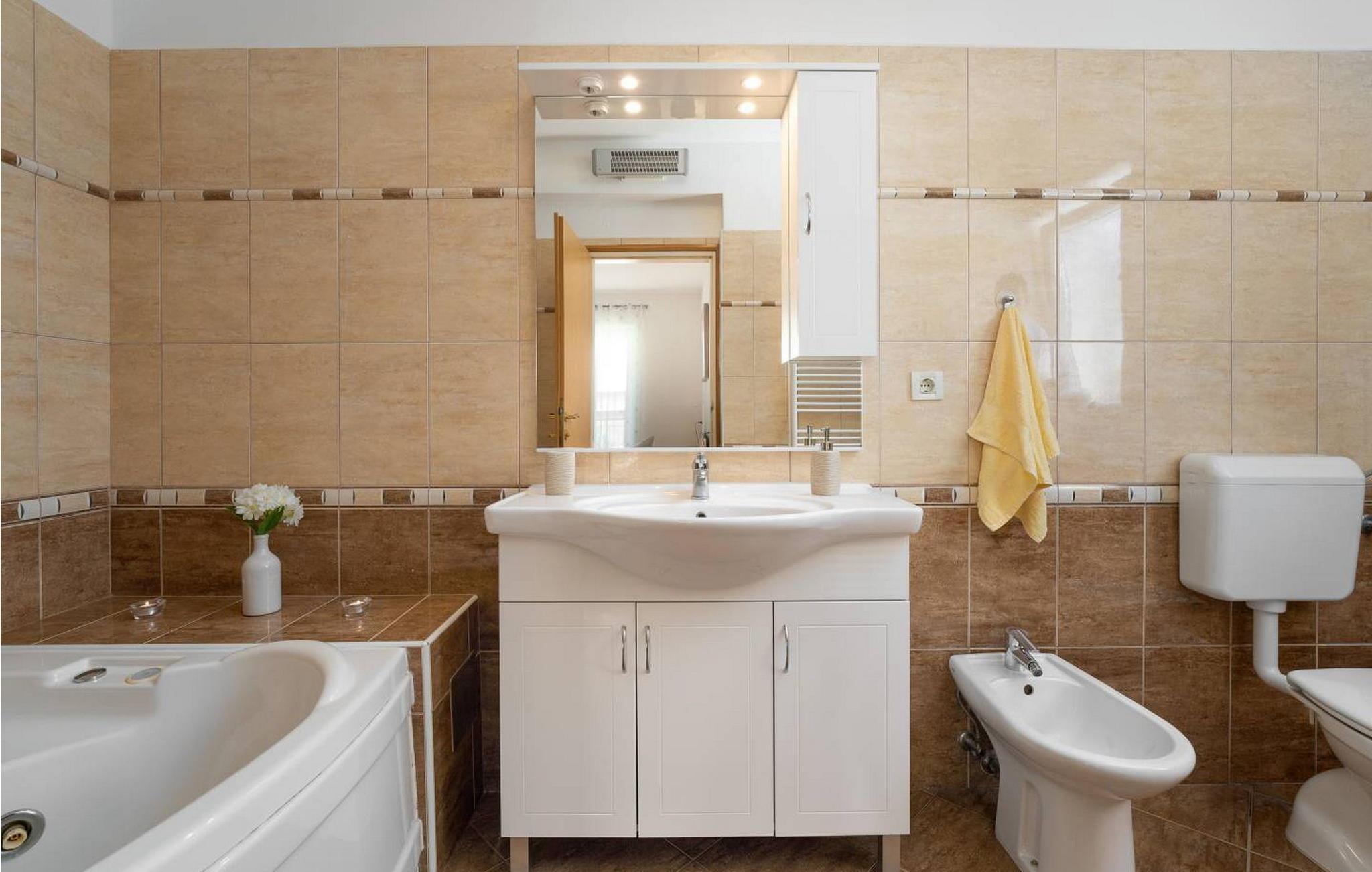 Die Wohnung Roberta belegt den gesamten ersten Stock des Hauses. Es besteht aus einem Wohnzimmer, einem Esszimmer, einem Balkon, einer Küche, einer separaten Toilette, einem Badezimmer und drei Schlafzimmern, von denen eines über ein eigenes Badezimmer verfügt.